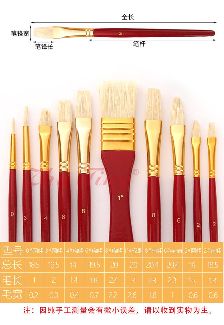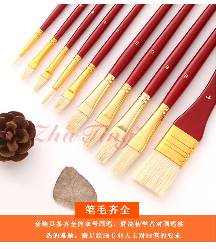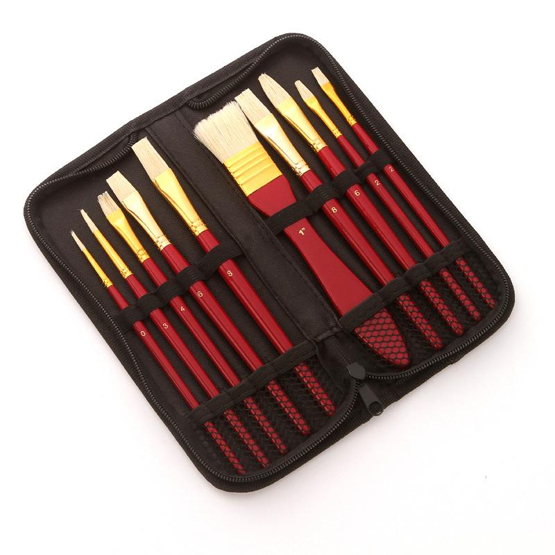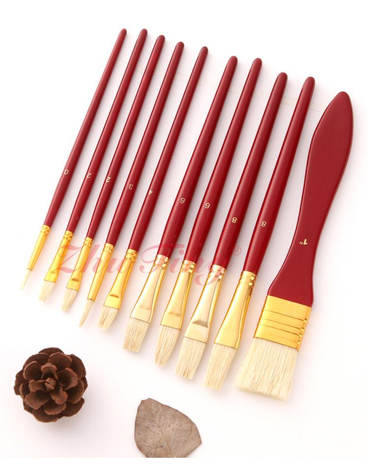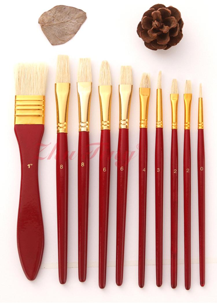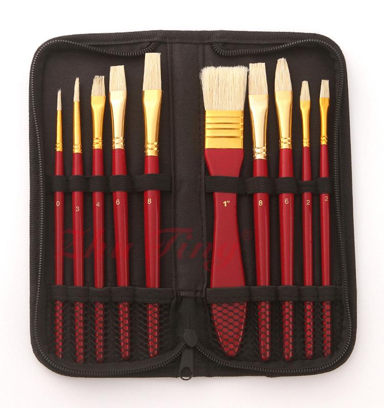 Venta caliente transfronteriza: juego de 10 pinceles de cerdas de cerdo para óleo, nuevo juego de suministros de pintura artística transfronteriza.