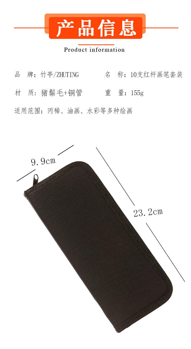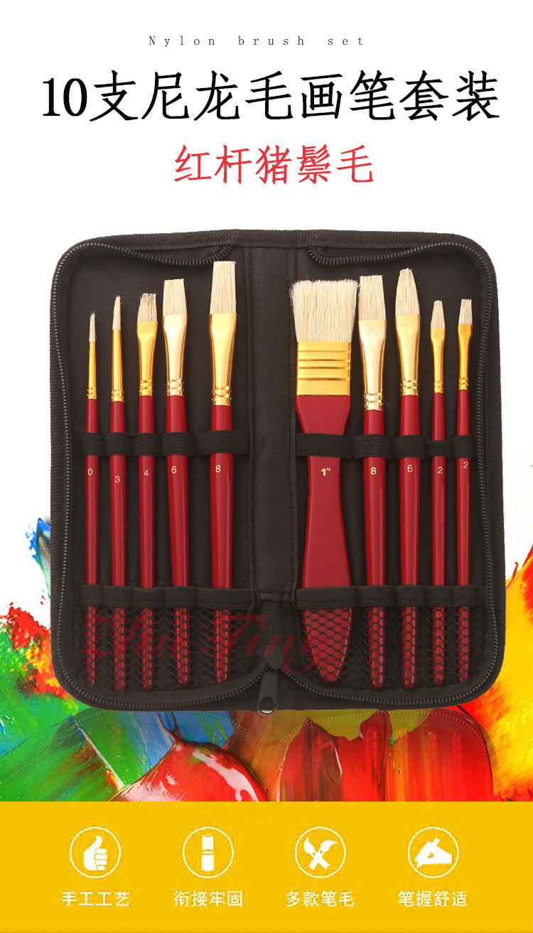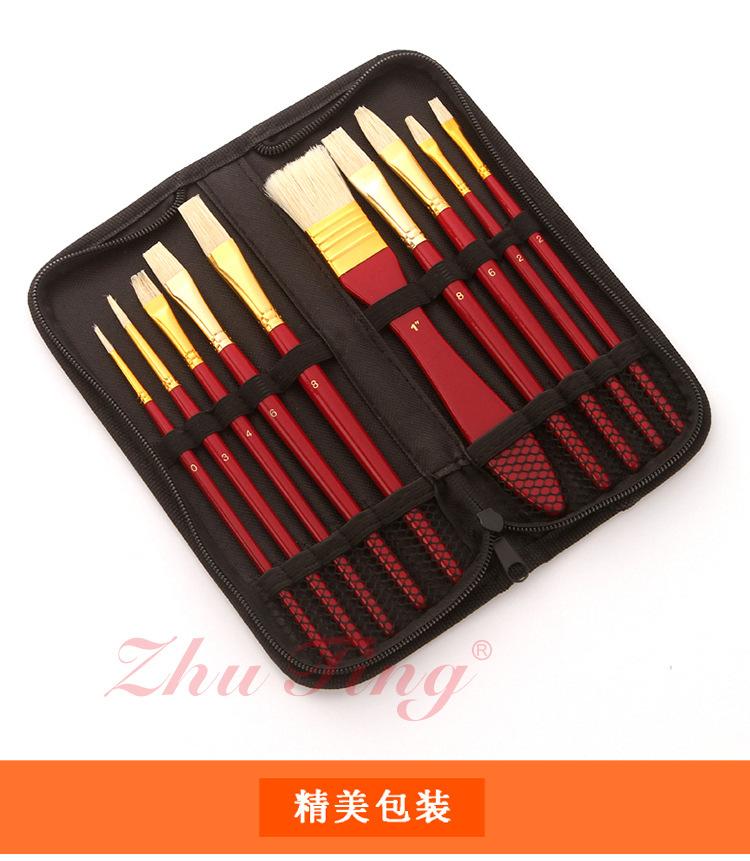 10 Pig Mane red Rod Oil Brush (cloth bag set)