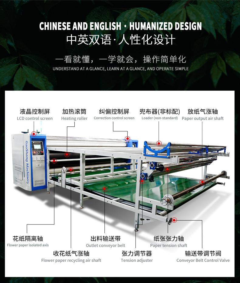 La máquina de impresión digital de tambor totalmente automática es adecuada para imprimir sábanas, edredones, edredones de franela, cortinas, banderas publicitarias, alfombrillas de ratón, esterillas de yoga, etc.El efecto de transferencia es bueno, la velocidad es rápida, programación PLC, corrección láser infrarrojo de manta, separación automática de manta, verdaderamente sin desviación durante el proceso de transferencia, sin ajuste manual.