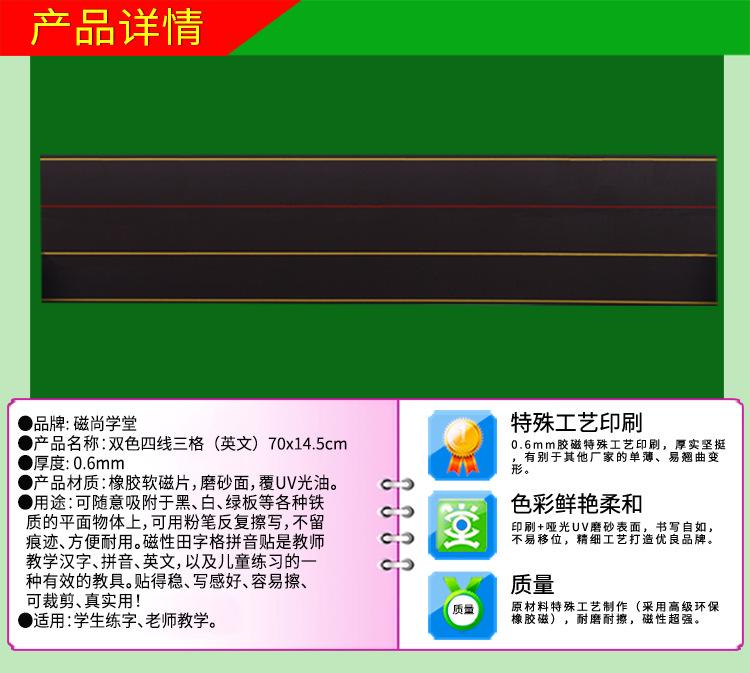 Venta directa de fábrica, pizarra magnética suave para enseñanza, tiza, pincel, escritura, pegatinas blancas suaves, cuatro líneas, tres cuadrículas, pizarra pequeña en inglés de dos colores.