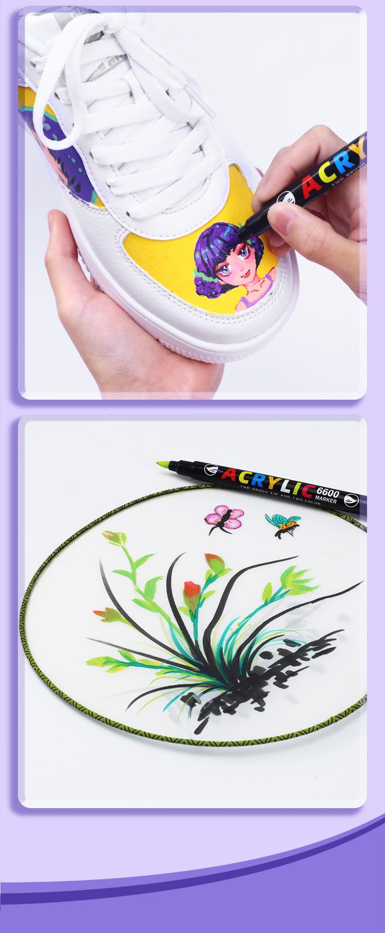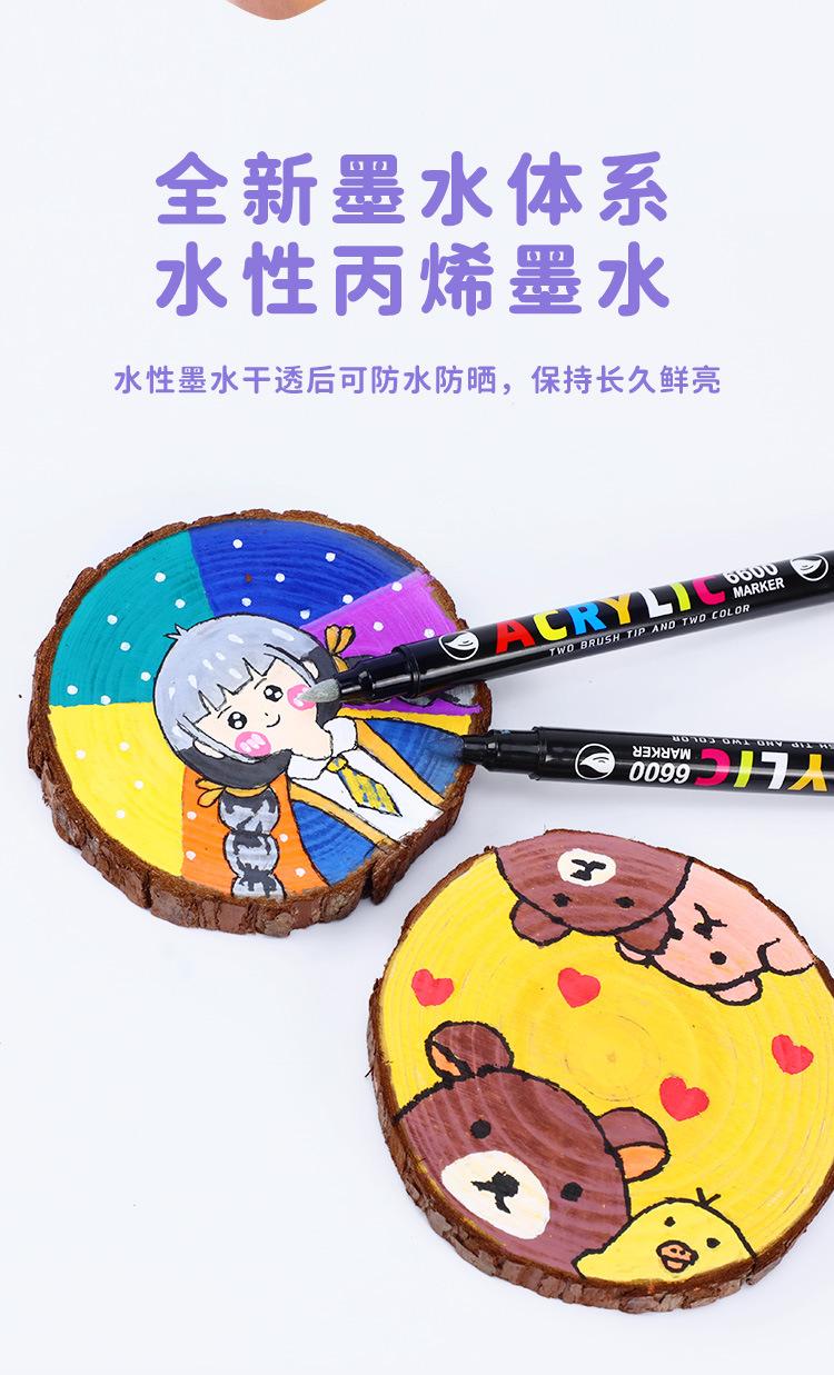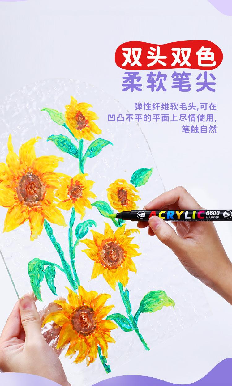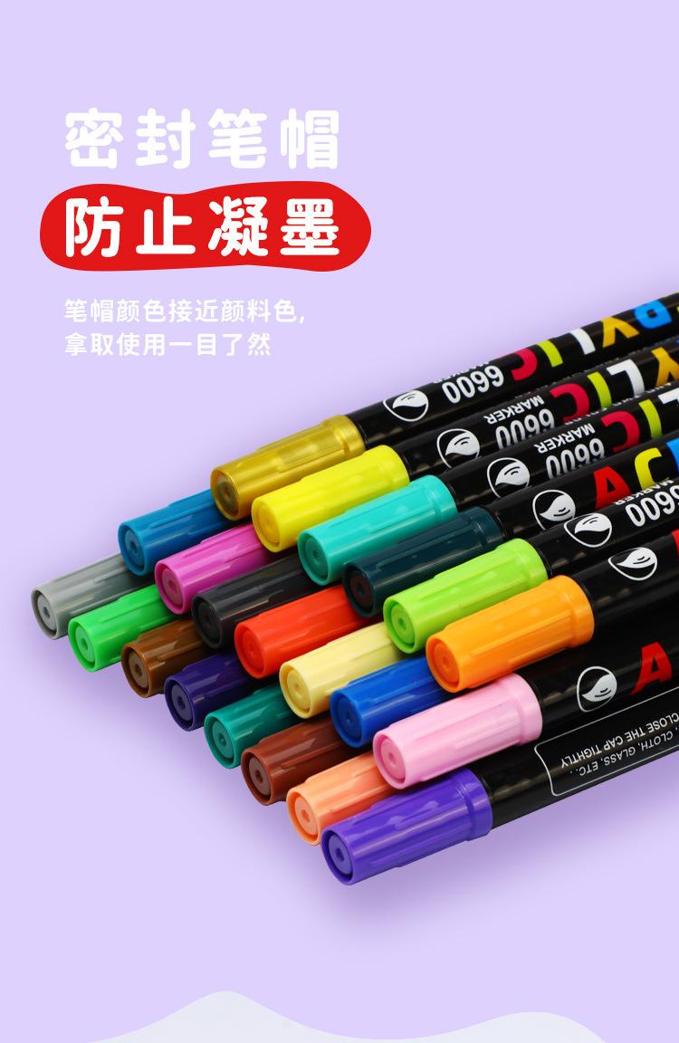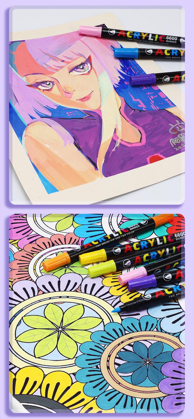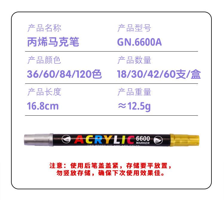 Marcador Acrílico de Doble Punta y Dos Colores Guangna 6600, Pluma para Graffiti, Impermeable, No Destiñe, Acrílico de Punta Suave, 120 Colores