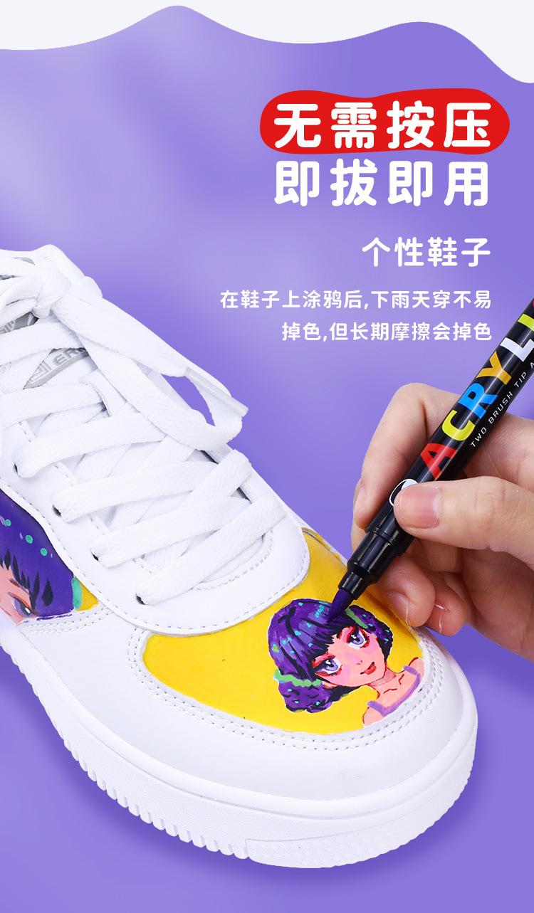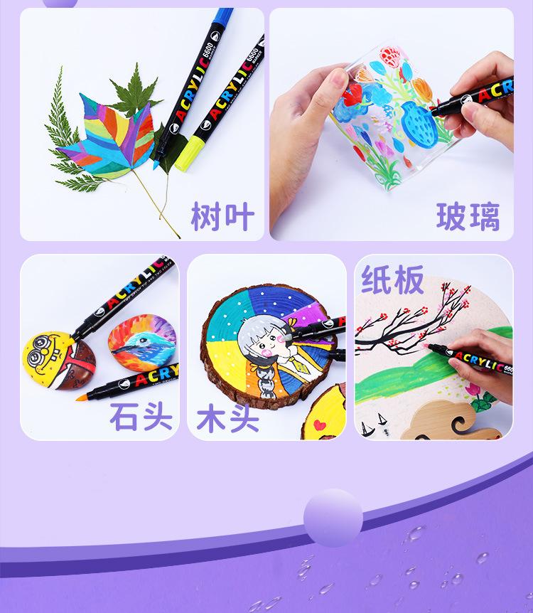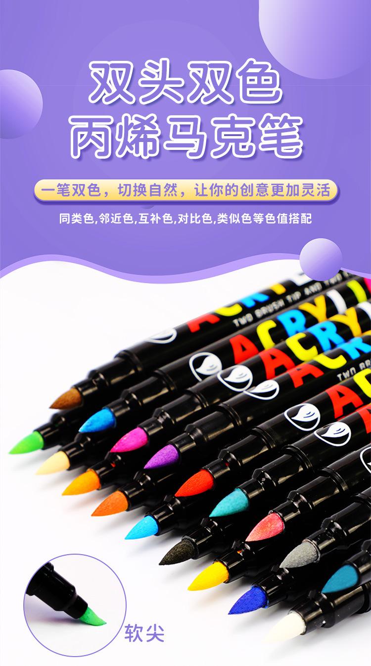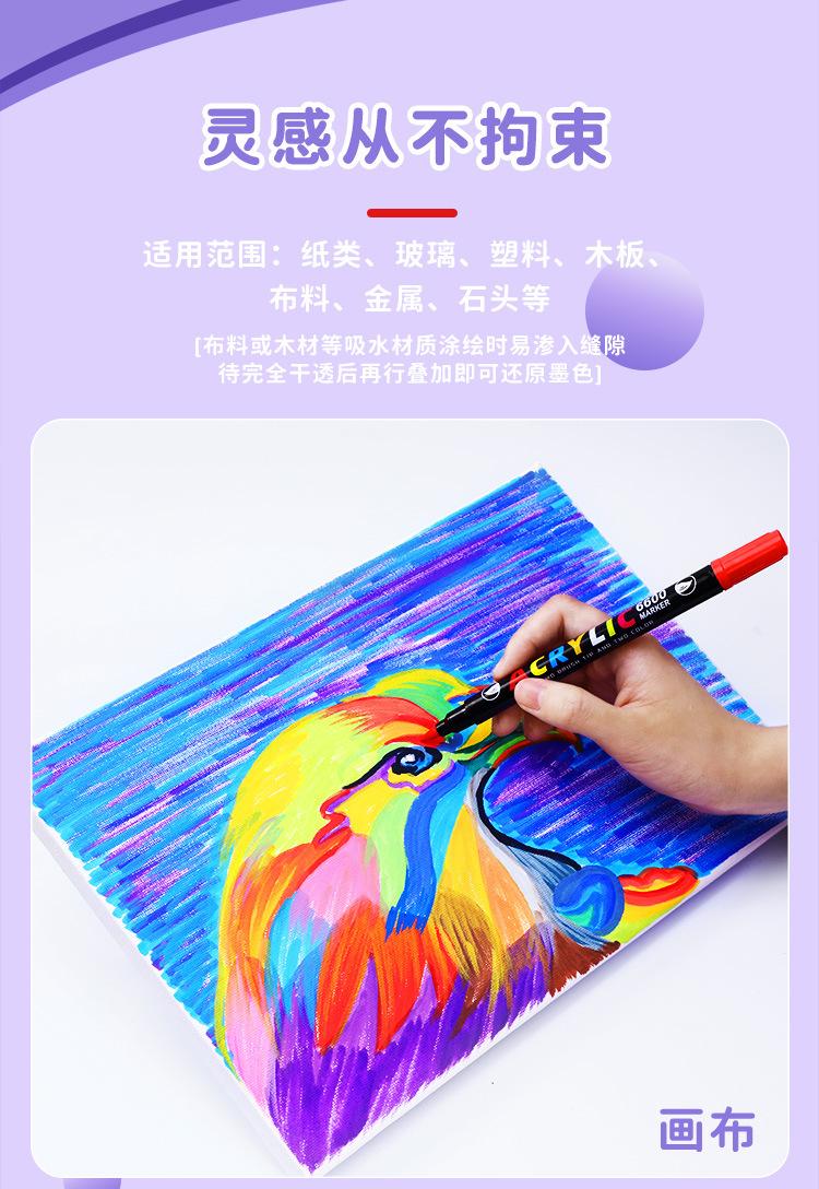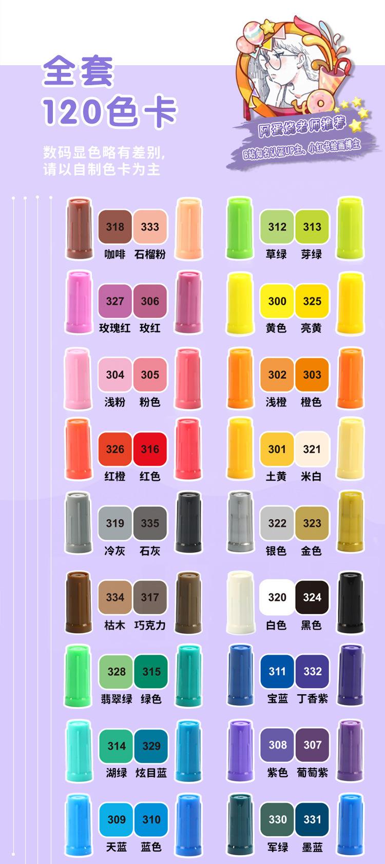 Marcador Acrílico de Doble Punta y Dos Colores Guangna 6600, Pluma para Graffiti, Impermeable, No Destiñe, Acrílico de Punta Suave, 120 Colores
