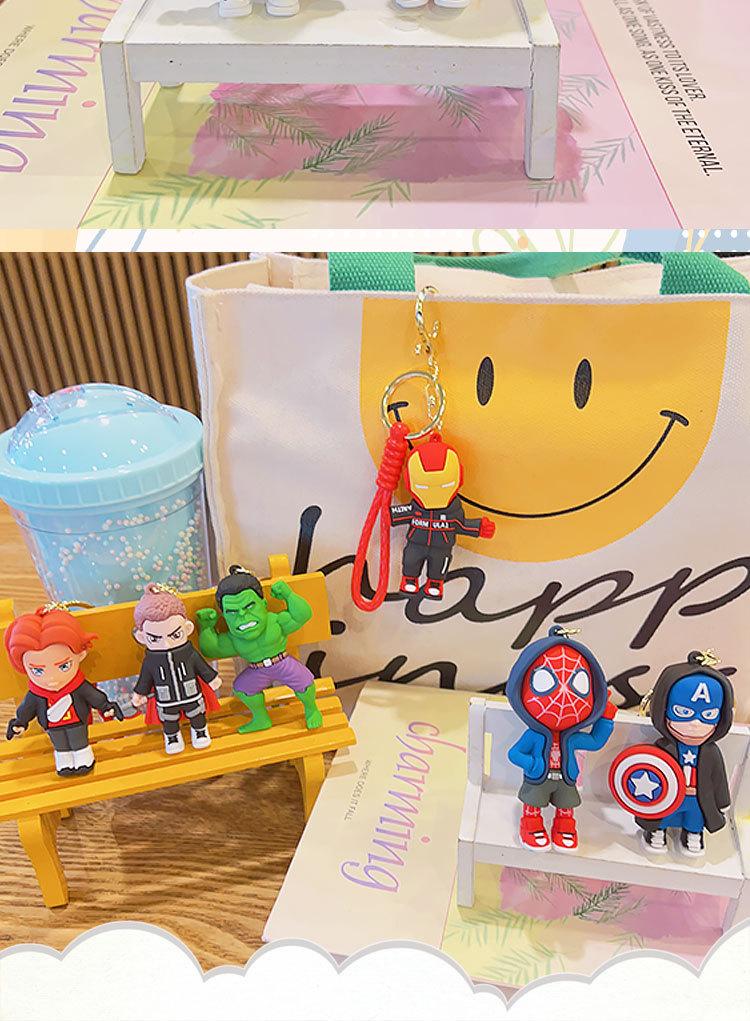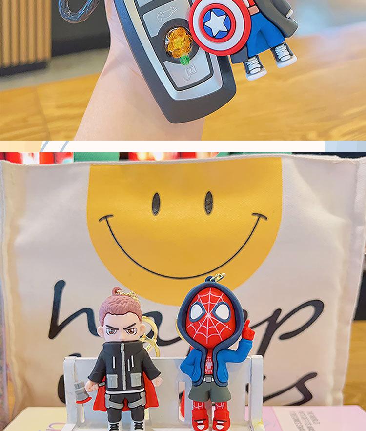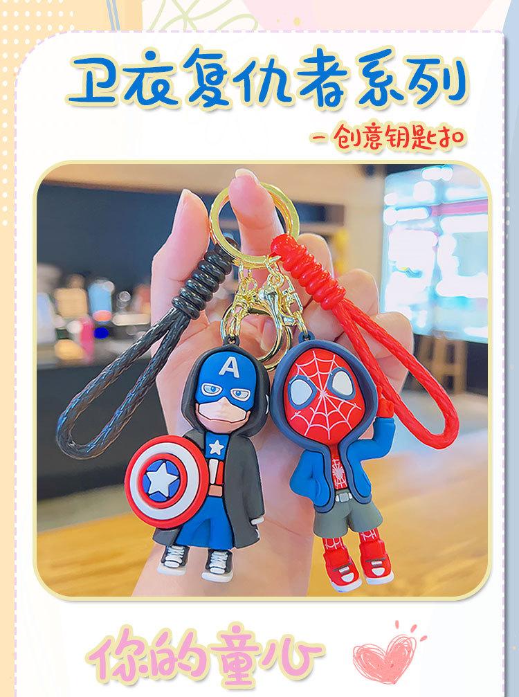 Compra Llavero de dibujos animados de Spider-Man de los Vengadores, venta al por mayor, muñeco creativo del Capitán América, llavero para coche, adornos colgantes al por mayor en Joom.pro