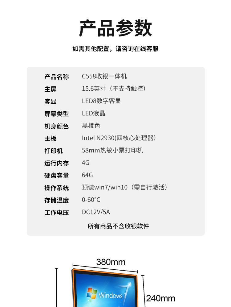 Junrong C558 Supermercado Tienda de Conveniencia Pos Sistema de Caja Registradora Equipo Caja Registradora Todo en Uno Cajero Inteligente