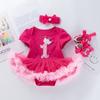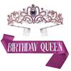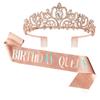 Traje de dos piezas con correa para el hombro y corona para fiesta de cumpleaños transfronteriza, tela rosa dorada y rosa, cinturón de etiqueta para CUMPLEAÑAS
