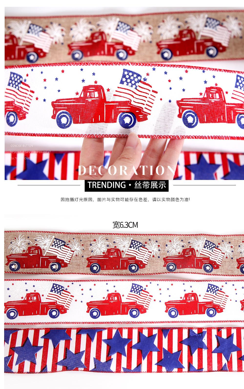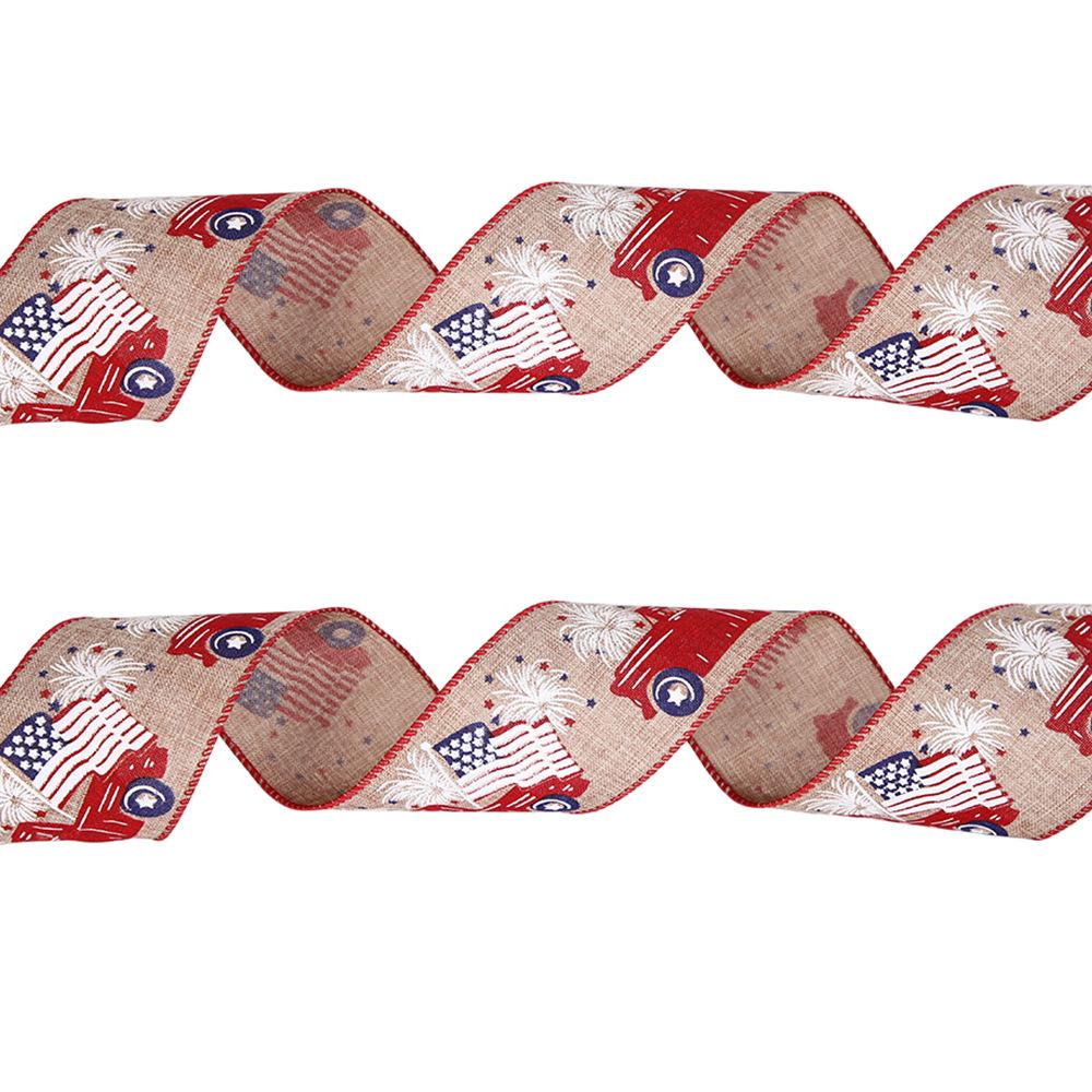 Día de la Independencia Americana Cinta Colorida con Estampado de Coche Adorno Decorativo Creativo Cinta Decorativa de 10m