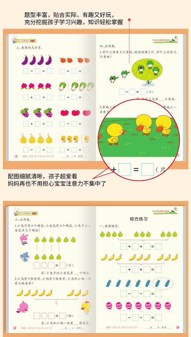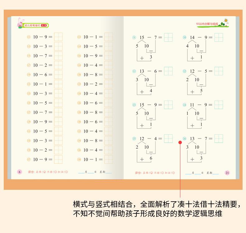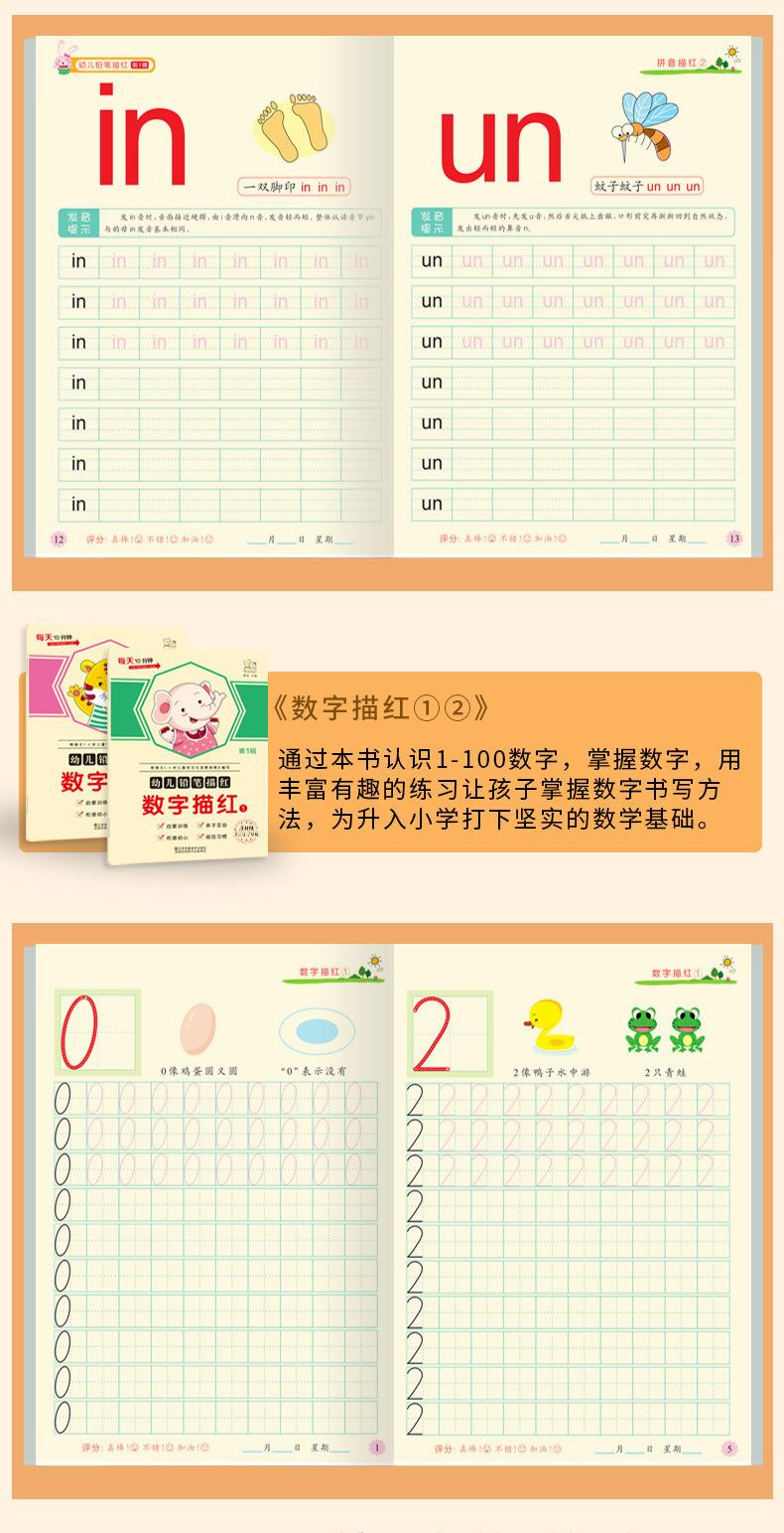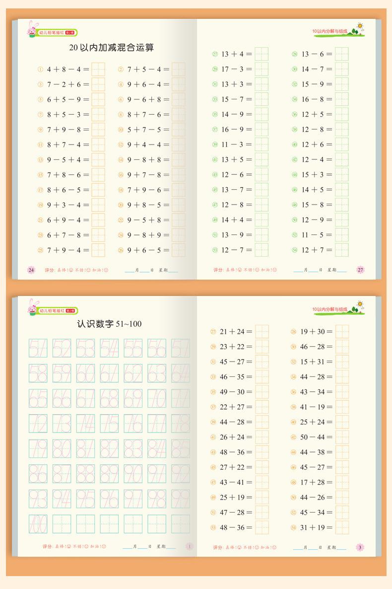 Libro de trazado con lápiz de adición y resta de caracteres chinos digitales pinyin para jardín de infantes de 3 a 6 años, libro de práctica de caligrafía para niños en edad preescolar
