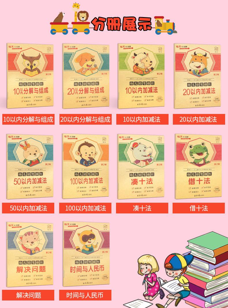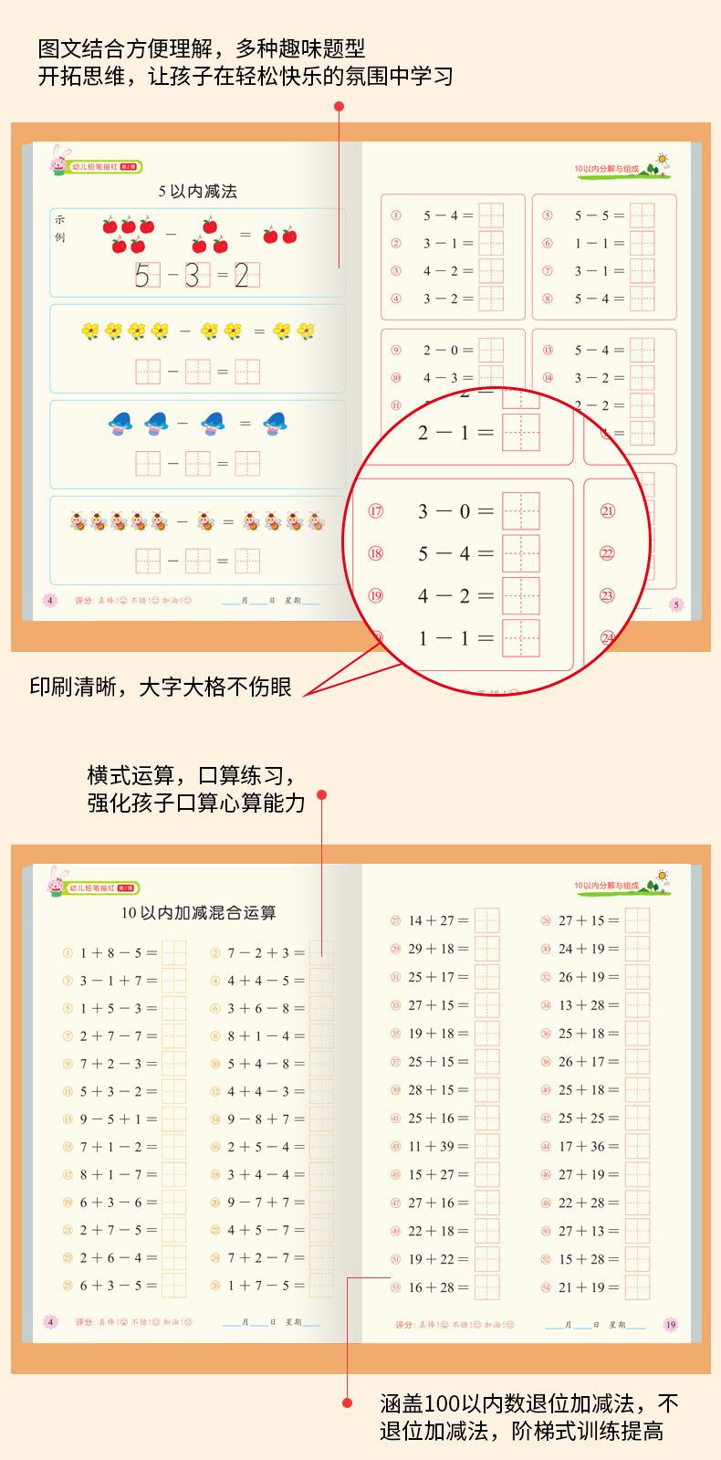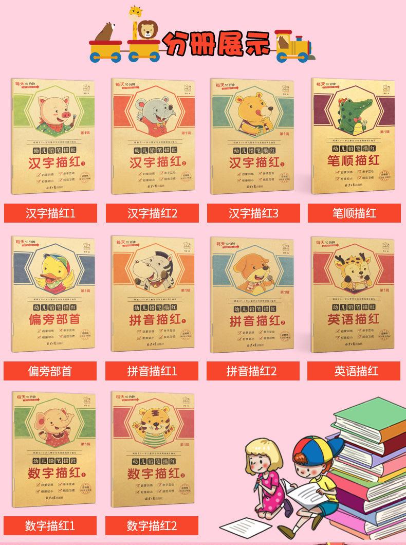Libro de trazado con lápiz de adición y resta de caracteres chinos digitales pinyin para jardín de infantes de 3 a 6 años, libro de práctica de caligrafía para niños en edad preescolar