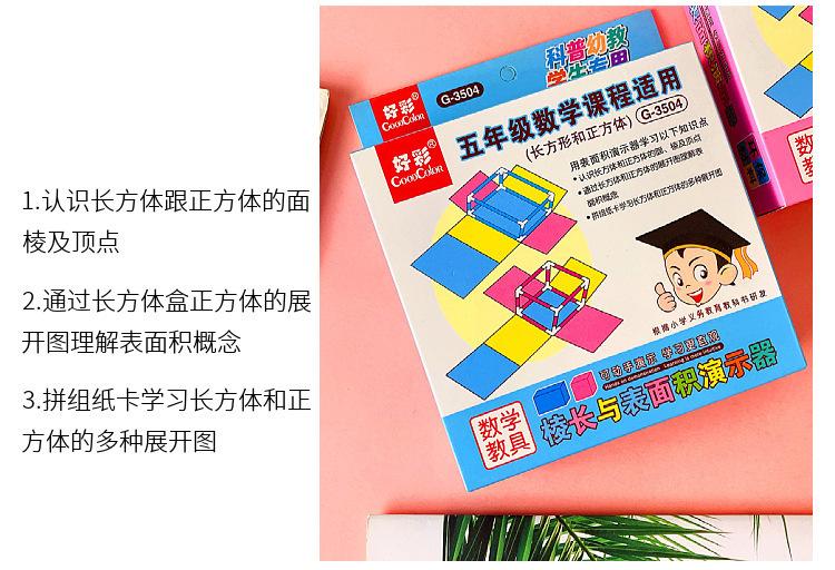 Curso de matemáticas de quinto grado, demostrador de longitud de arista y área de superficie, material didáctico de matemáticas, caja rectangular, cubo, cognición