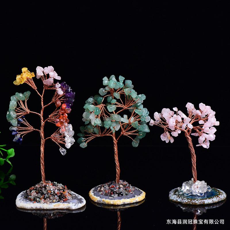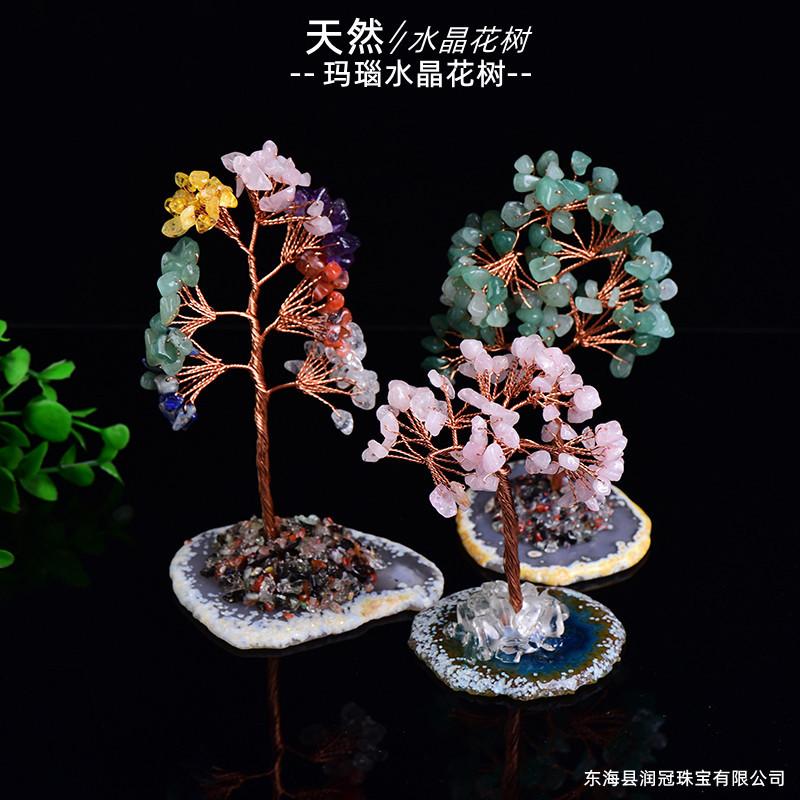 Adornos de flores de grava coloridas, citrino, amatista y cristal rosa natural para árbol, decoración del hogar, manualidades.