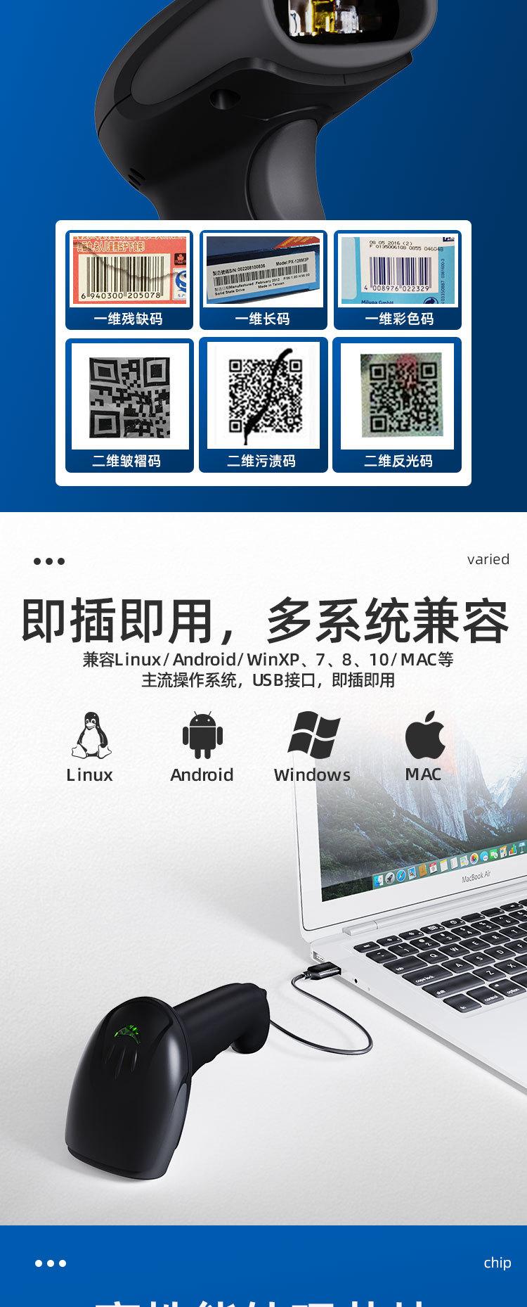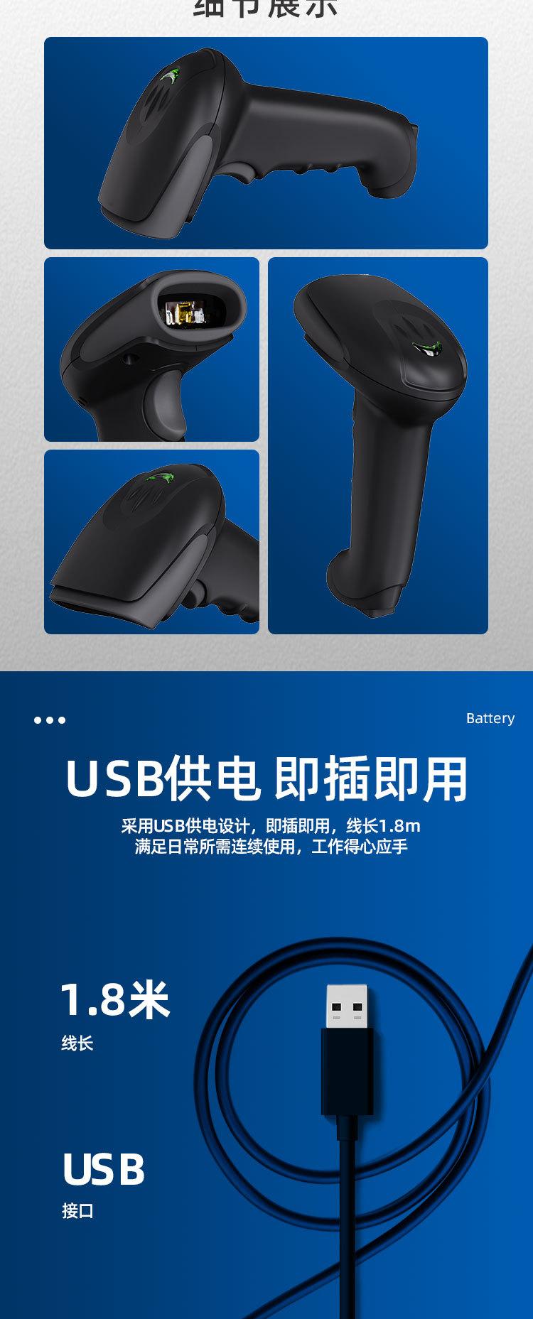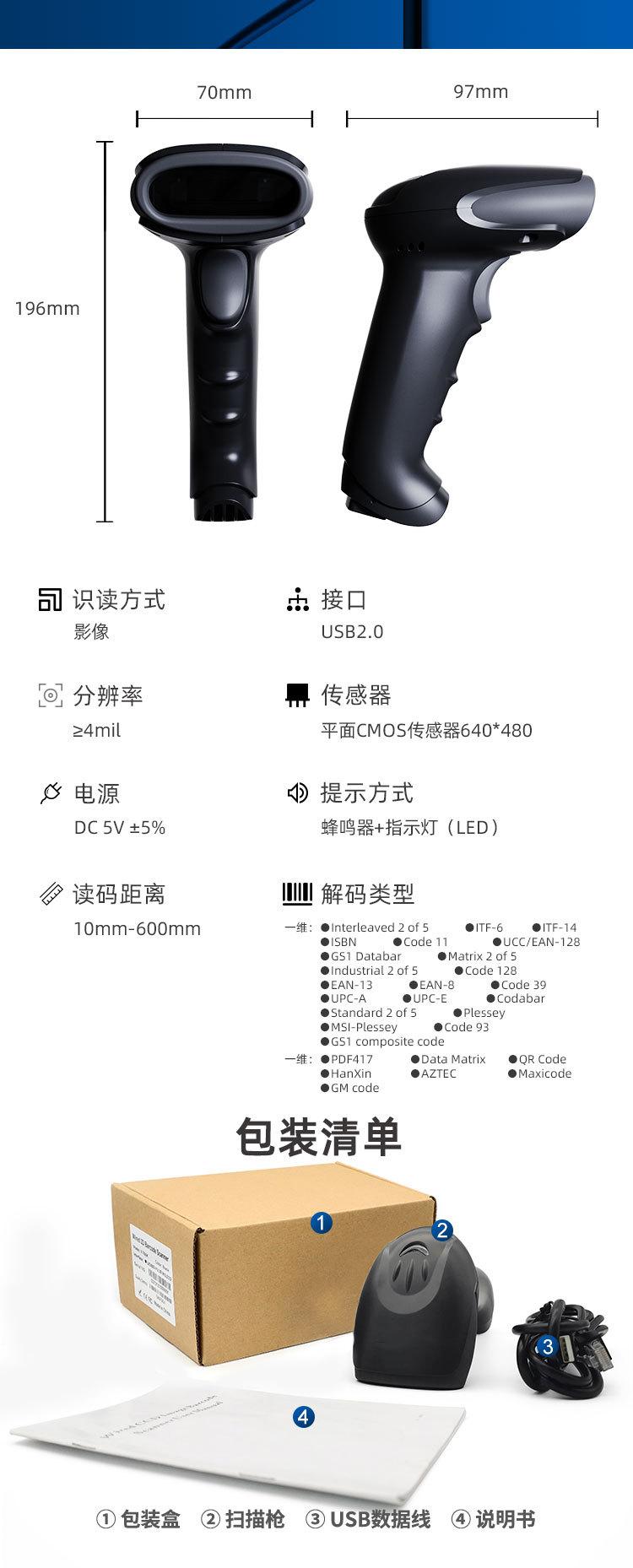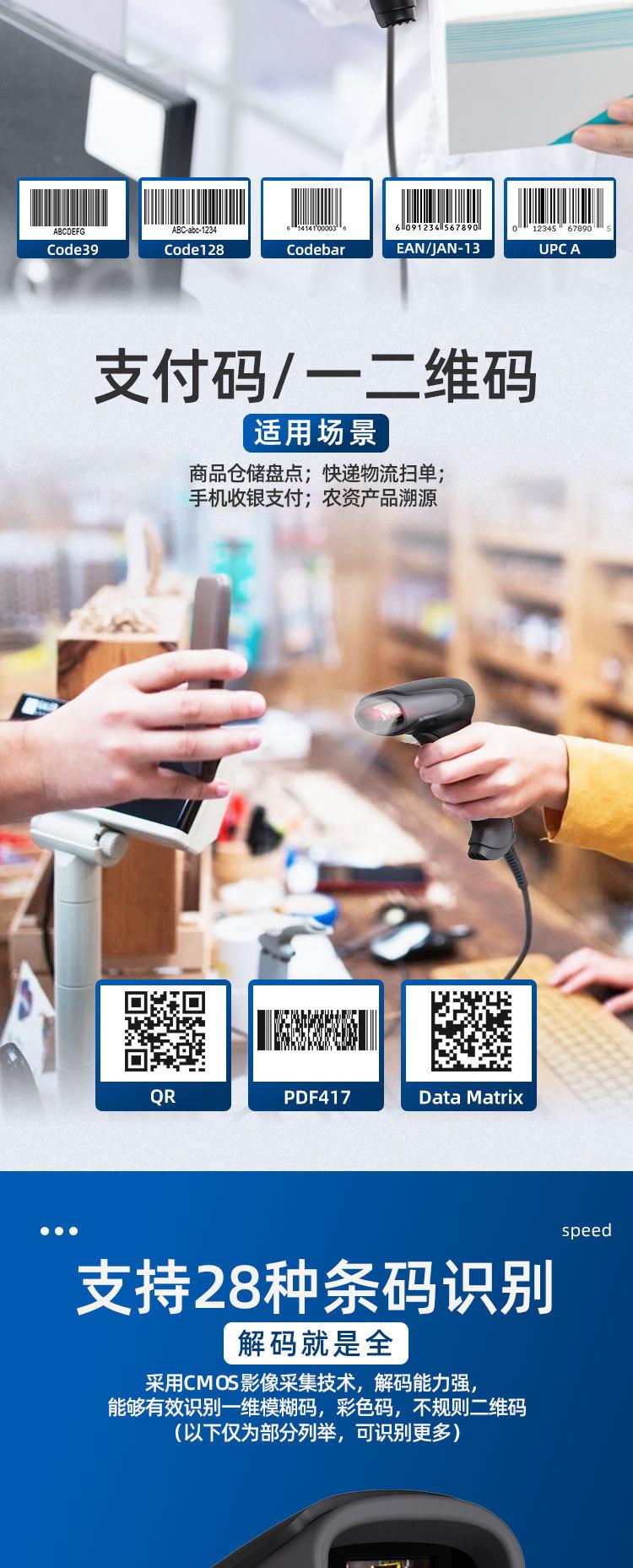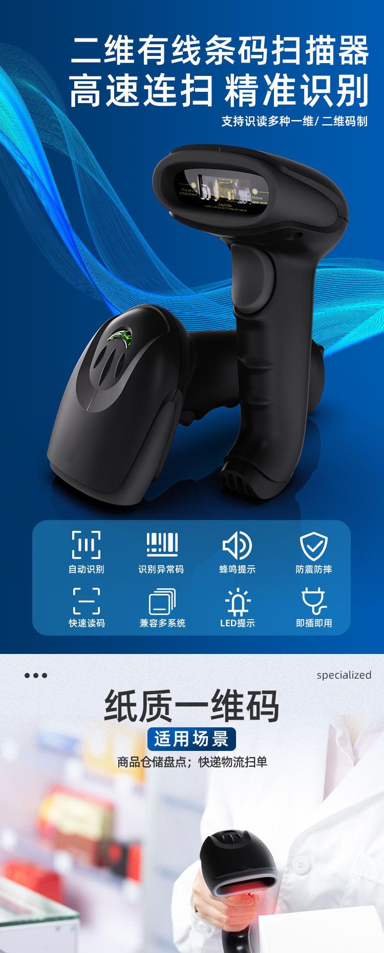 Pistola de escaneo de código QR-T20 con cable, código unidimensional, código bidimensional, plataforma de escaneo rápido de códigos para supermercados y almacenes.