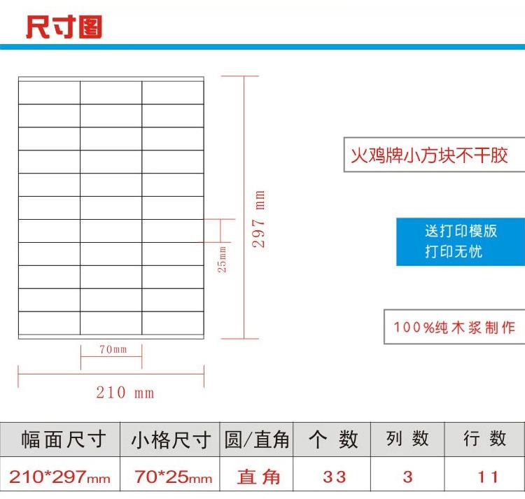 Etiqueta adhesiva A4 3x11 superficie mate papel de impresión láser inyección de tinta etiqueta de papel 70 * 25 mm 50 hojas