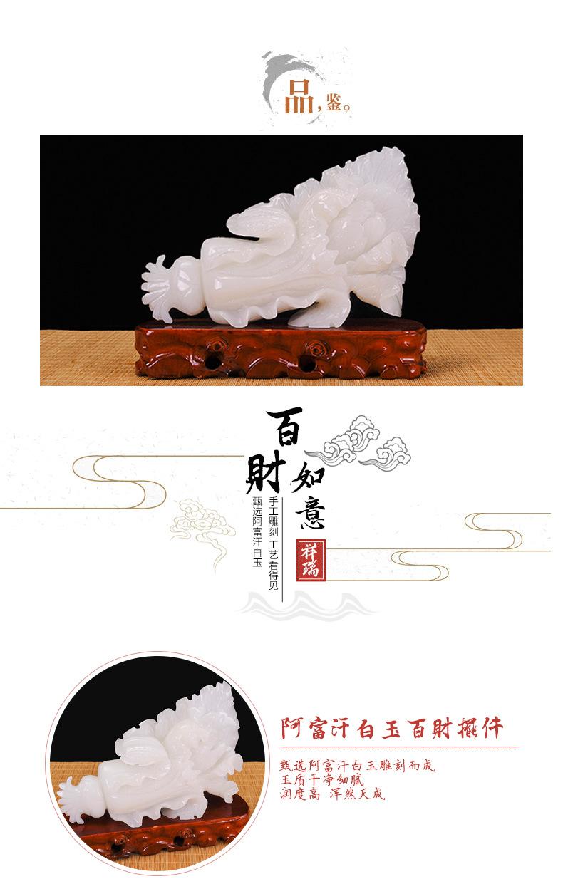 Venta al por mayor de adornos de jade blanco afgano natural, jade, col, ruyi, tallado de jade, artesanías, regalos, adornos comerciales, fábrica