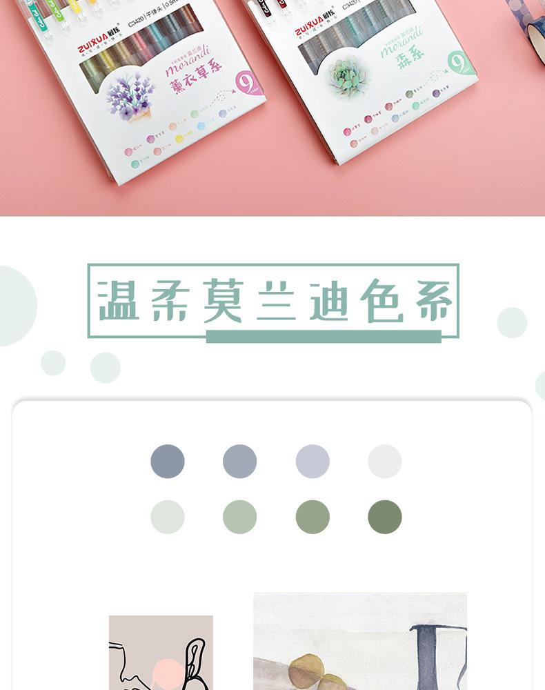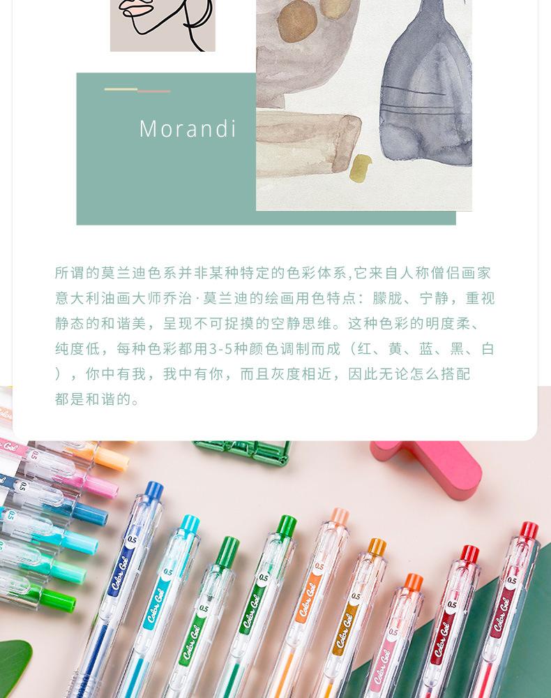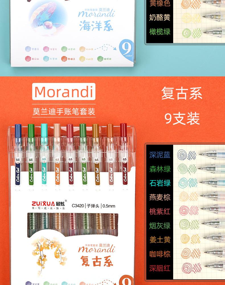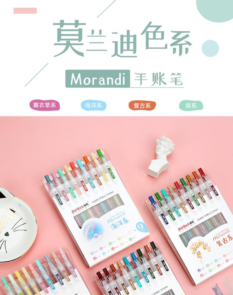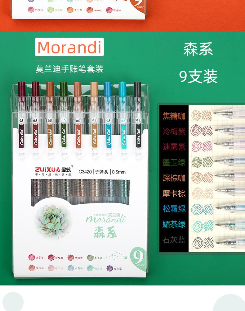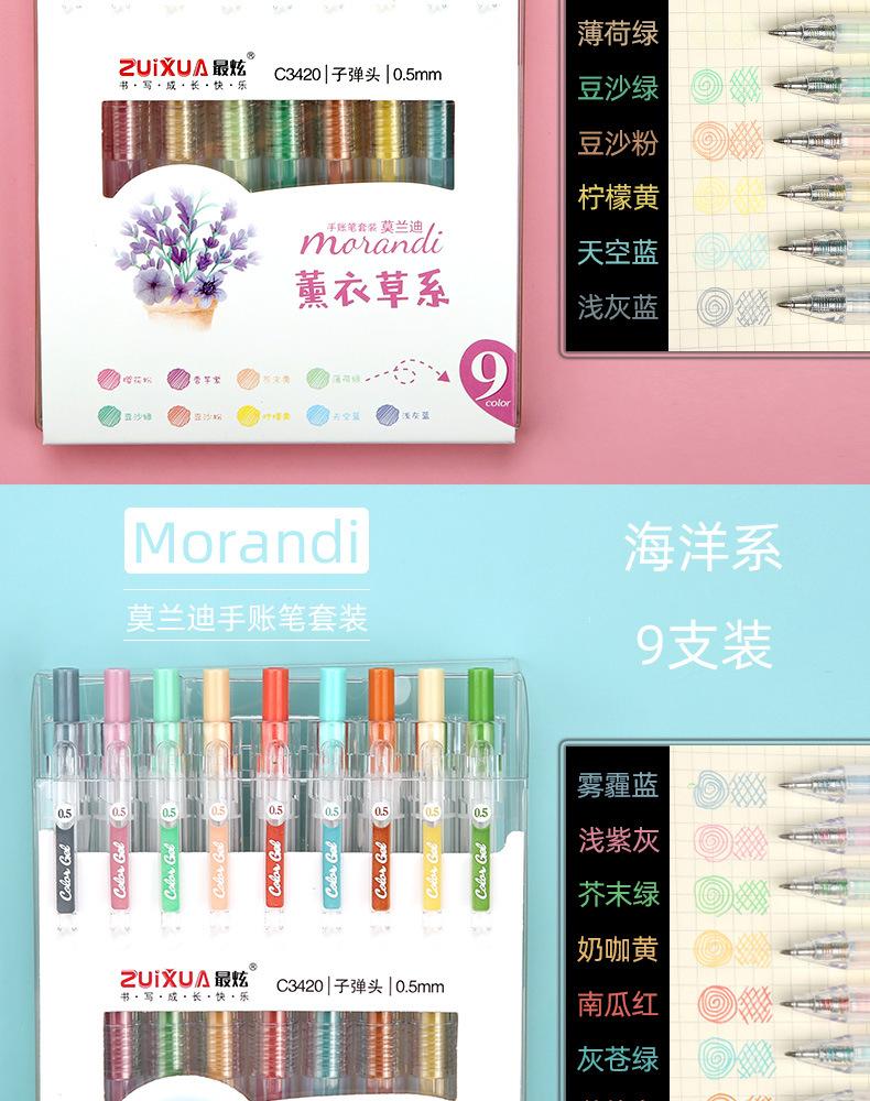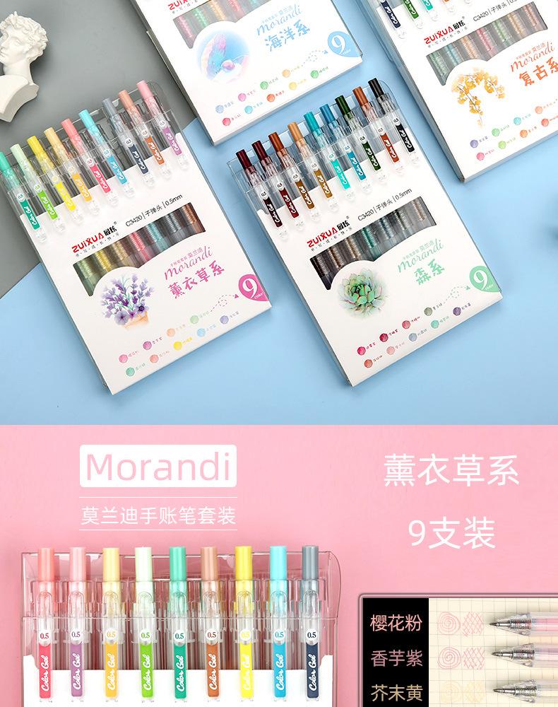 Juego de bolígrafos Morandi personalizados para estudiantes, suministros de oficina, notas, bolígrafo de agua, bolígrafo de color, bolígrafo de gel de prensa, venta al por mayor