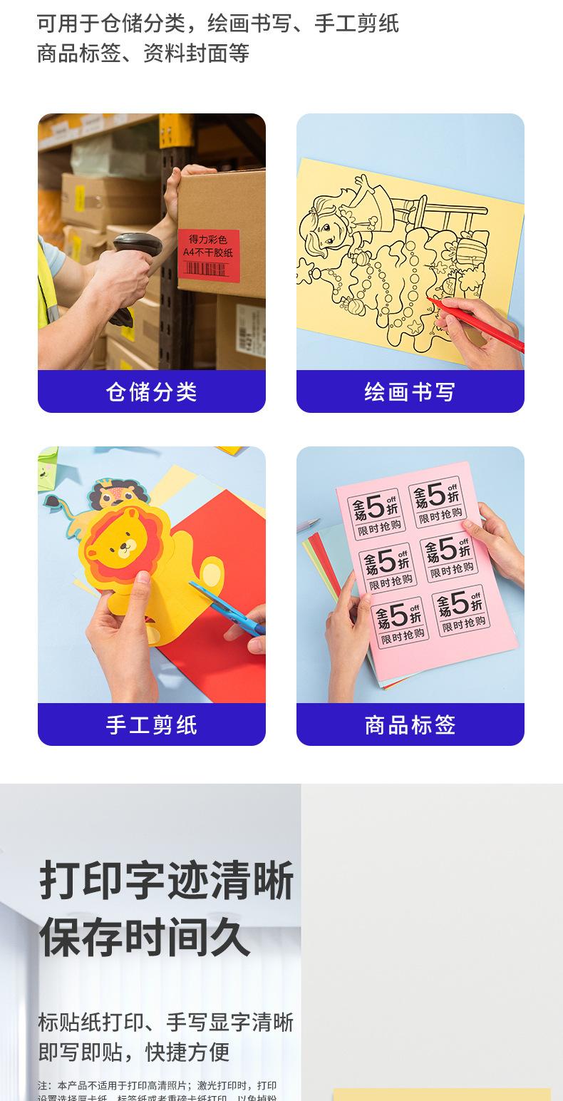 Papel de impresión autoadhesivo a color Deli, etiqueta autoadhesiva A4, etiqueta adhesiva en blanco para escritura, etiqueta adhesiva para inyección de tinta láser
