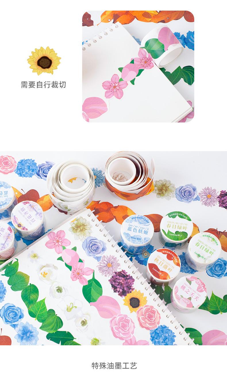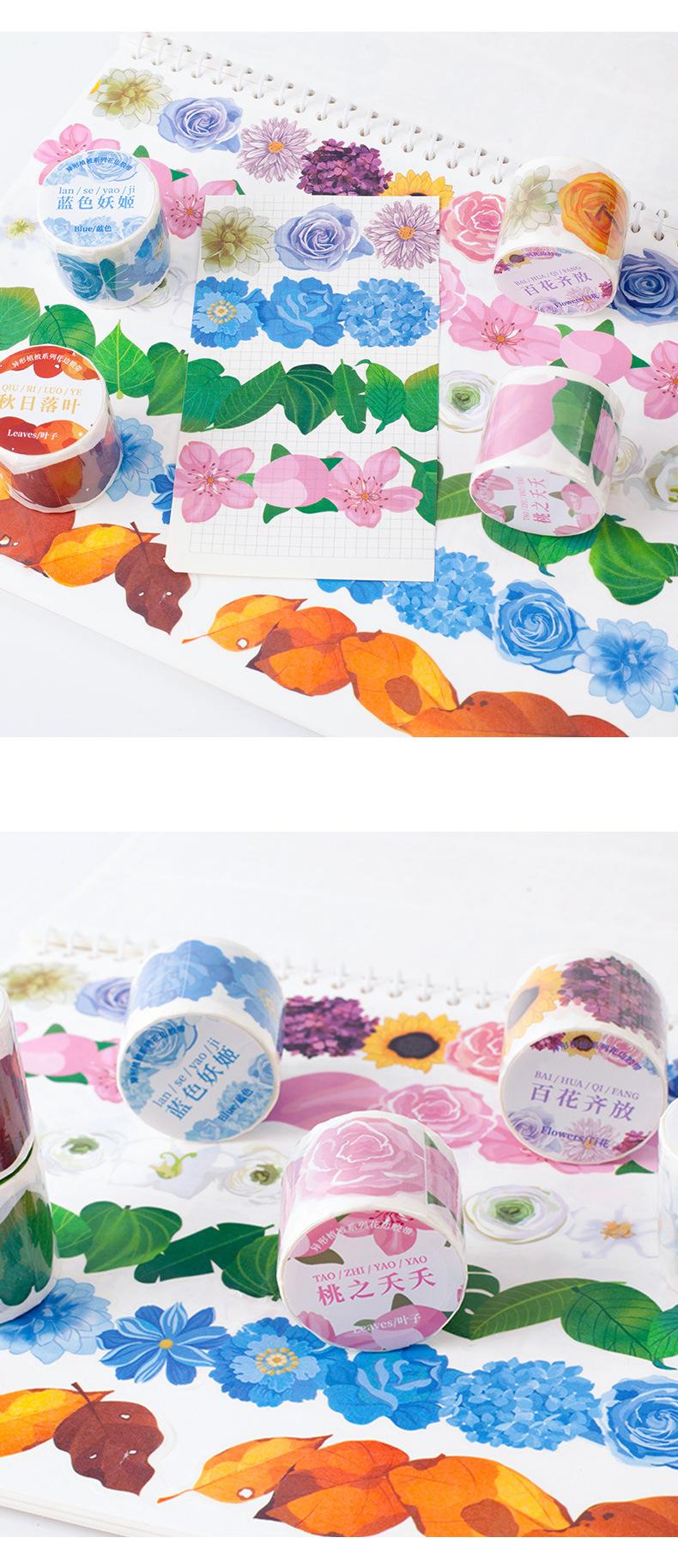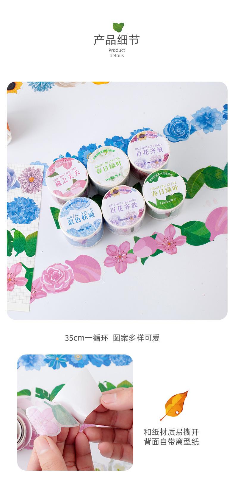 Xinqixin Cinta Adhesiva de Material para Manualidades con Graffiti de Flores de Forma Especial, Borde Adhesivo y Papel, Adhesivo Decorativo para Vaso de Agua, Venta al por Mayor