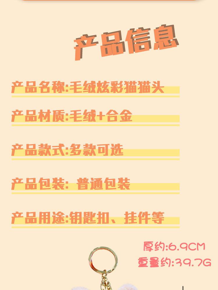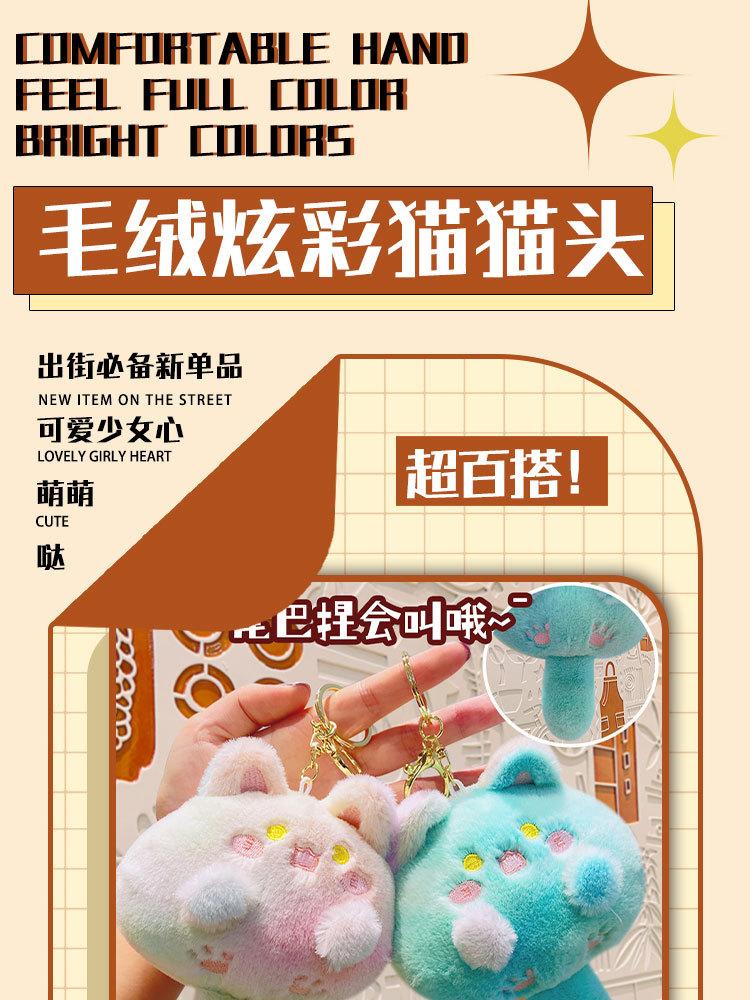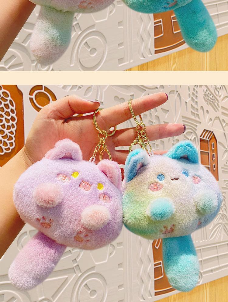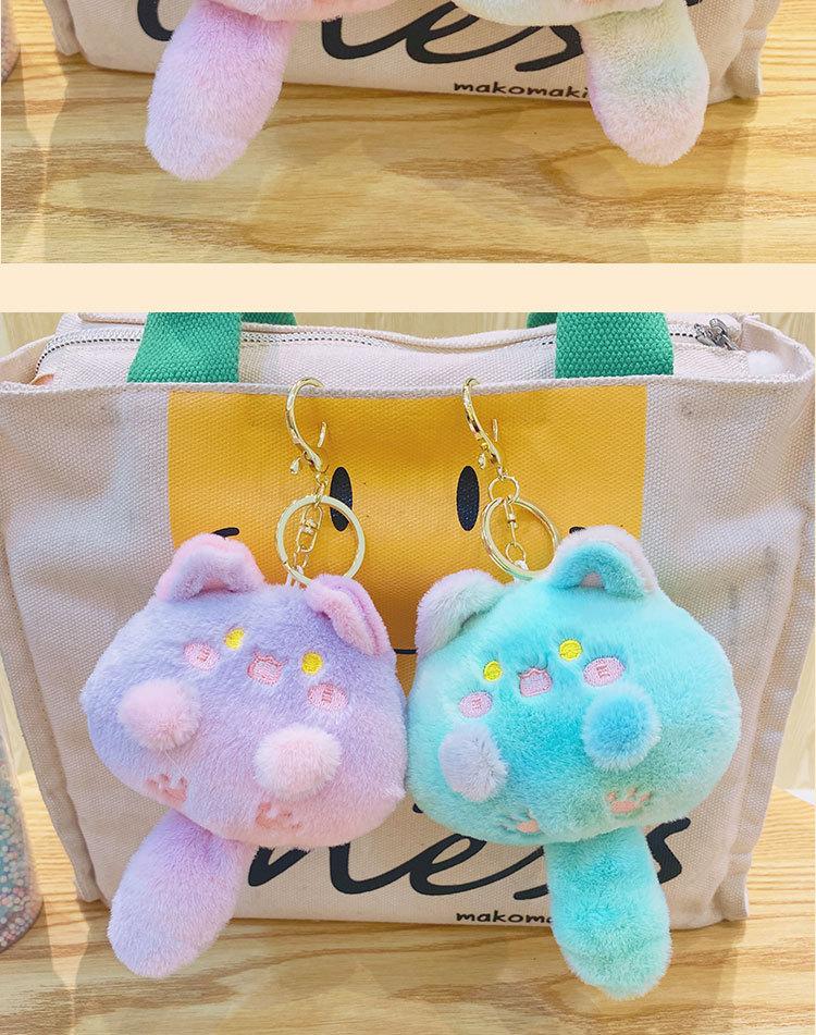 Colgante de muñeca con cabeza de gato de peluche colorido, bolso creativo, llavero, linda mochila escolar de dibujos animados, regalo colgante al por mayor