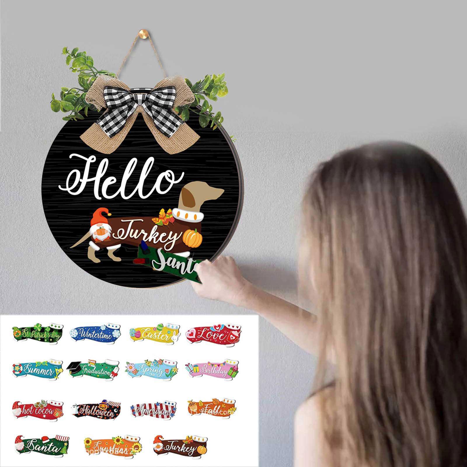 Nueva Placa Indicadora de Artesanía de Madera Creativa Transfronteriza Multicolor Divertida Señal de Bienvenida para Puerta Decoración de Escena Hogareña Madera