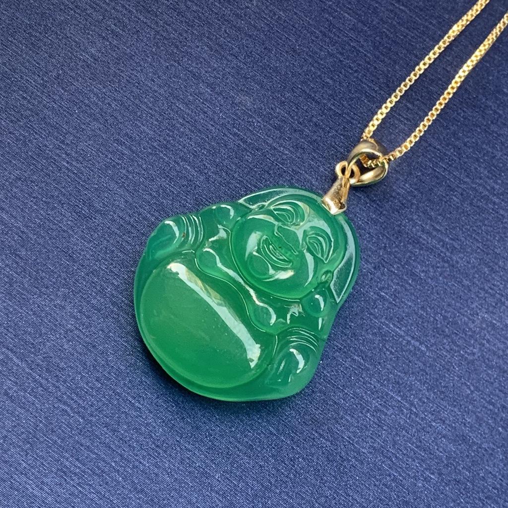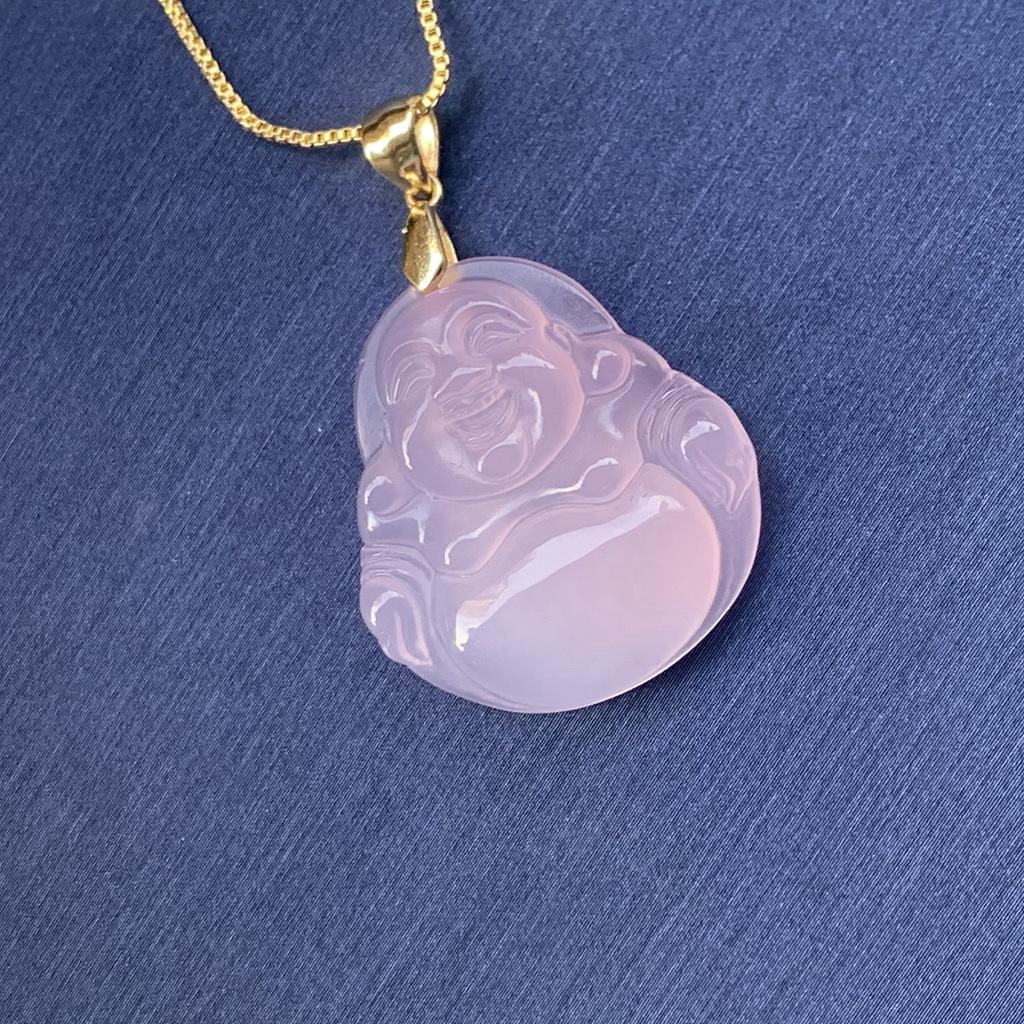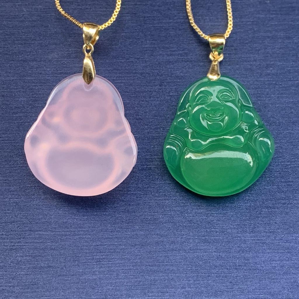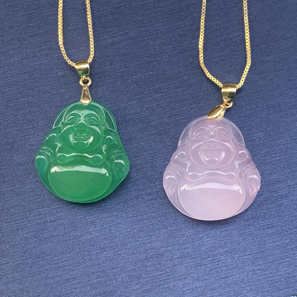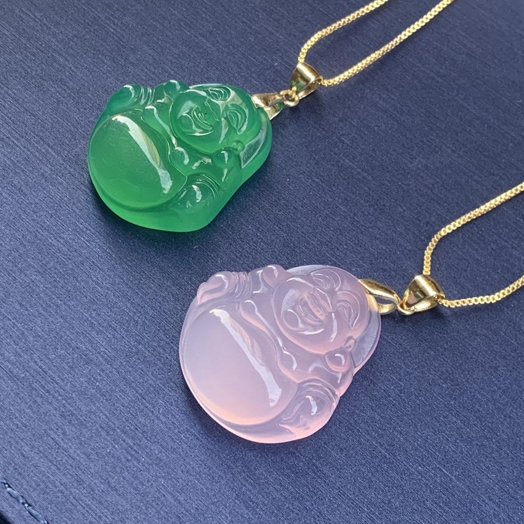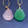 Colgante de Buda de gran barriga con calcedonia verde, semilla de hielo, calcedonia rosa, collar con colgante de Buda Maitreya, Buda de ágata, Buda sonriente.