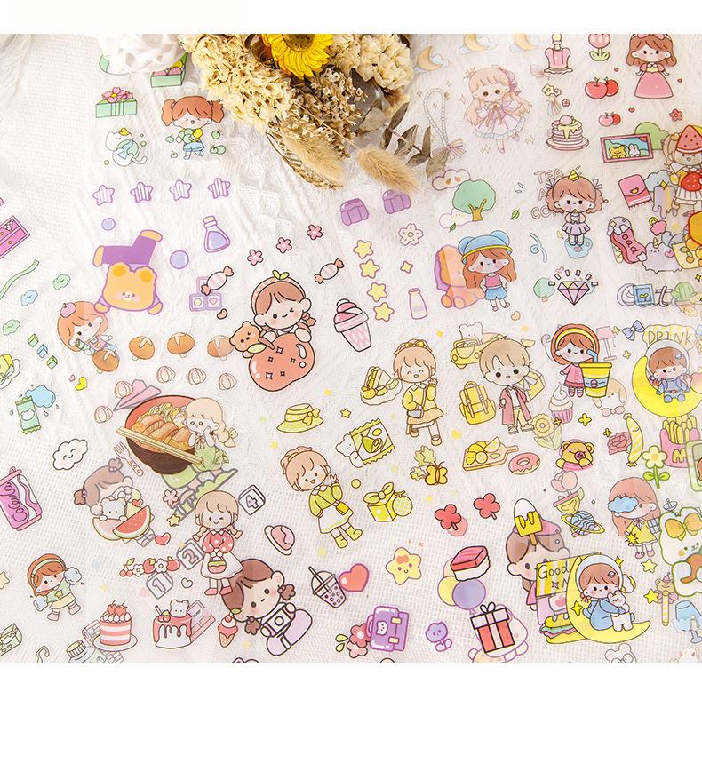 Pegatina de PET larga de 40 cm, bonita y resistente al agua, material decorativo para cuenta de mano de estudiante, pegatina de cuenta de mano de viento
