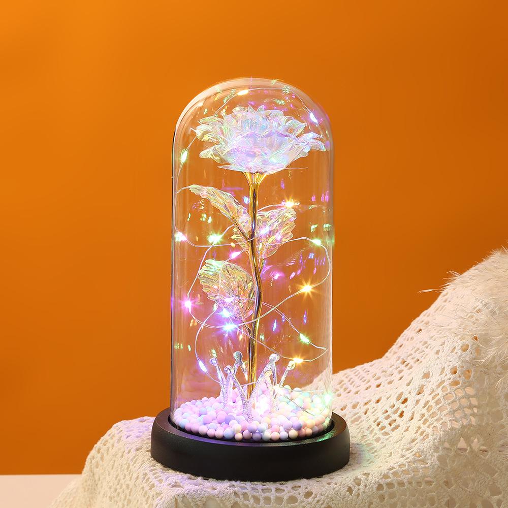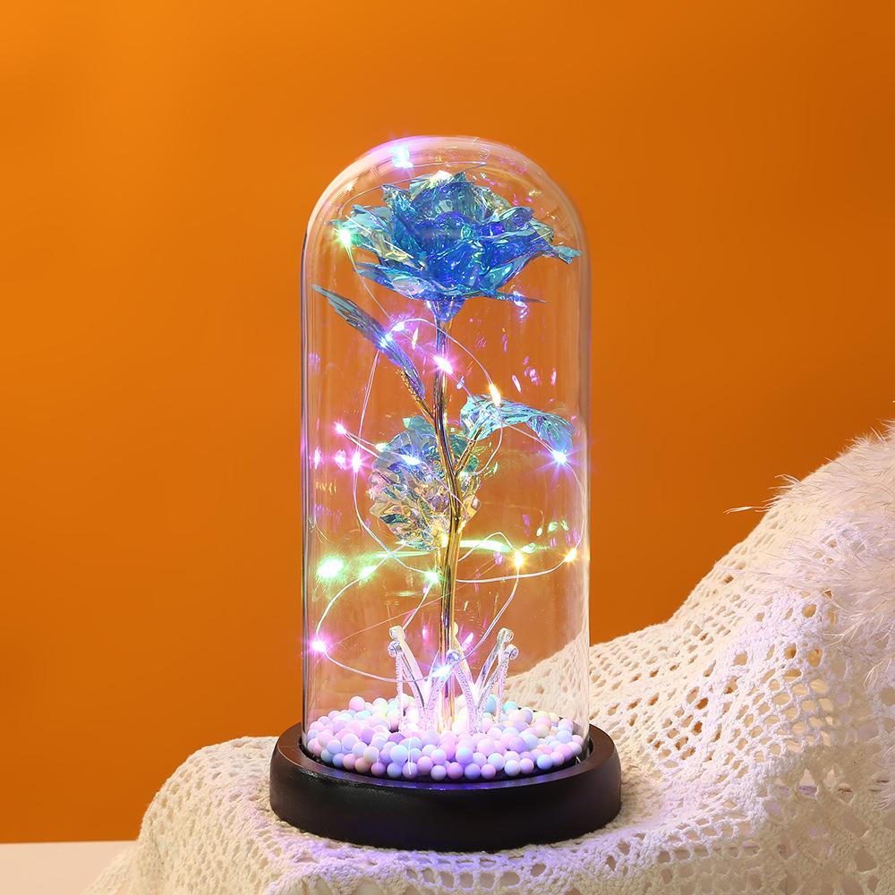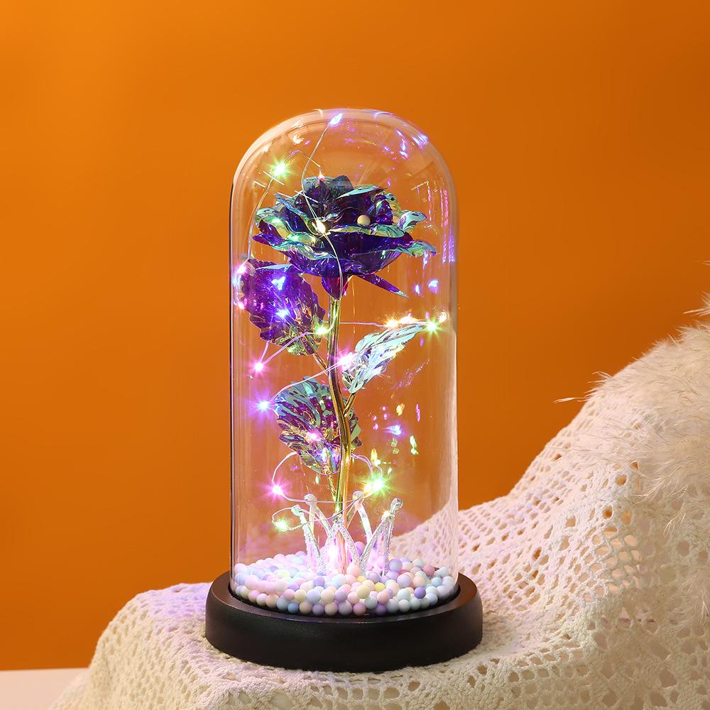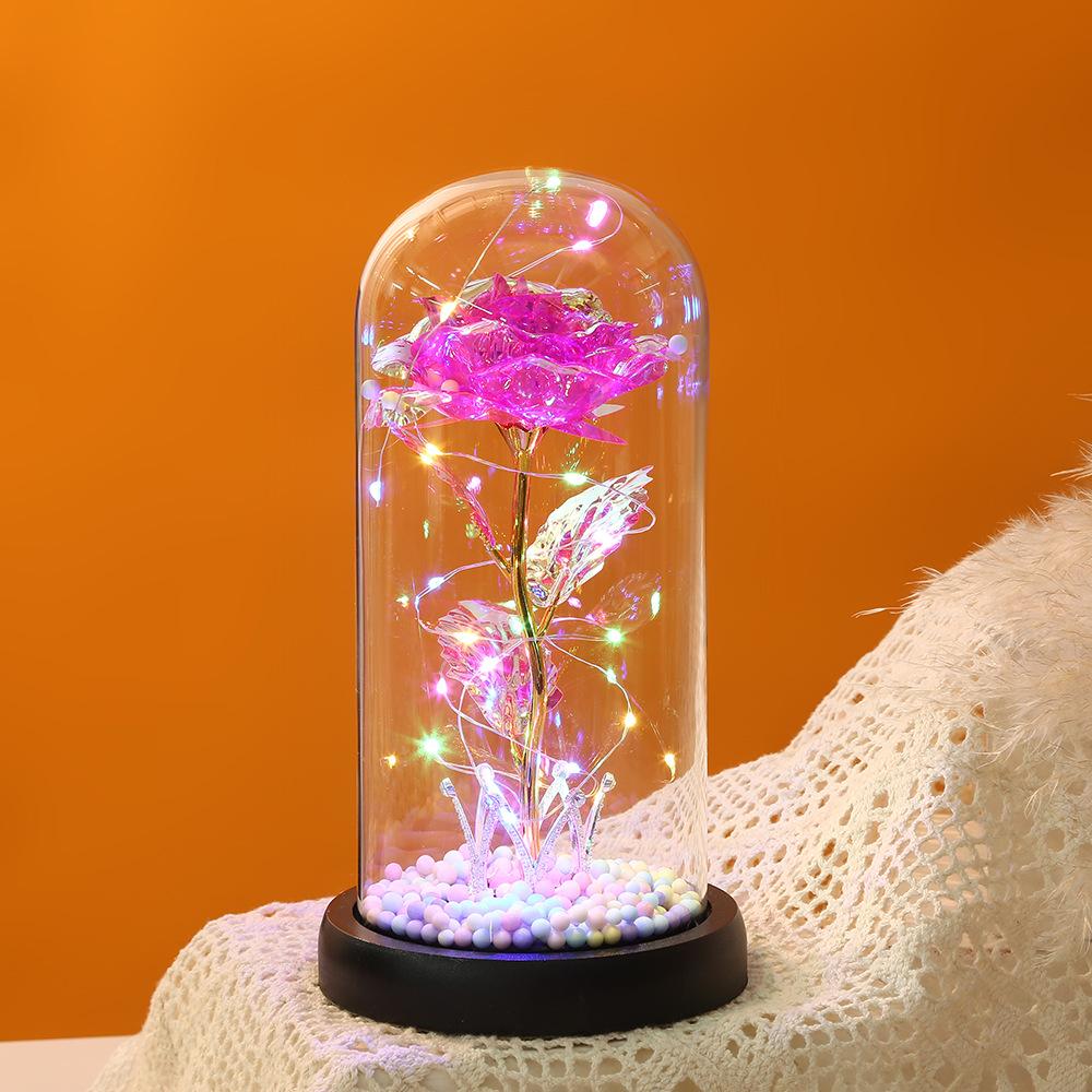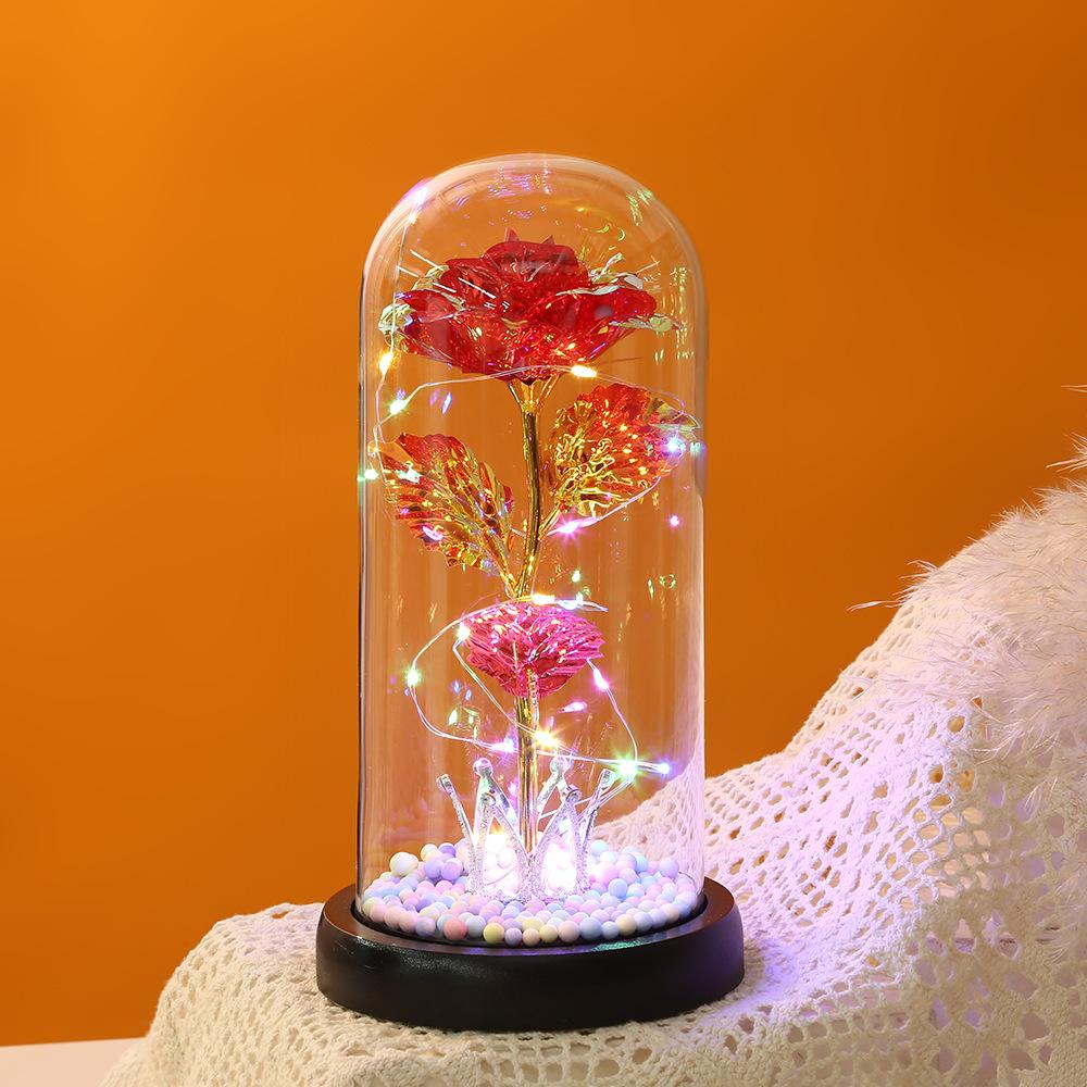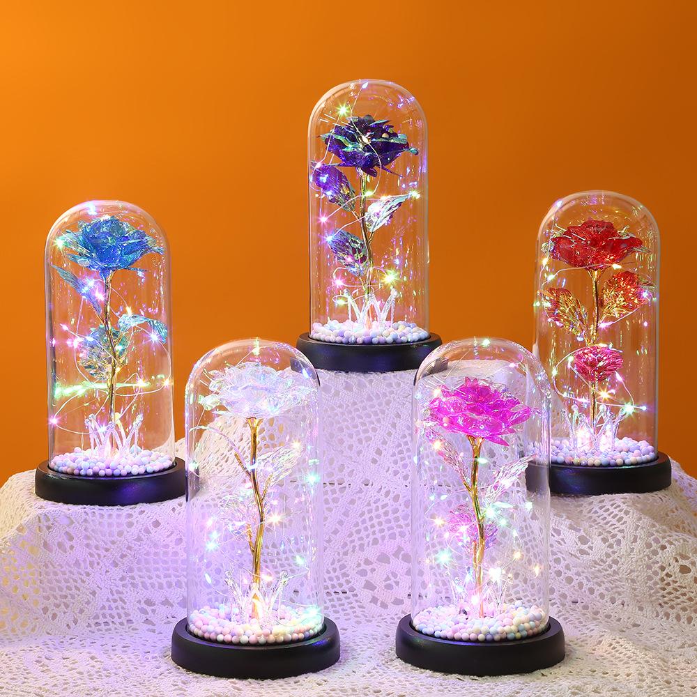 Flor Inmortal Colorida Transfronteriza Cubierta de Vidrio Vacaciones Flor de Lámina de Oro Luz Nocturna Regalo Flor Rosa Adornos de Escritorio Venta al por Mayor