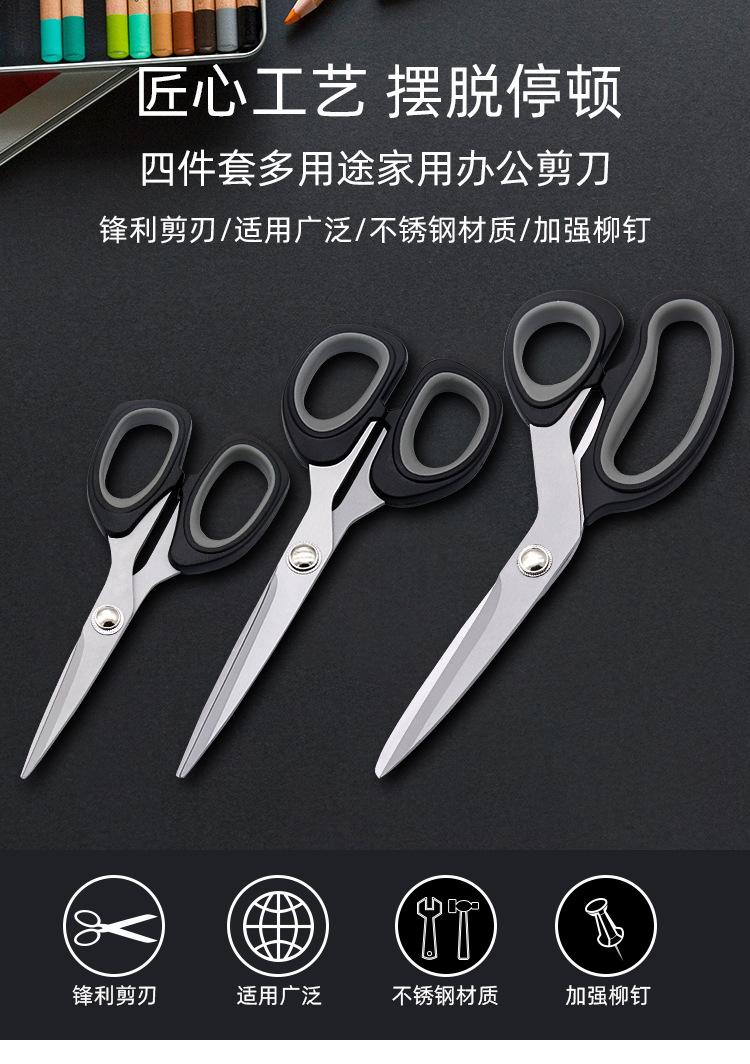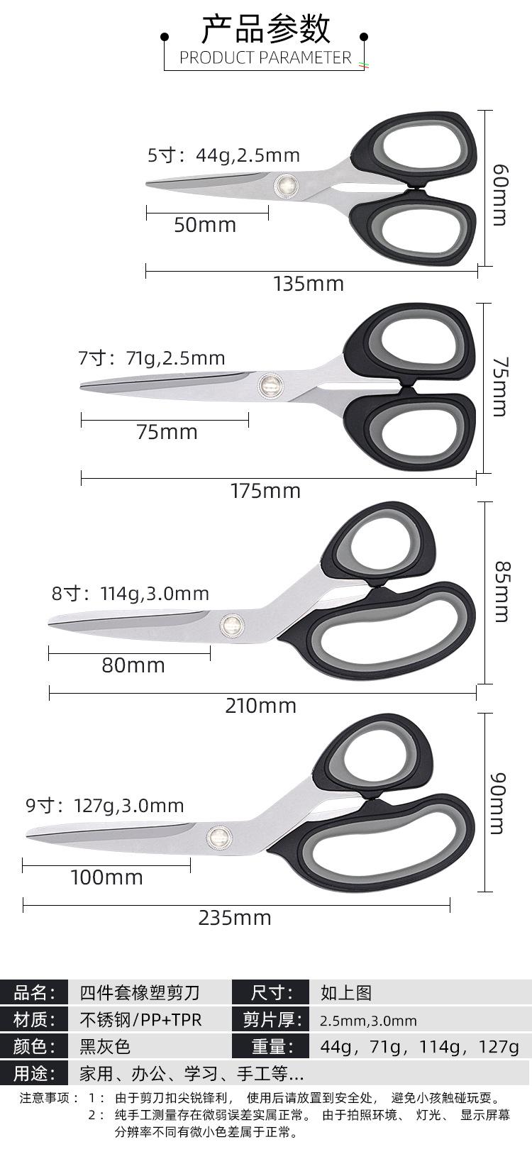 Tijeras Domésticas de Acero Inoxidable Yangjiang Tijeras de Oficina Juego de Tres Piezas Goma Plástico Oficina Tela Negocios Corte Mango Antideslizante