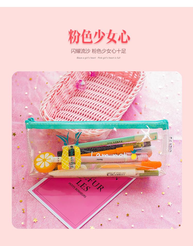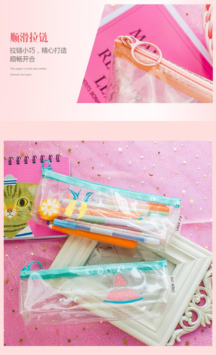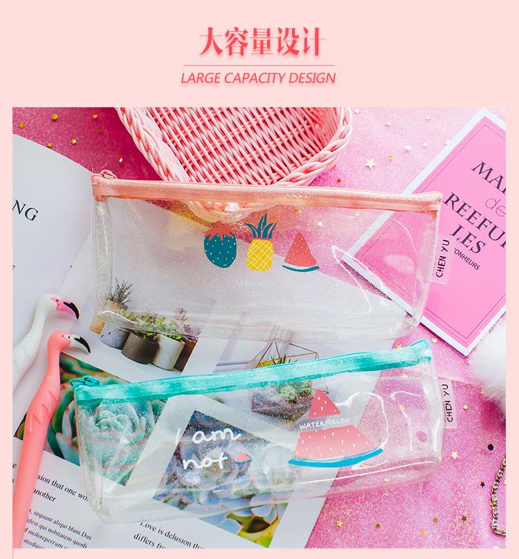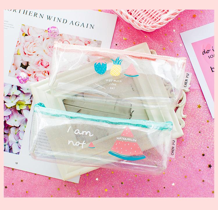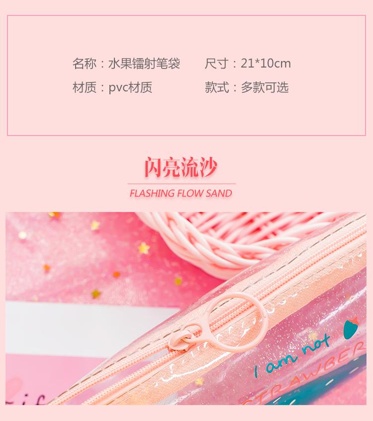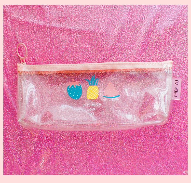 Estuche para lápices con asa, pequeño, transparente, con láser, de fruta fresca, de gran capacidad, creativo y bonito, para estudiantes de primaria.