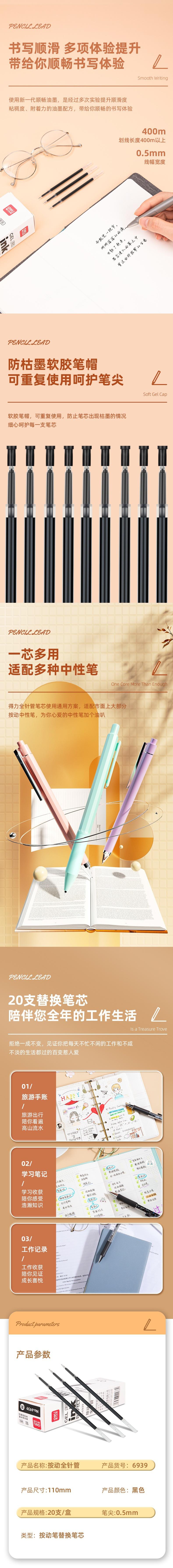 Recambio de aguja neutra Deli 6939 Press Full Needle Tube de 0,5 mm, color negro, para bolígrafo de firma de oficina para estudiantes, recarga de agua