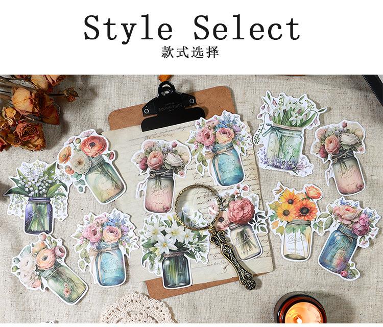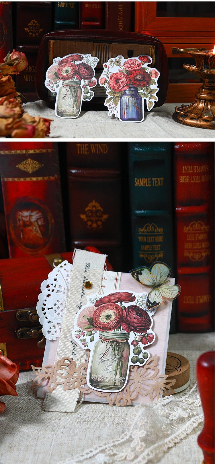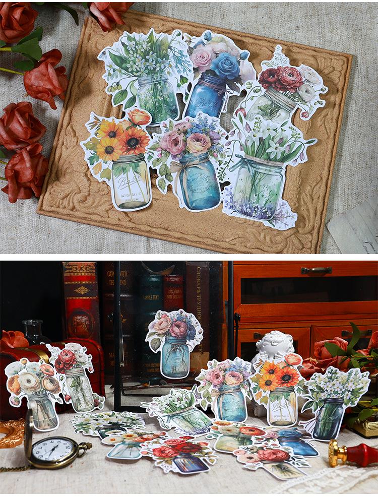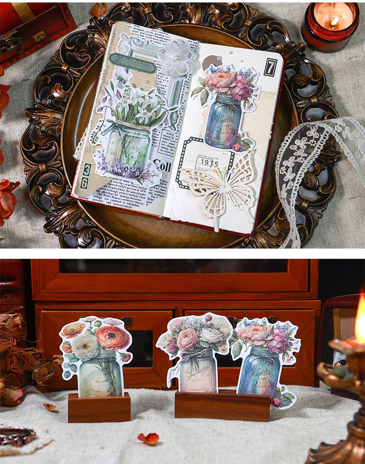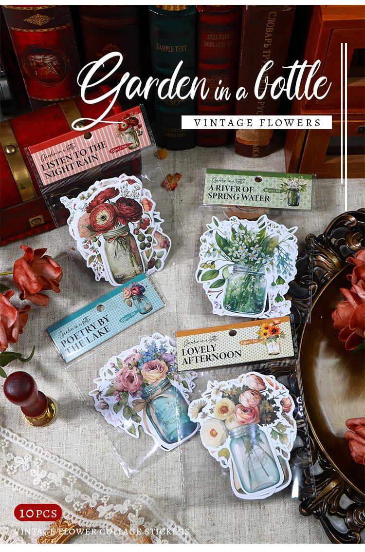 Botella de bosque antiguo transfronterizo, serie Jardín, pegatinas retro artísticas de diario de plantas, collage de diario de flores