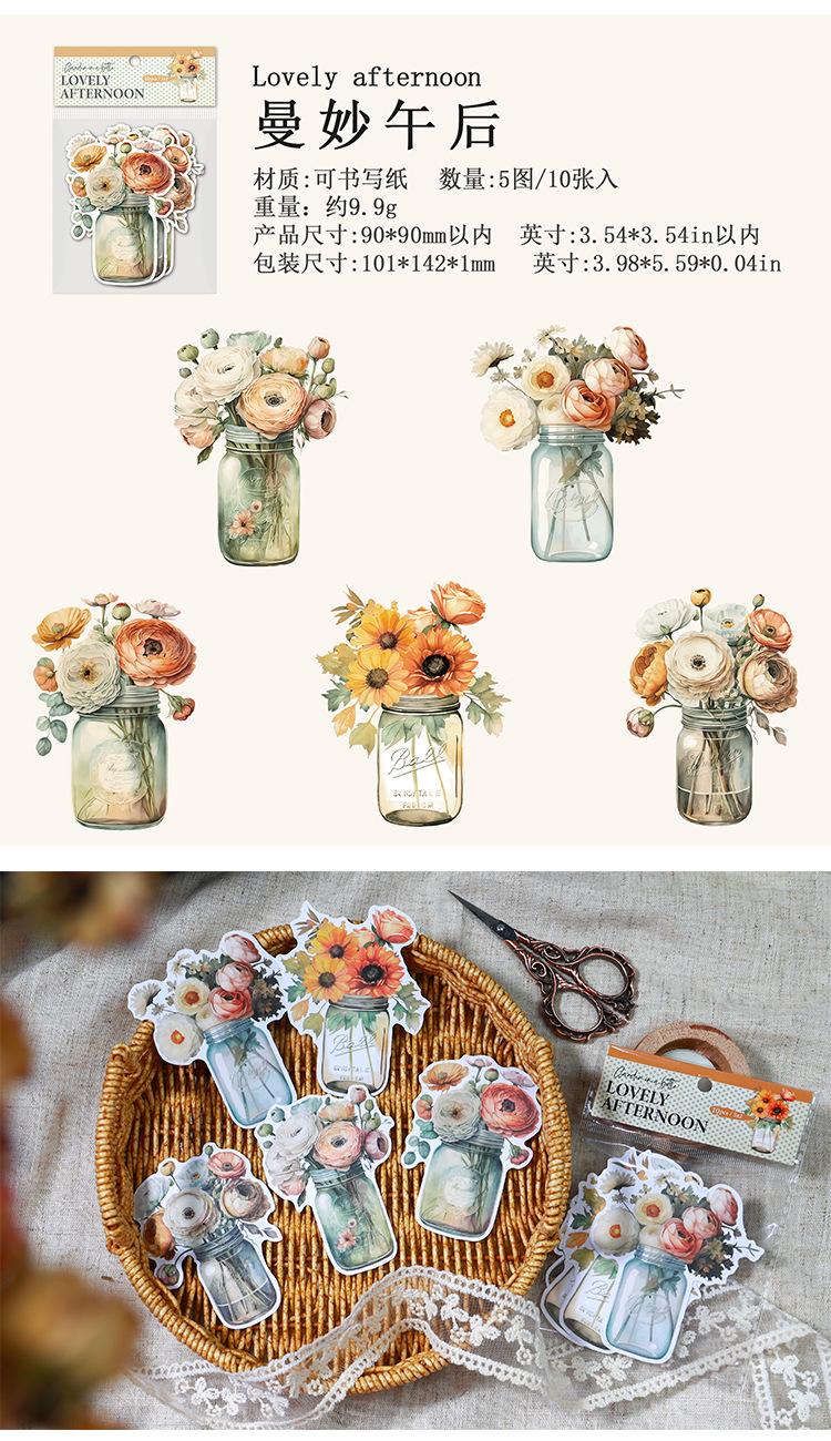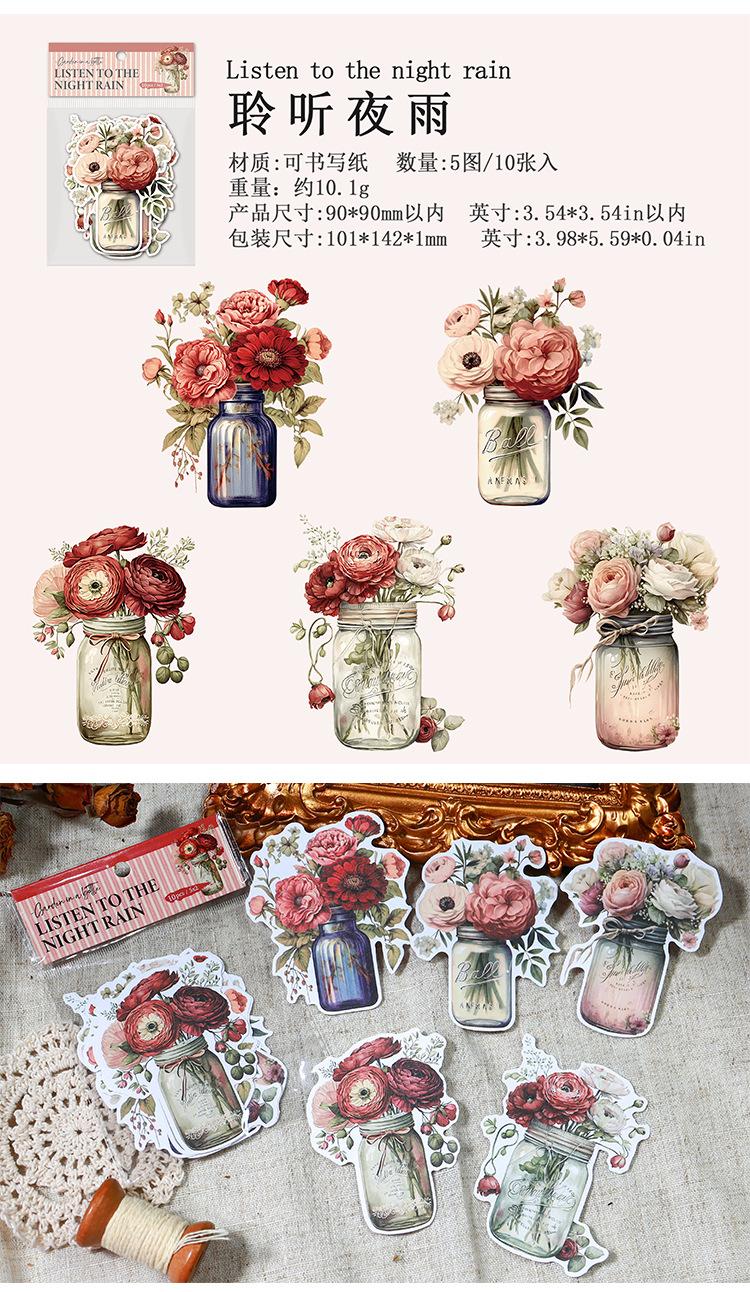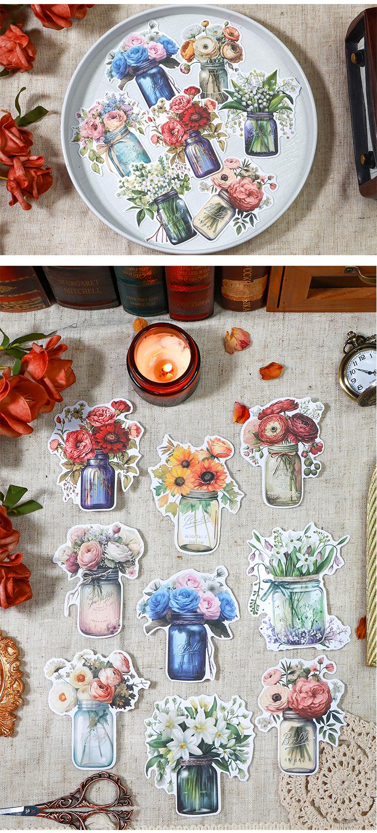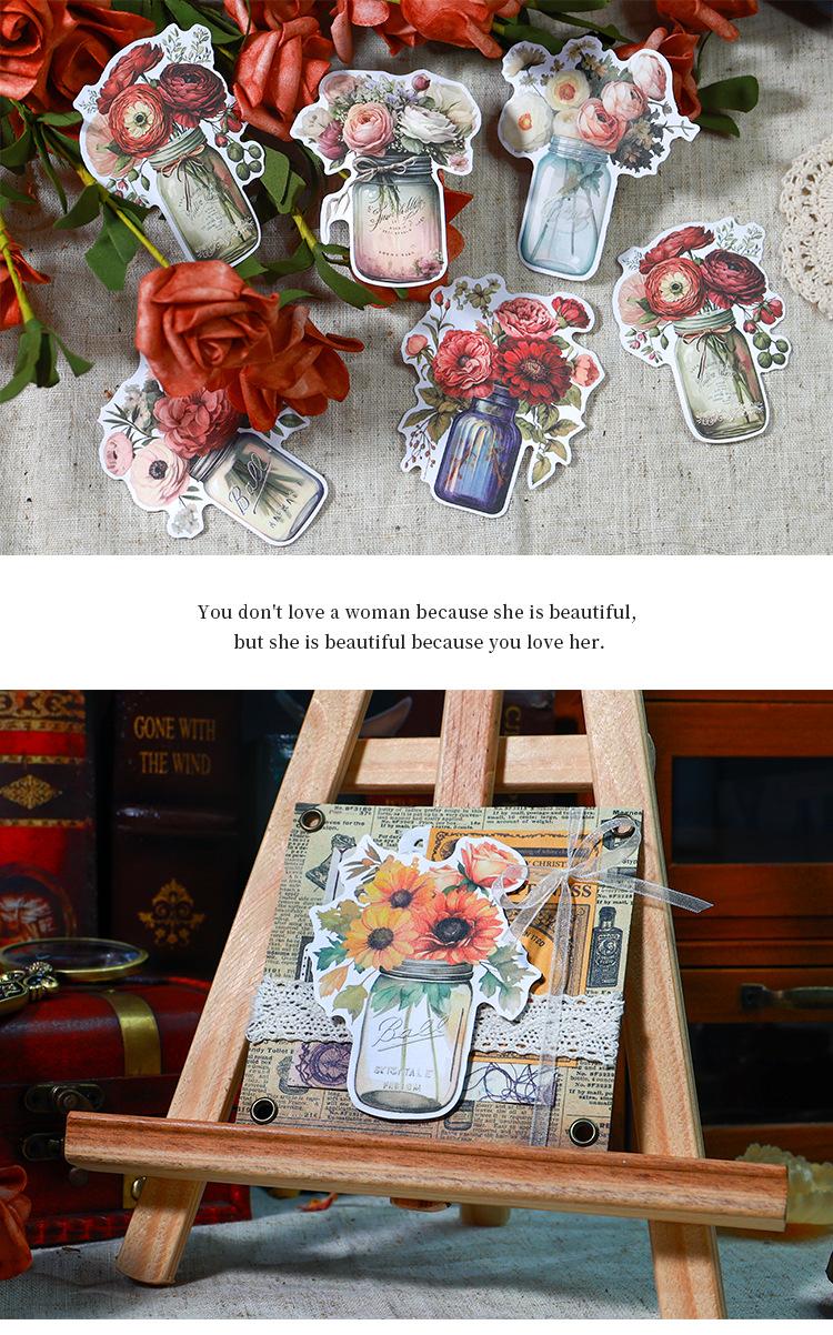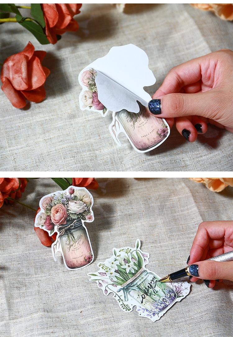 Botella de bosque antiguo transfronterizo, serie Jardín, pegatinas retro artísticas de diario de plantas, collage de diario de flores