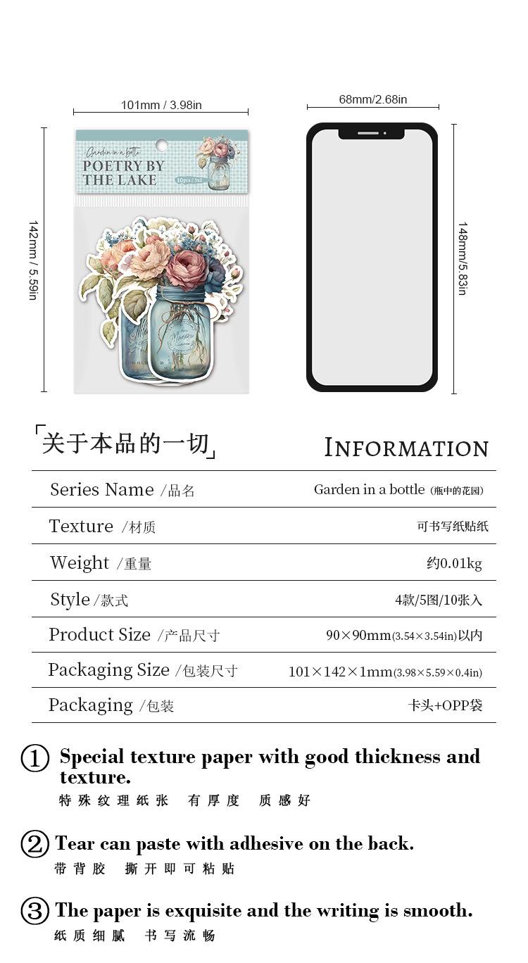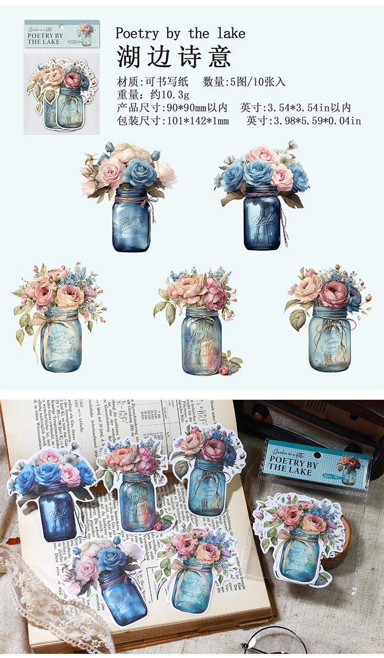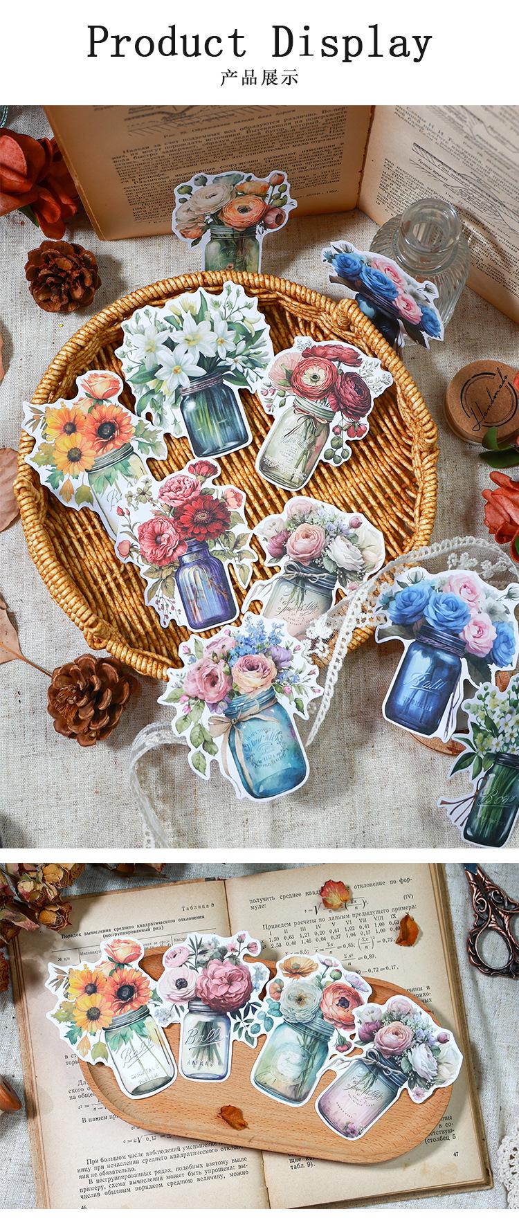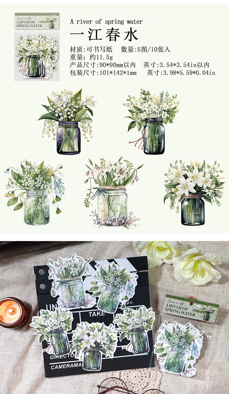 Botella de bosque antiguo transfronterizo, serie Jardín, pegatinas retro artísticas de diario de plantas, collage de diario de flores