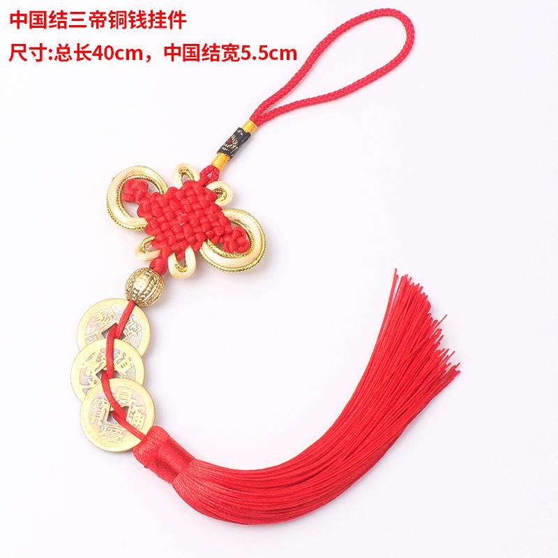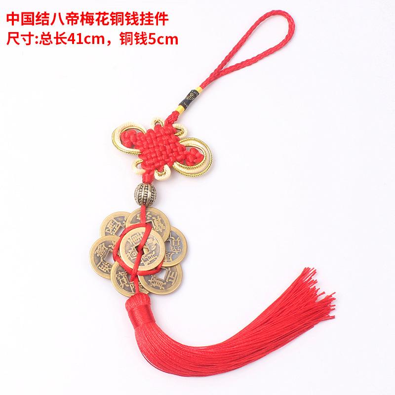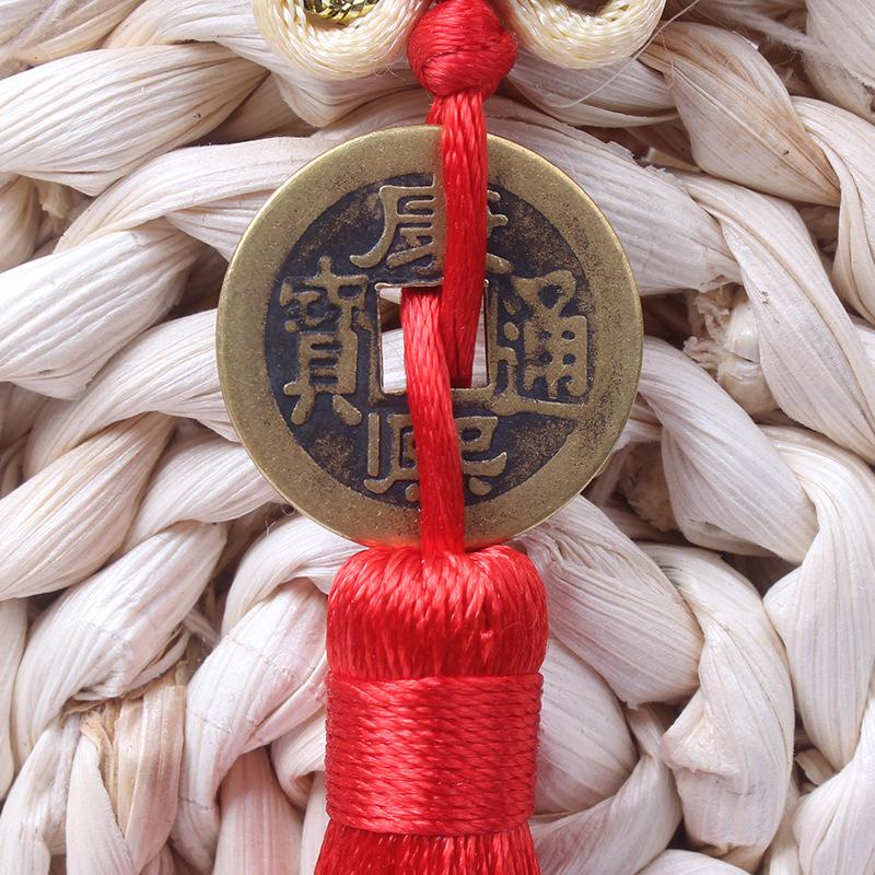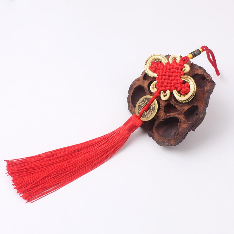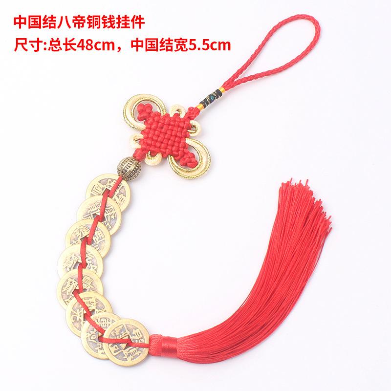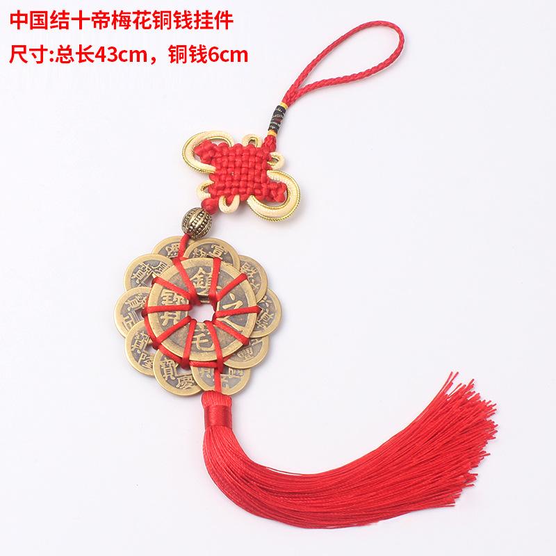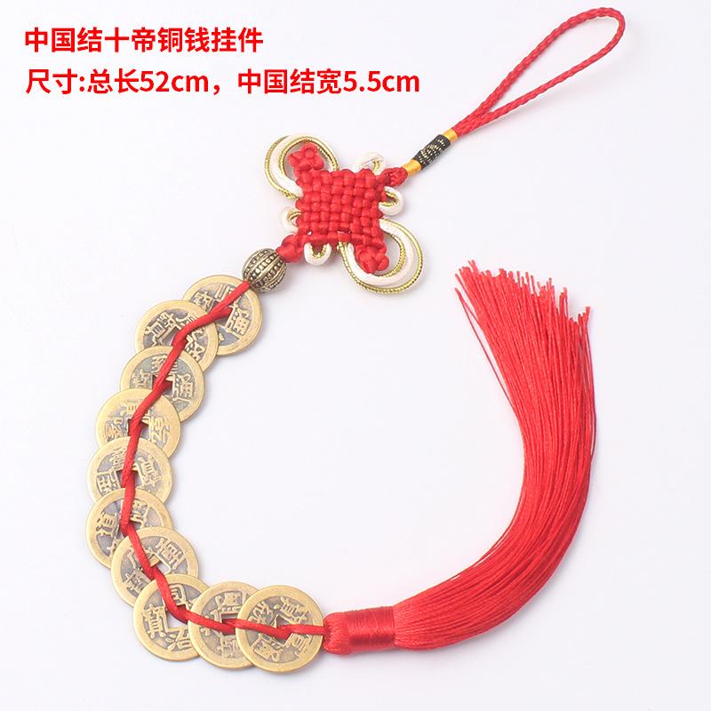 Material: El nudo chino está hecho de hilo de poliéster y las monedas de cobre son monedas de cobre reales de los Diez Emperadores de la Dinastía Qing.