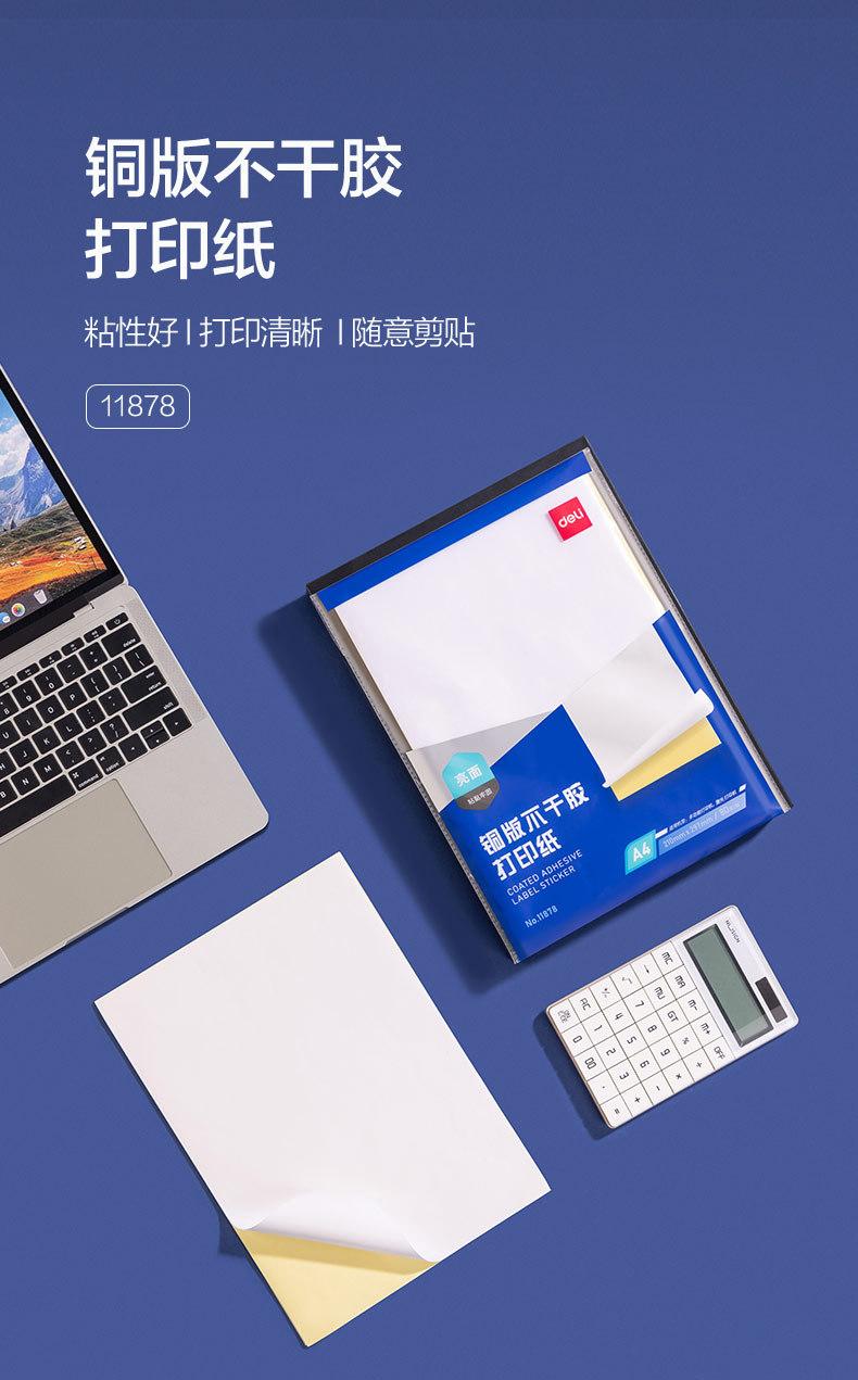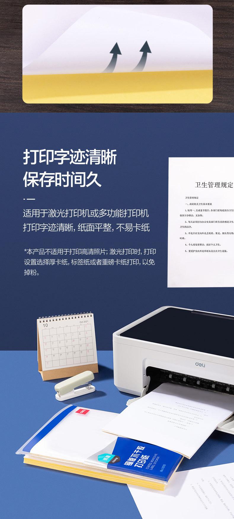 Deli 2191 Papel Autoadhesivo para Impresión de Etiquetas 70Ga4 Papel Estucado Brillante con Dorso Adhesivo Papel para Etiquetas Inkjet Láser