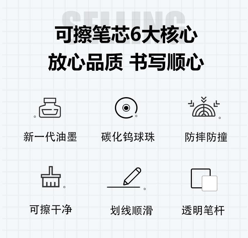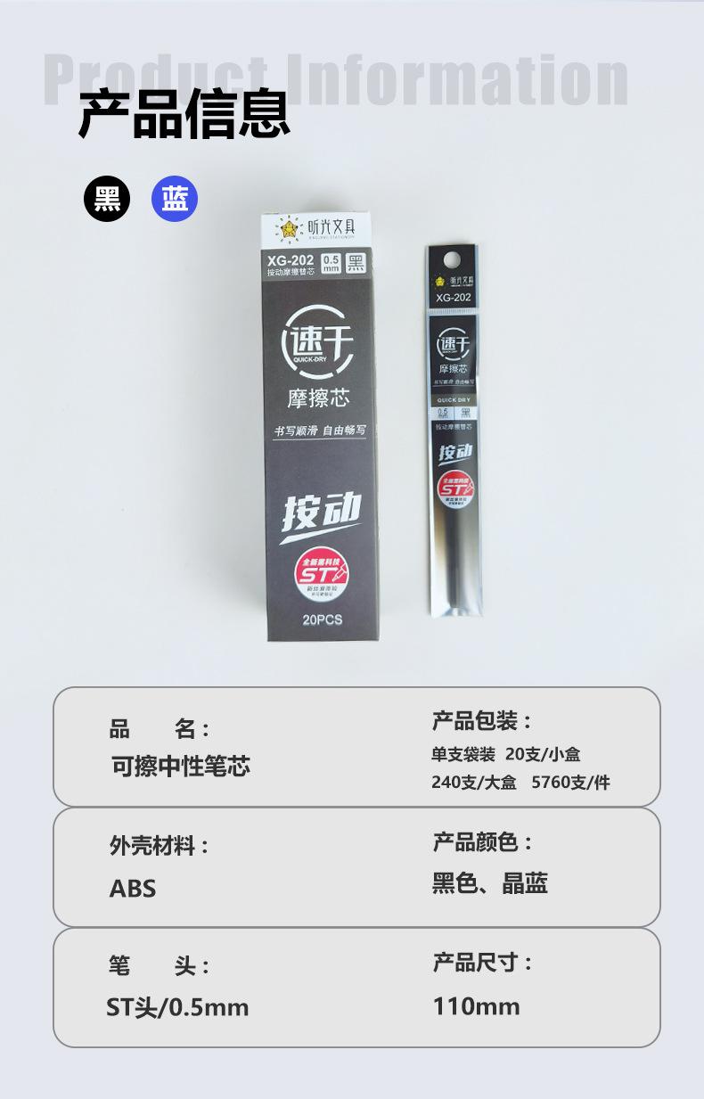 Recambio de bolígrafo de gel borrable térmico al por mayor, cabezal ST, recambio universal azul y negro de 0,5 mm