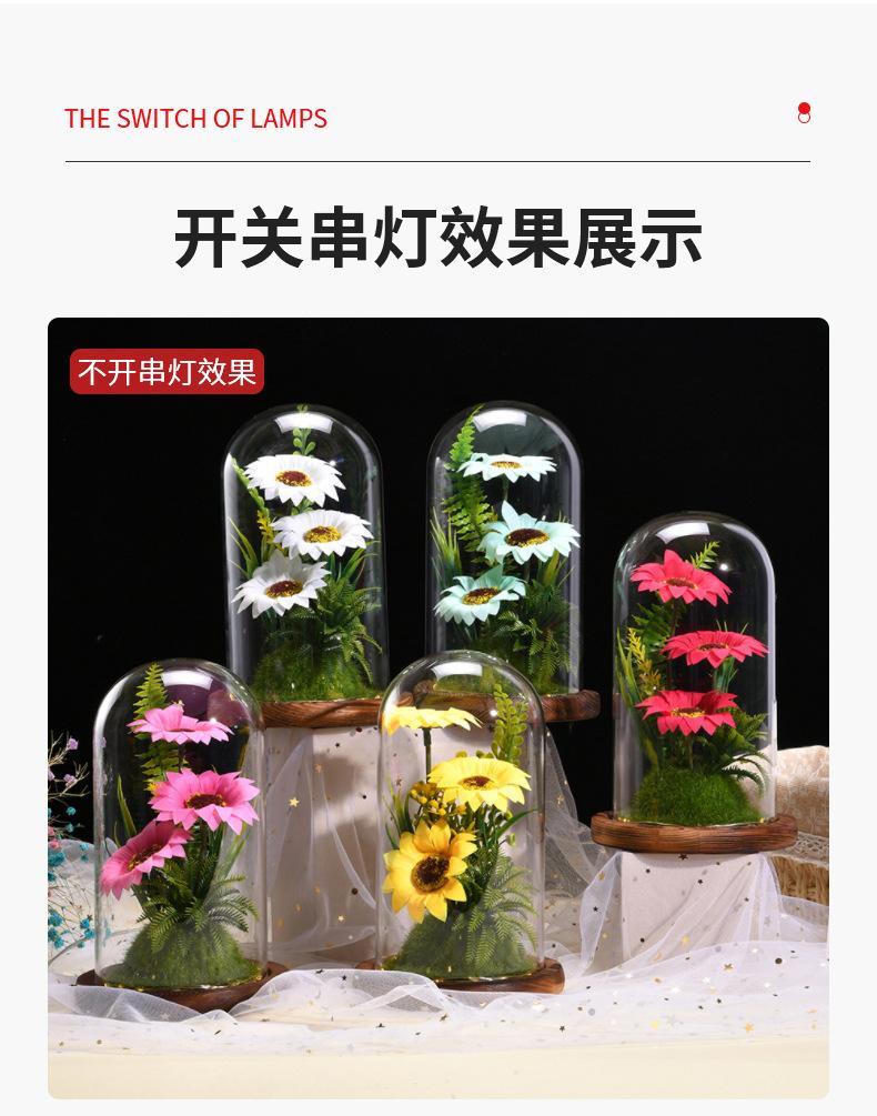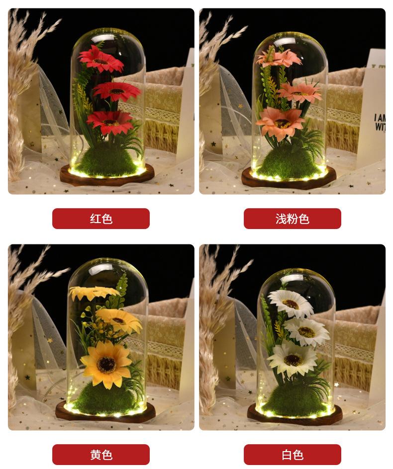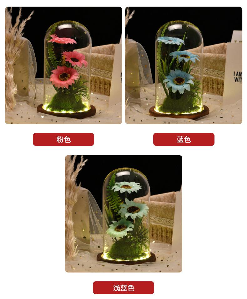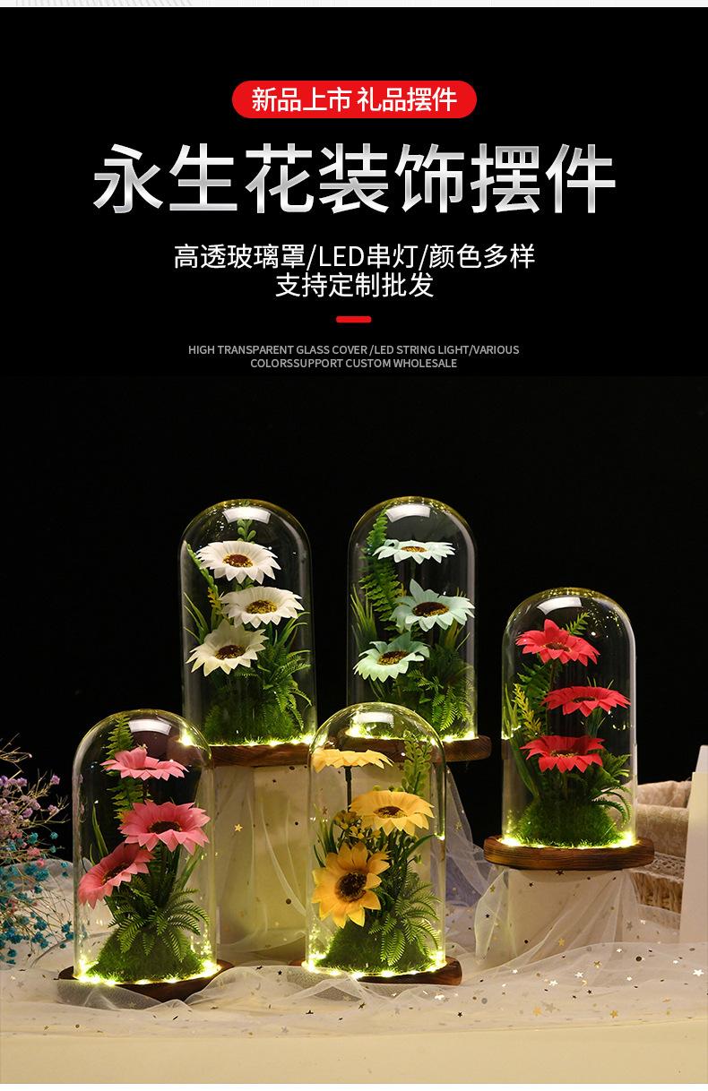 Nueva caja de regalo con tapa de cristal de girasol con flor eterna, flores secas frescas, decoración de escritorio, regalo para el Día del Maestro, venta al por mayor