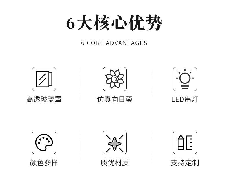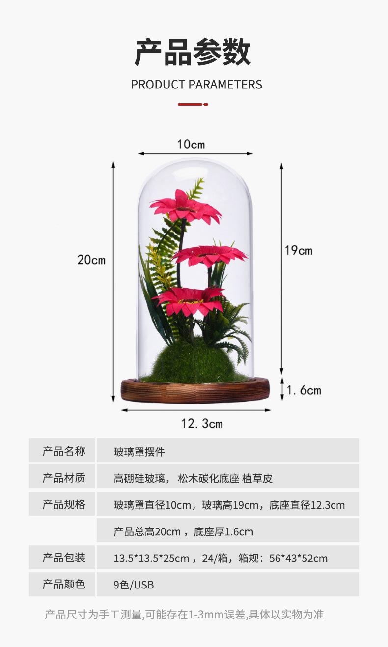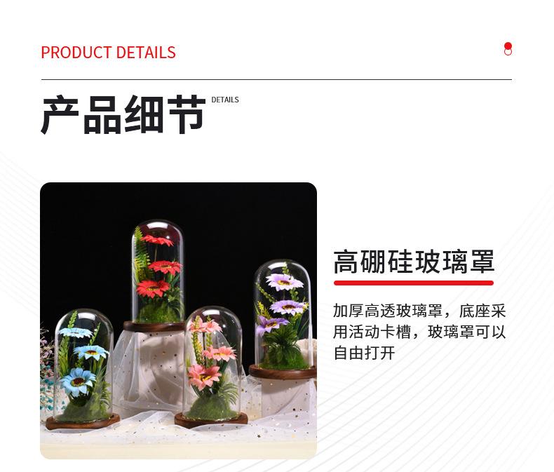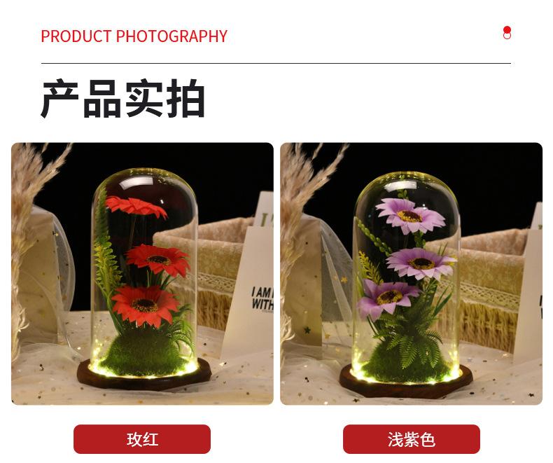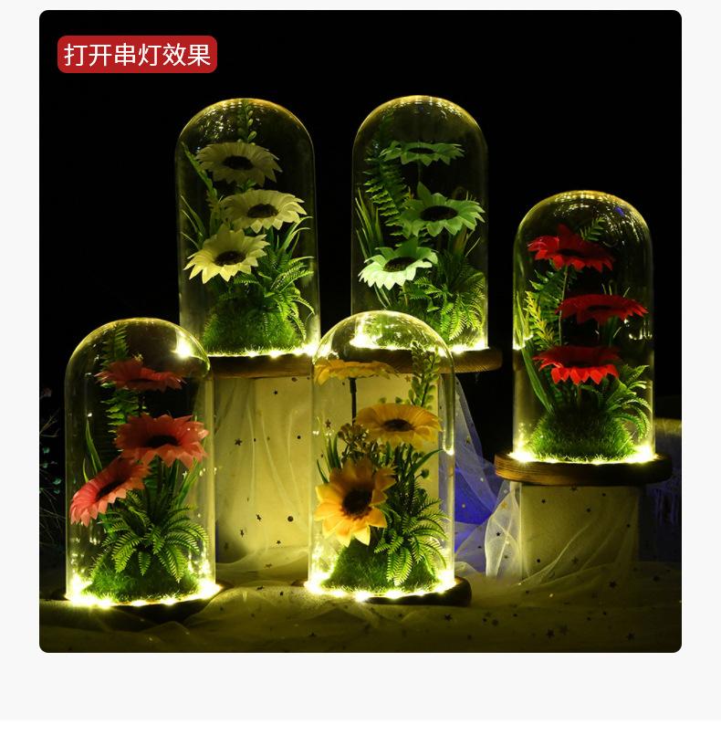 Nueva caja de regalo con tapa de cristal de girasol con flor eterna, flores secas frescas, decoración de escritorio, regalo para el Día del Maestro, venta al por mayor