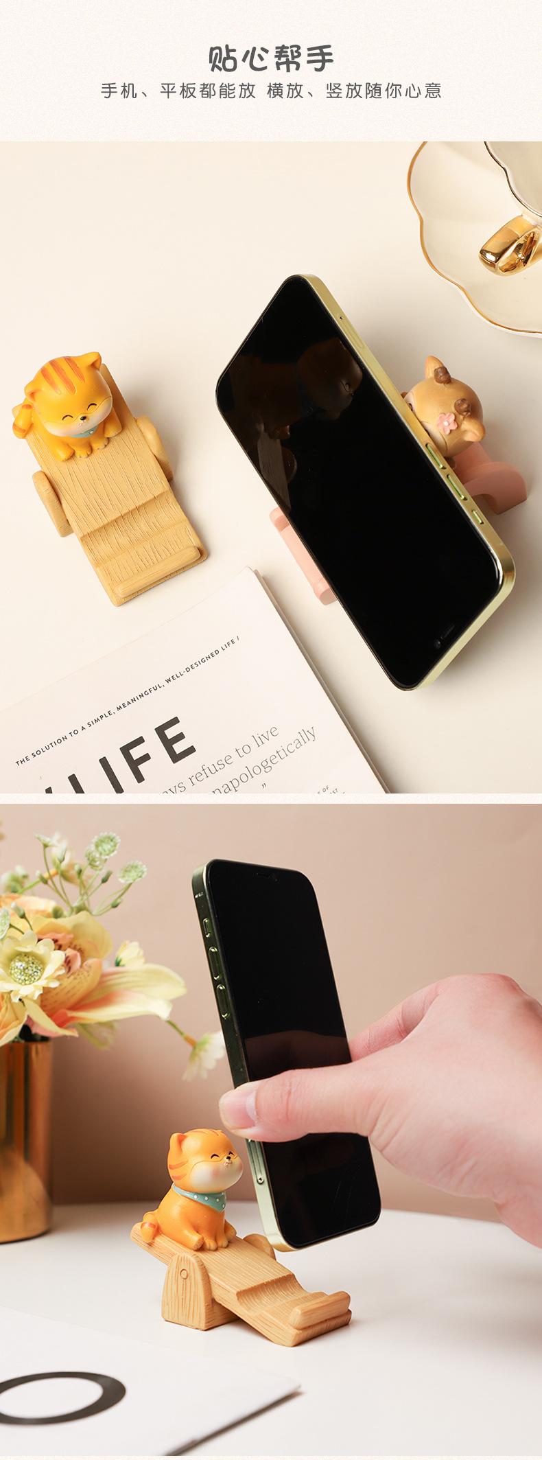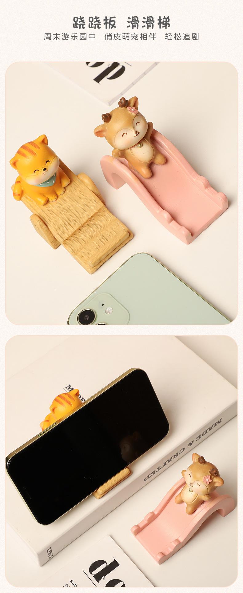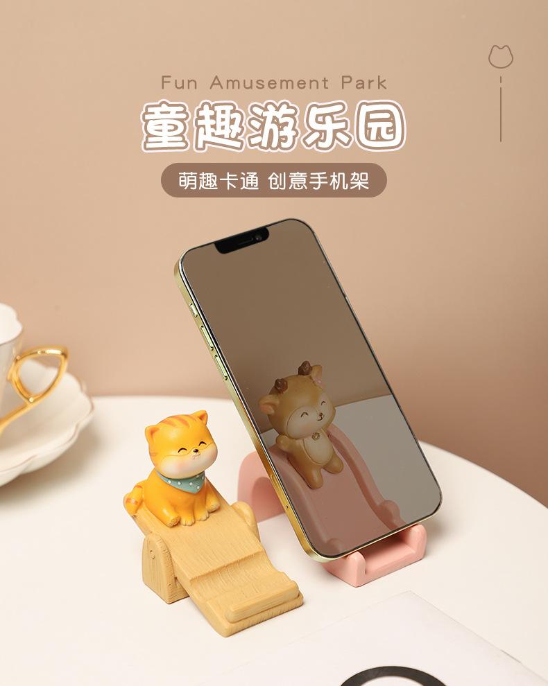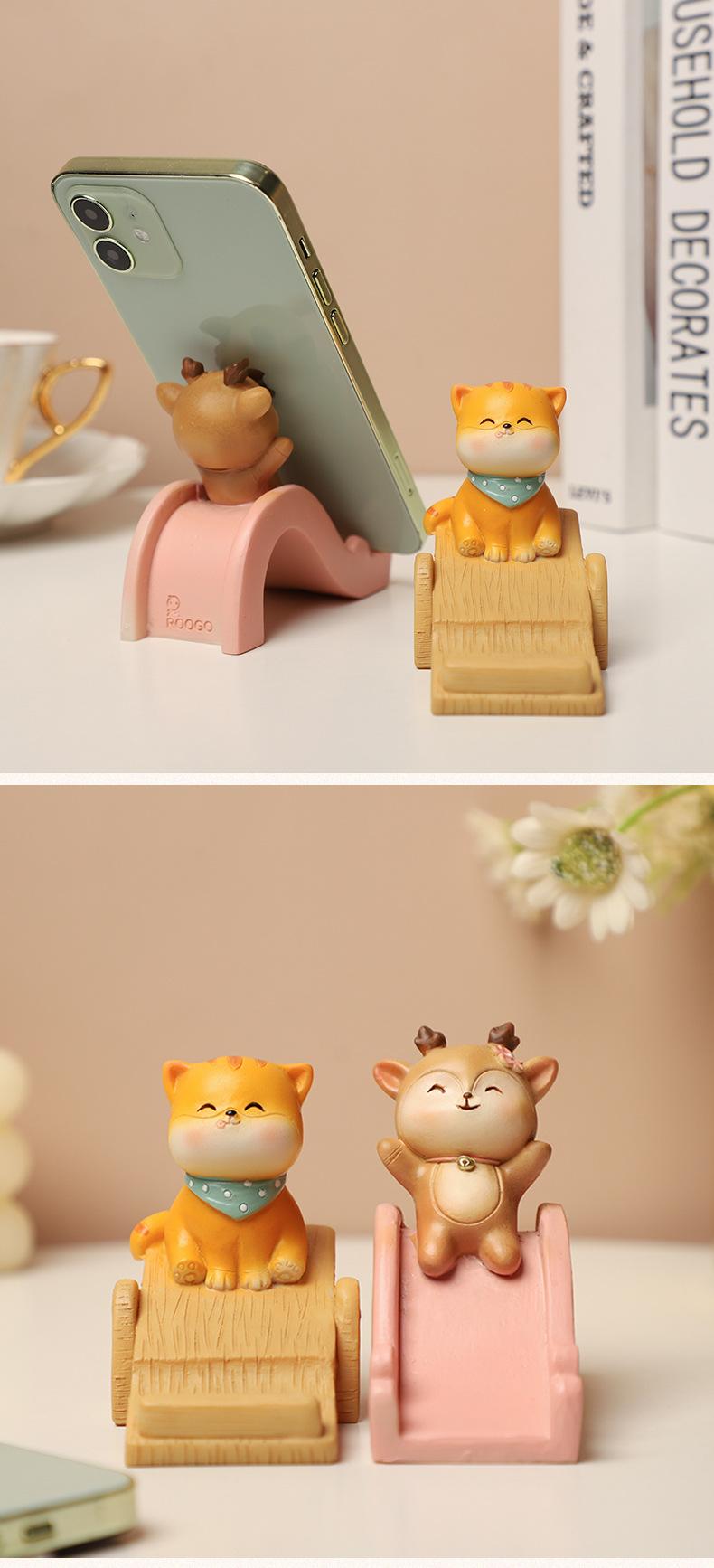 Animal de dibujos animados gatito cervatillo regalo creativo habitación de los niños decoración de escritorio del hogar soporte de teléfono móvil de resina al por mayor