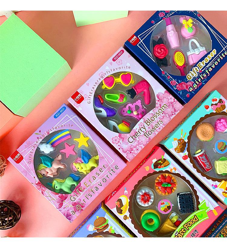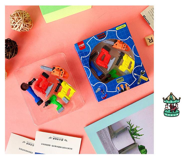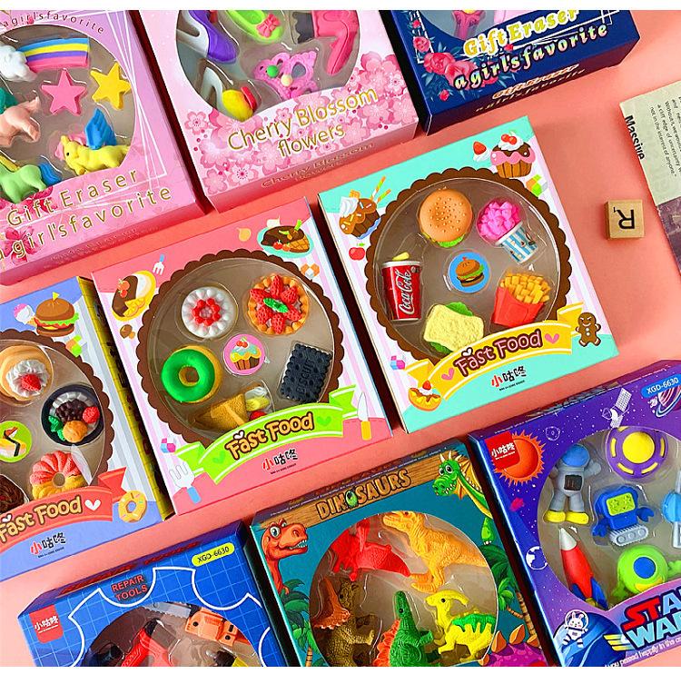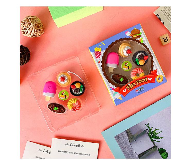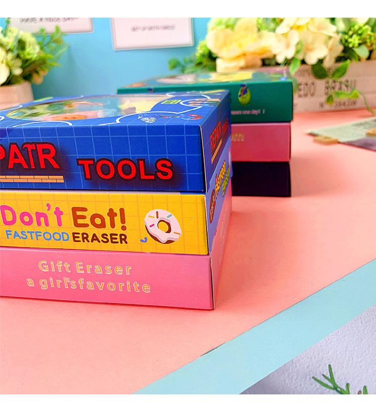 Lindo creativo herramienta pastel de pizza joyería modelado borrador mini caja de dibujos animados cuero aprendizaje regalo