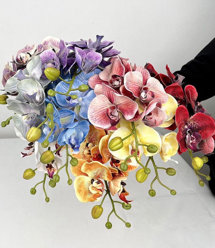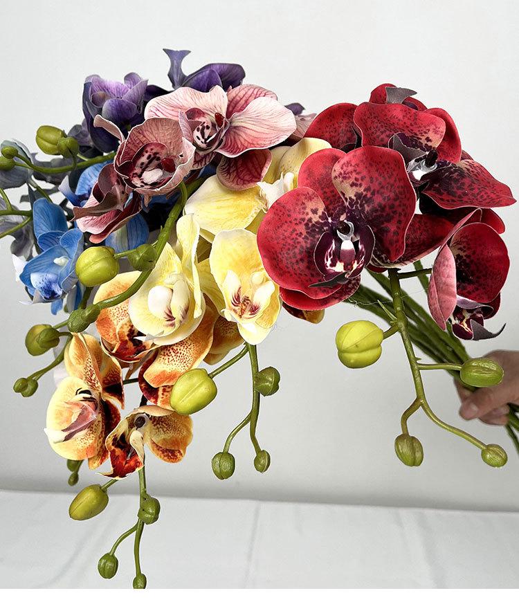 Venta al por Mayor Transfronteriza Flores Artificiales de 7 Cabezas Tacto Real Pequeña Orquídea Accesorios para Fotografía de Boda Decoraciones para Dormitorio Sala de Estar Flores Falsas