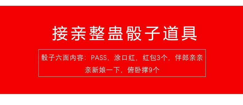 Contenido: PASE, lápiz labial, 3 sobres rojos, un beso del padrino, un beso de la novia, 9 flexiones (aleatorias en el juego)