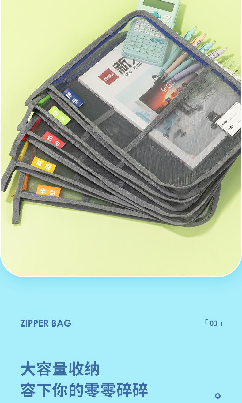 Deli L-type bolsa de archivo bolsa de archivo transparente bolsa para guardar exámenes de estudiantes papelería escolar bolsa de malla con cremallera venta al por mayor