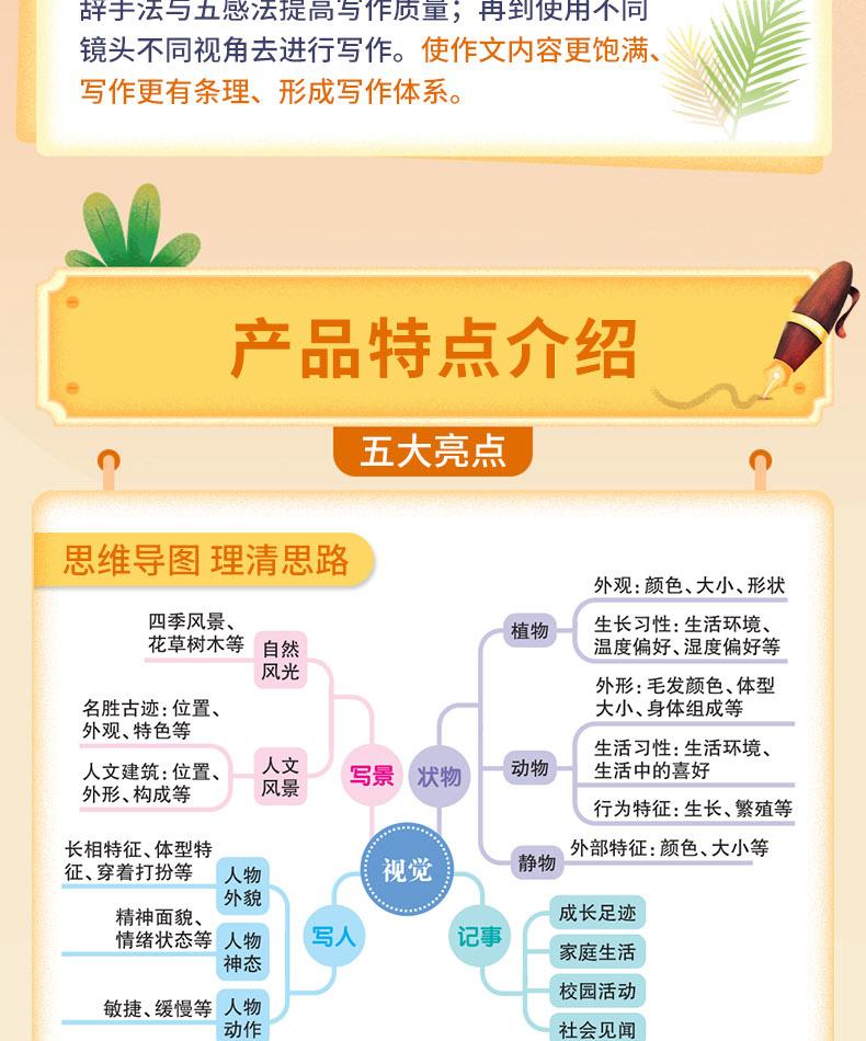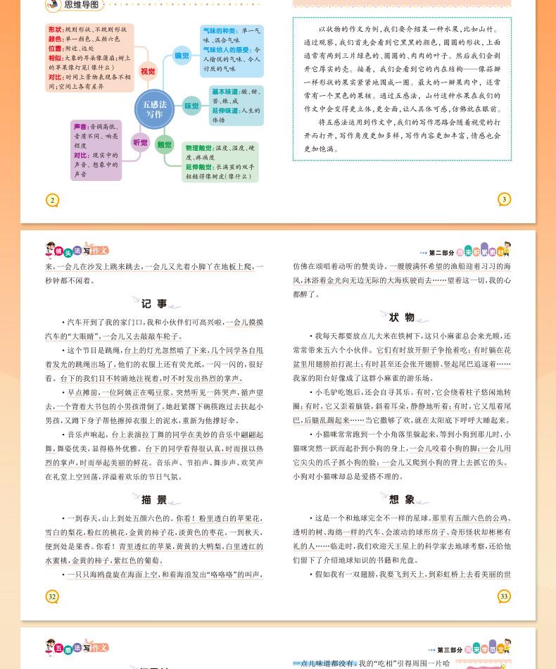 Libro de composición para estudiantes de primaria de uno, dos, tres, cuatro, cinco y seis grados, al por mayor, método de cinco sentidos, entrenamiento de mapas mentales para leer imágenes y escribir palabras