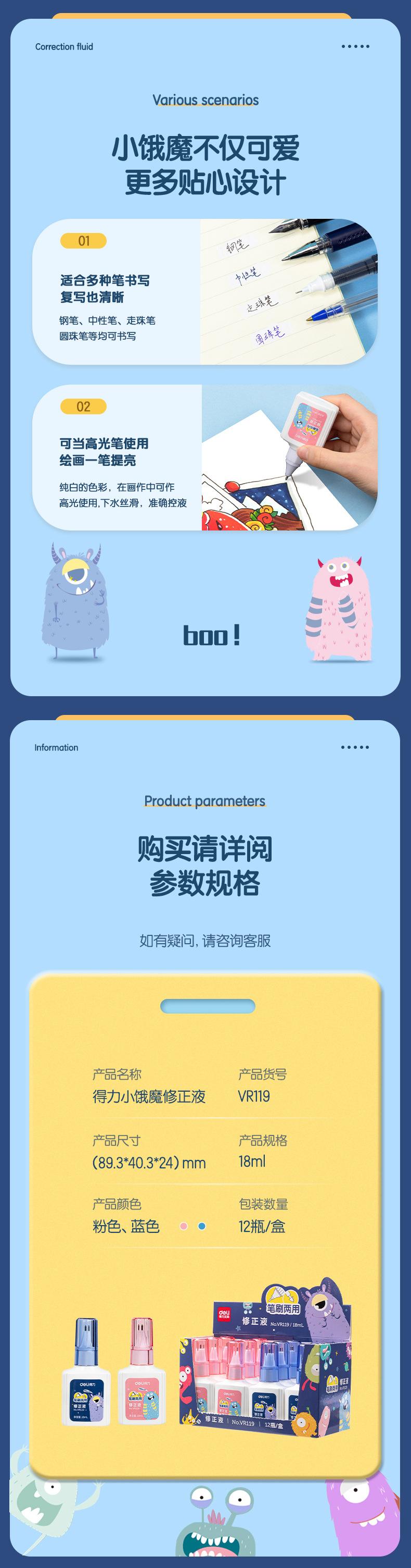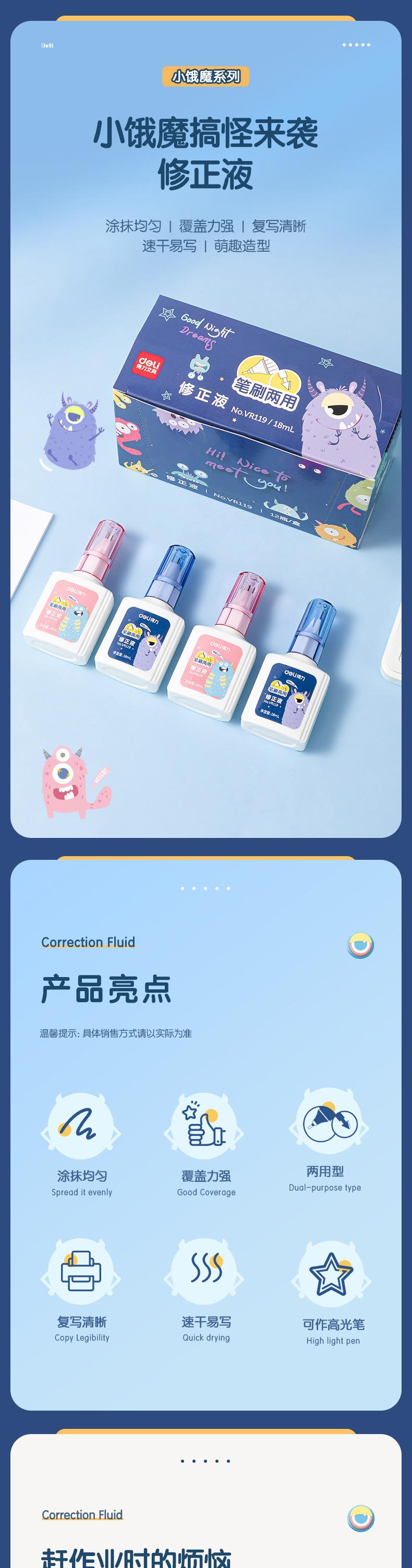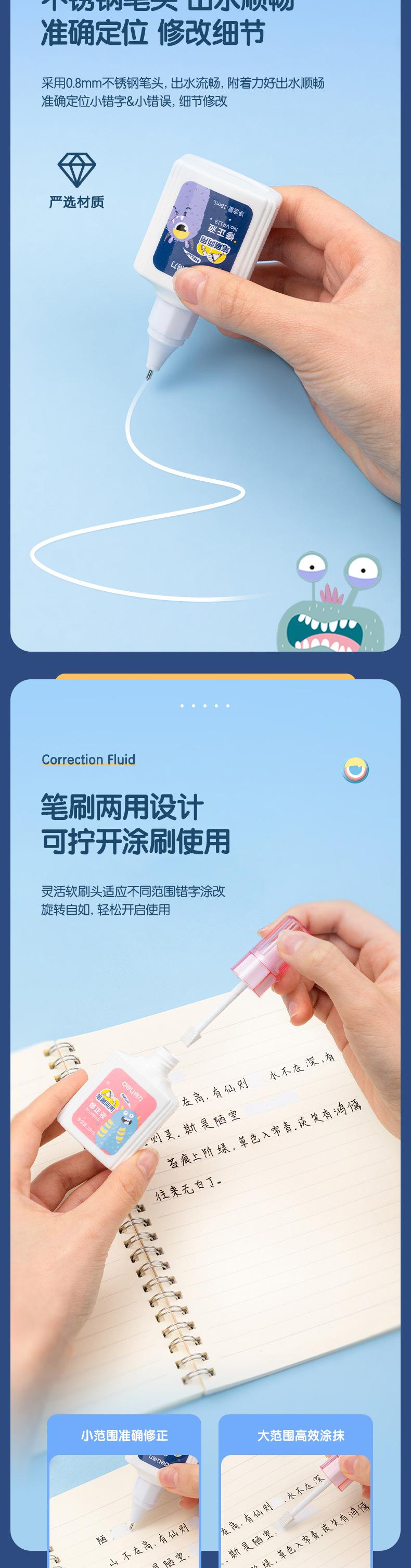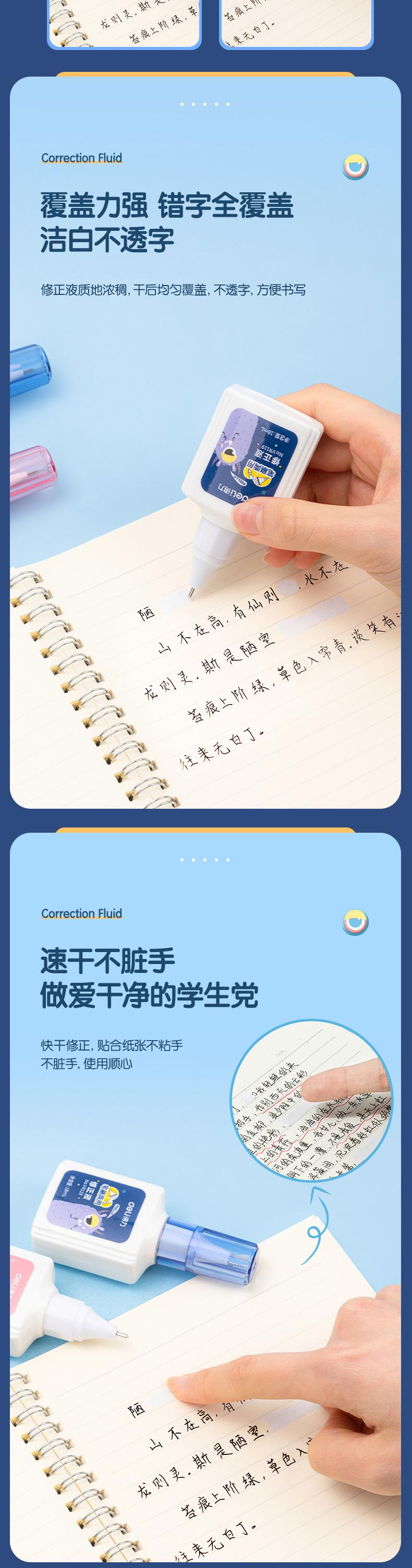 Deli VR119 líquido corrector estudiante líquido corrector de errores tipográficos Blanco líquido corrector de secado rápido artefacto para cambiar caracteres pincel de doble propósito