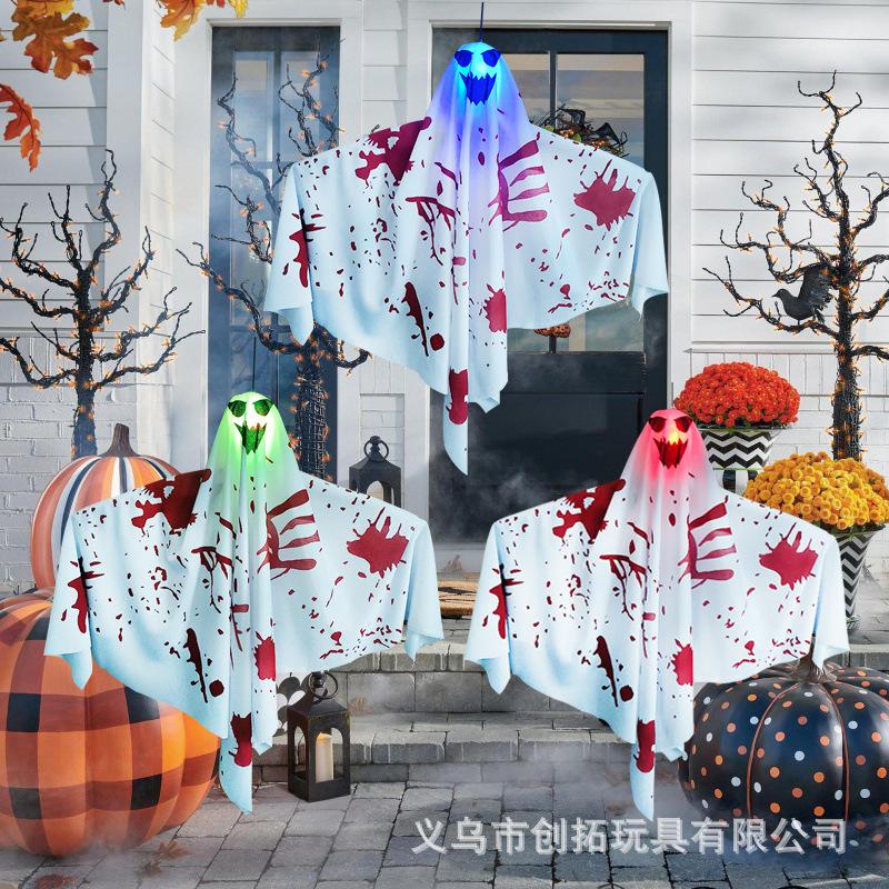Decoración de escena de fantasma colgante de sangre luminosa de terror de Halloween, accesorios para casa embrujada, cámara, bar, patio