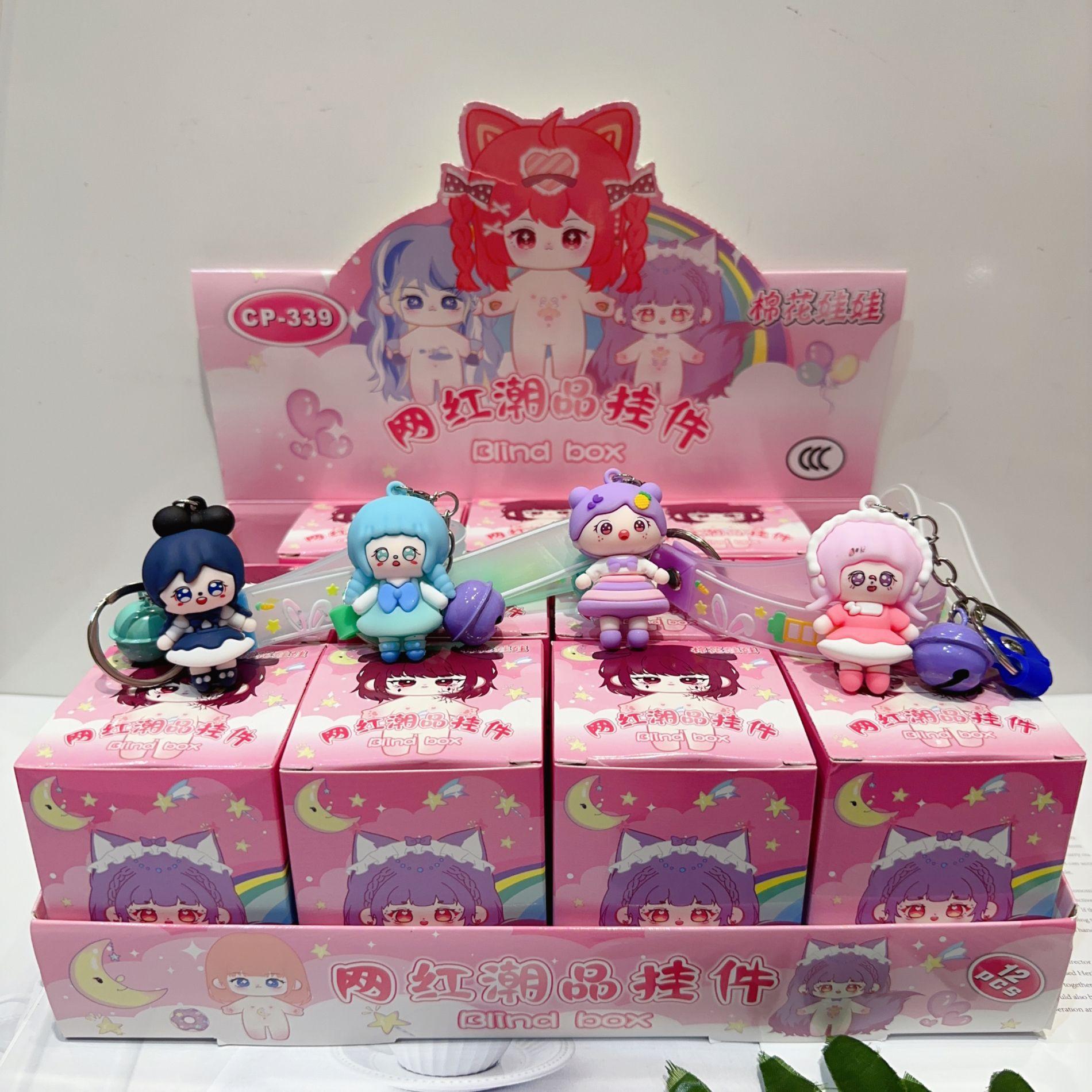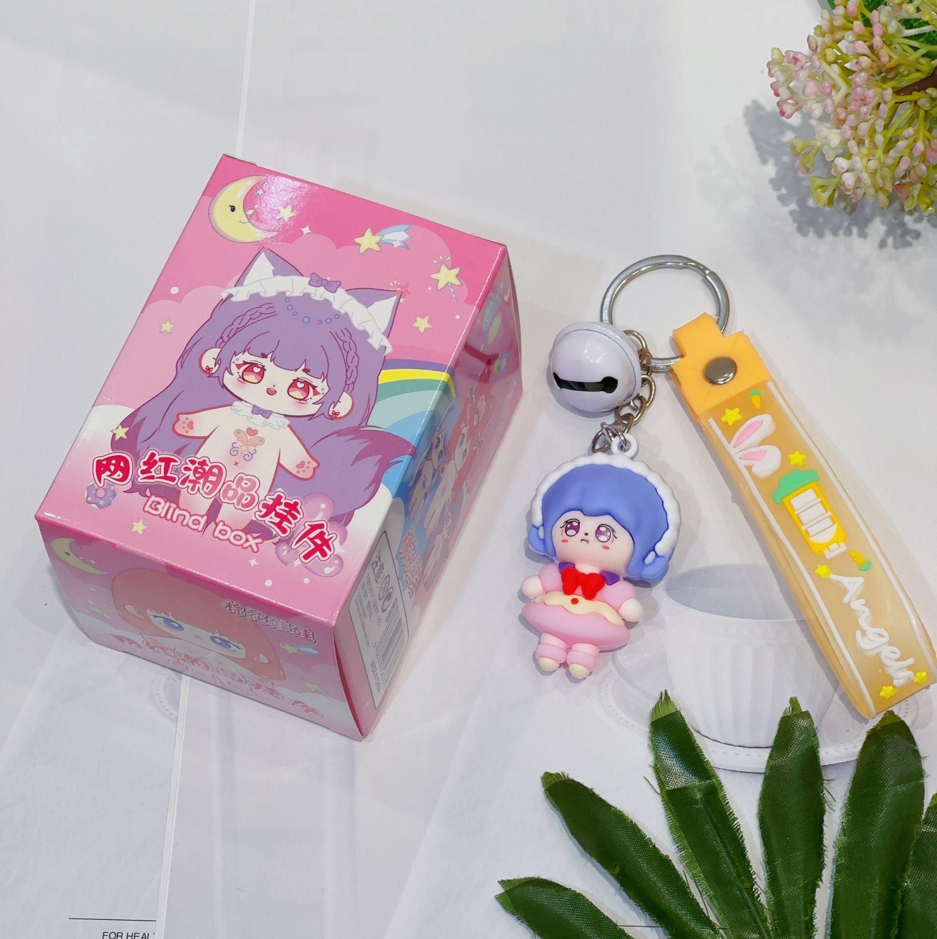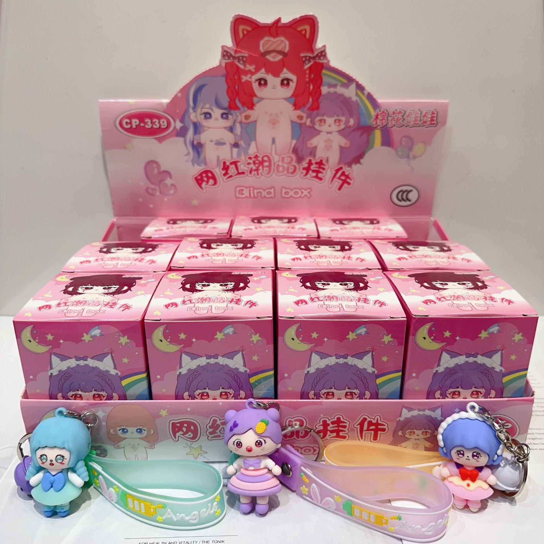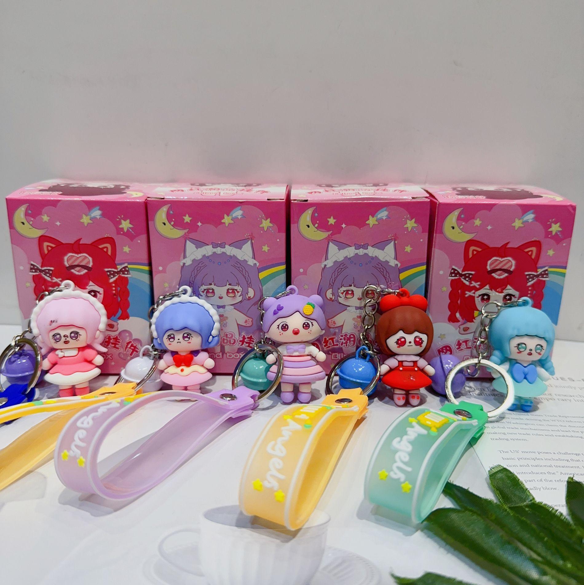Nuevo colgante de muñeca de dibujos animados, caja ciega, lindo llavero con forma de corazón de niña de dibujos animados, colgante de muñeca