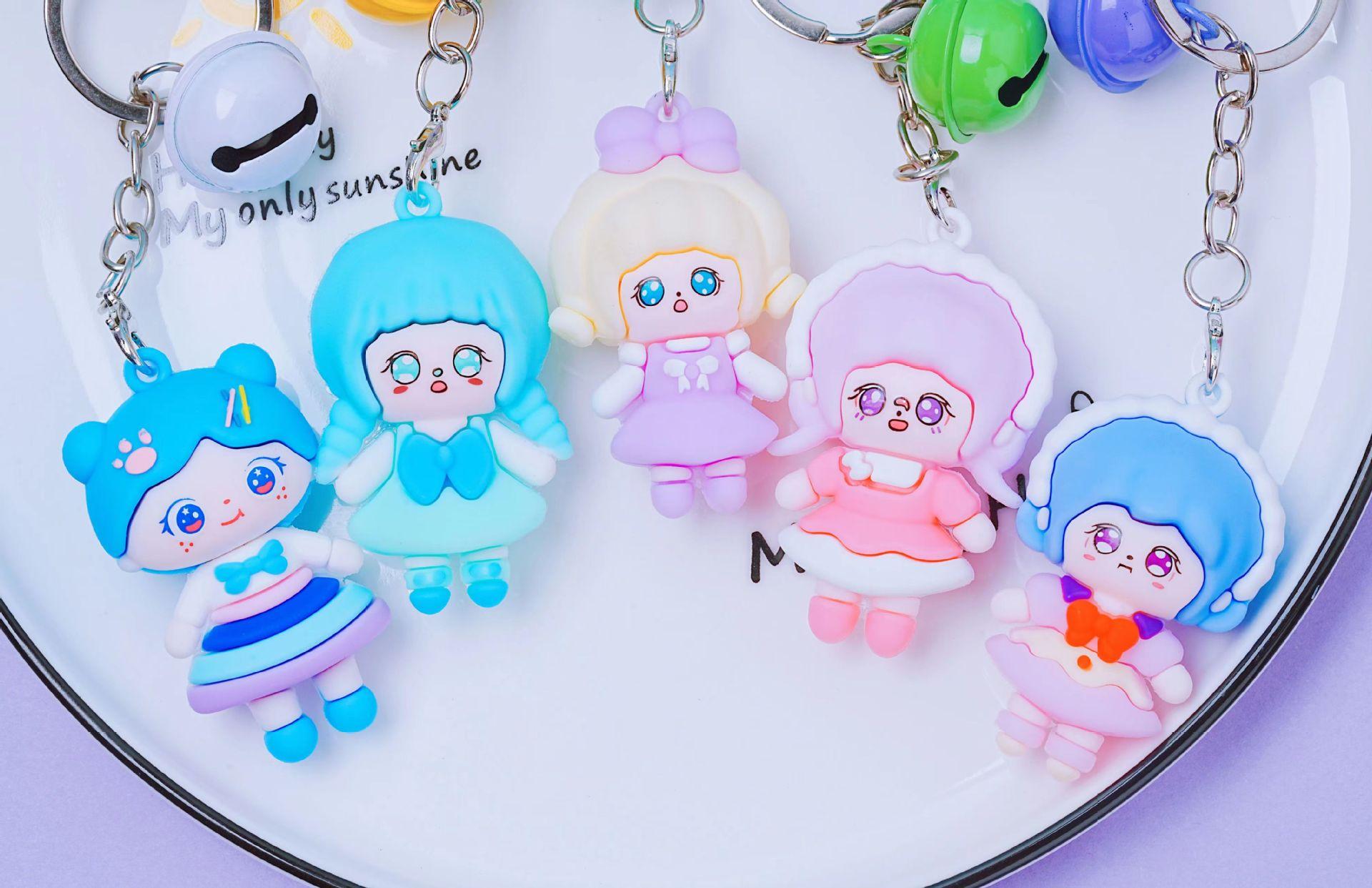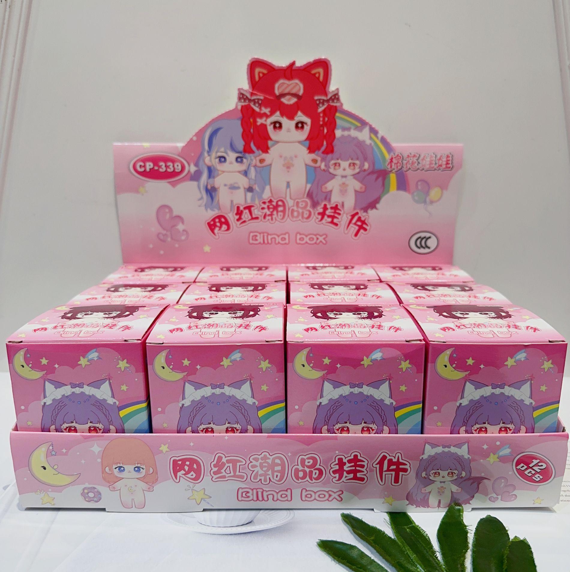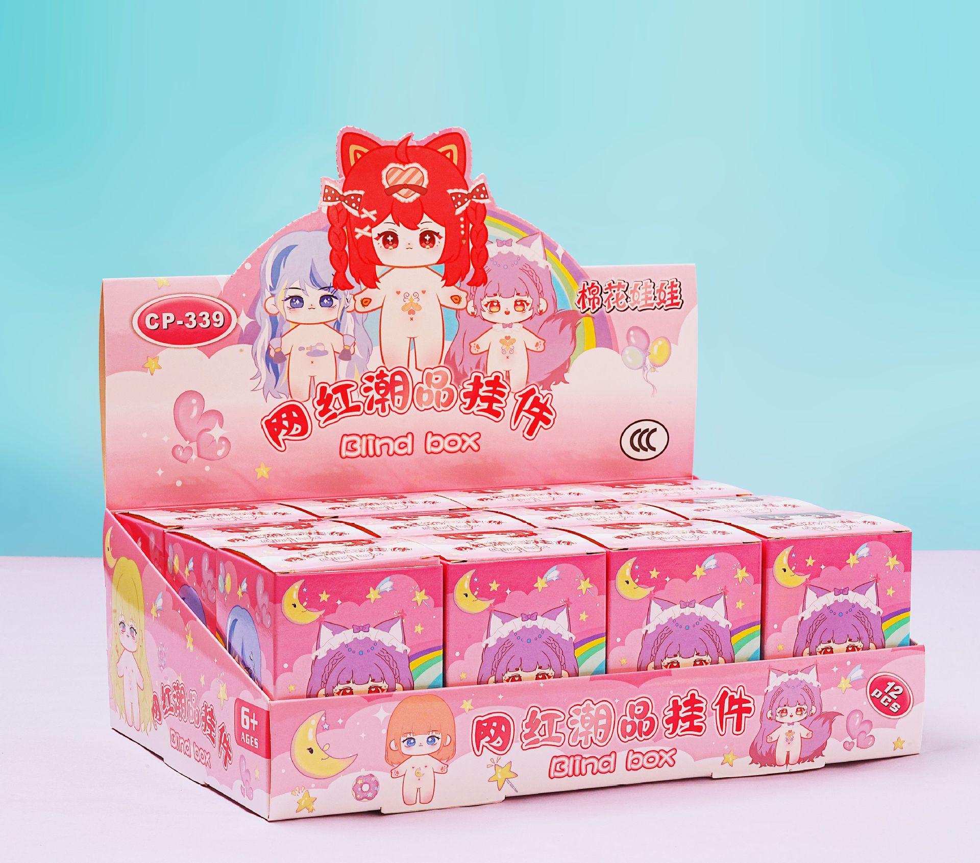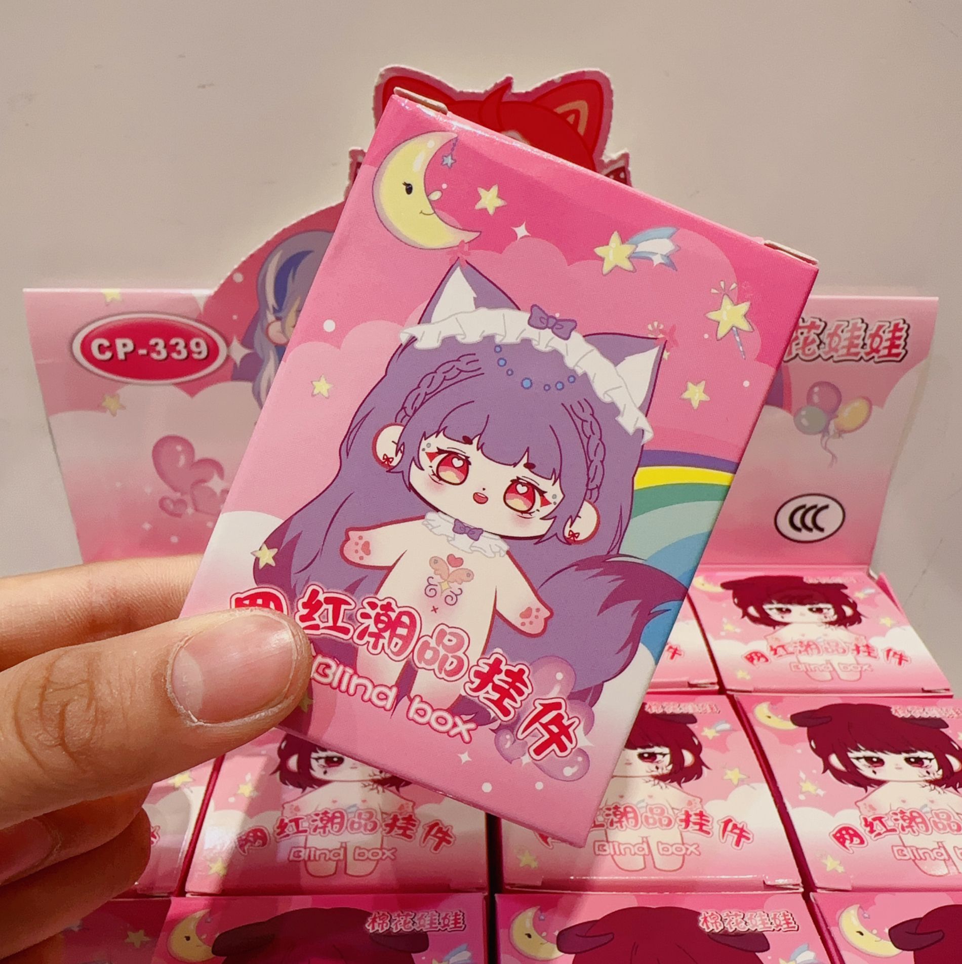 Nuevo colgante de muñeca de dibujos animados, caja ciega, lindo llavero con forma de corazón de niña de dibujos animados, colgante de muñeca