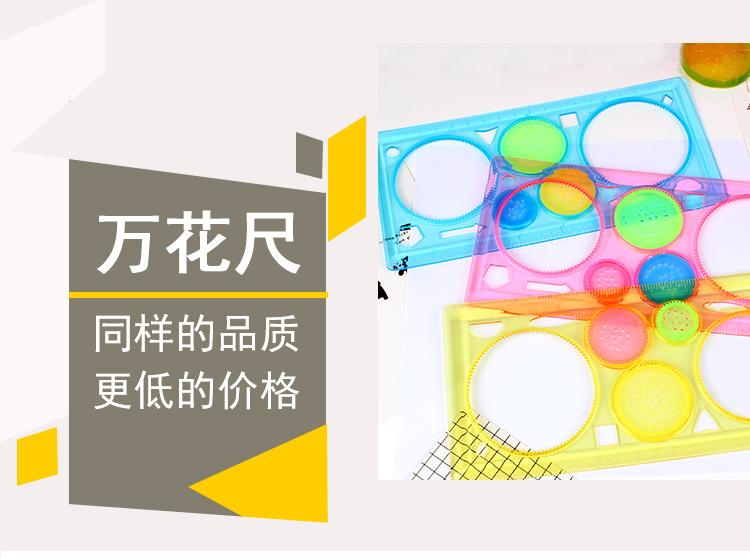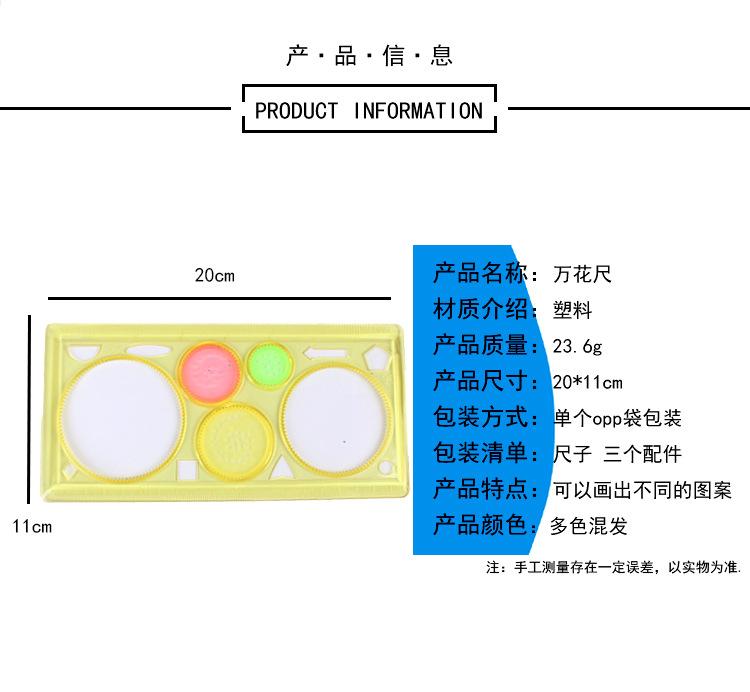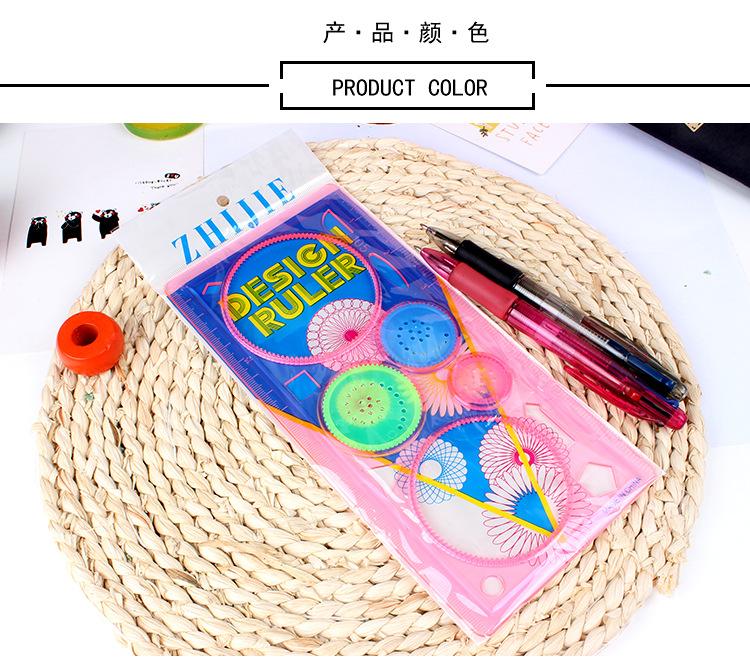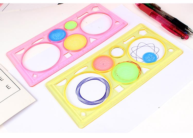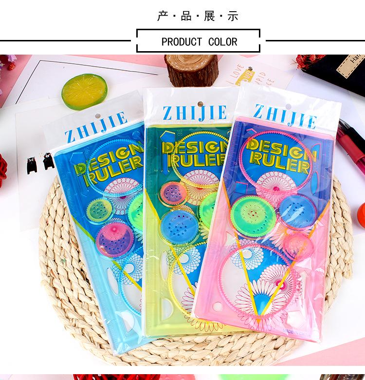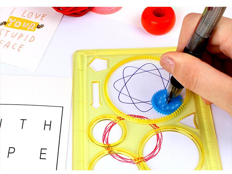 Introducción del producto: Este es un nuevo tipo de juguete intelectual, que puede ayudar eficazmente a los estudiantes de primaria y secundaria a mejorar sus habilidades prácticas, de escritura a mano y de trabajo cerebral, y cultivar su gusto estético. Es una excelente manera de desarrollar la inteligencia y divertirse. Mediante el uso del método de pintura por permutación y combinación, también puedes dibujar cientos de patrones y curvas diferentes. Si usas tapas de bolígrafo de diferentes colores para pintar, ¡los patrones aparecerán más hermosos!