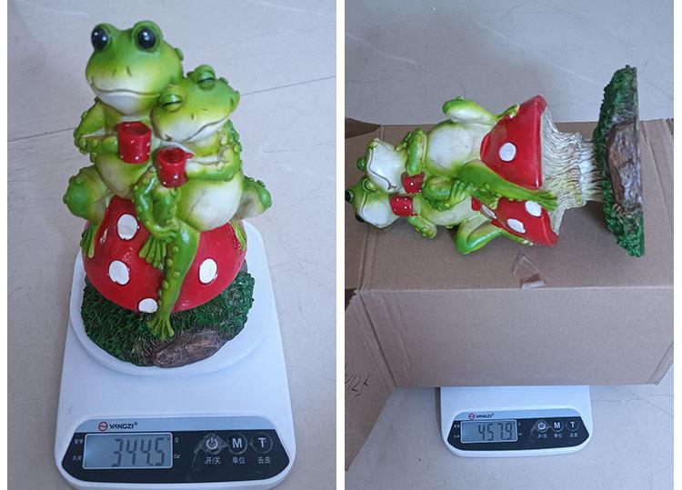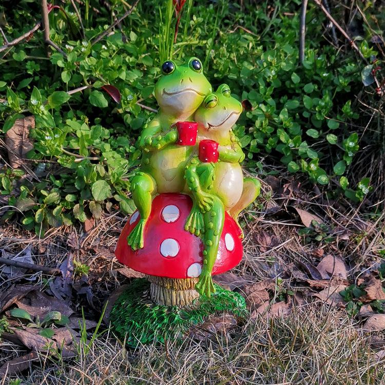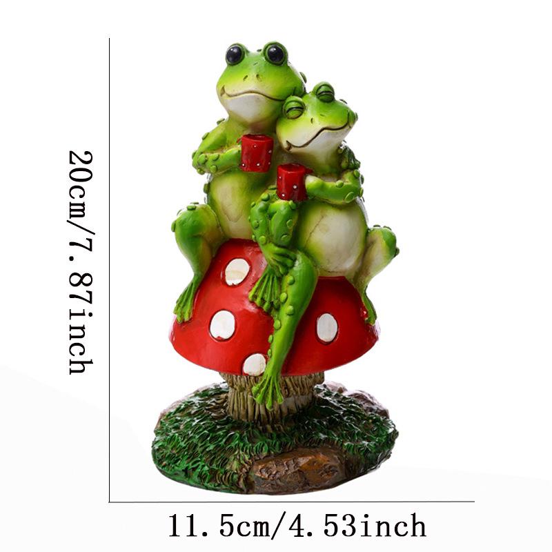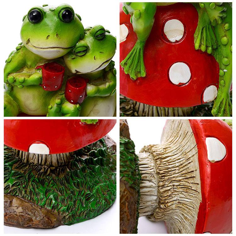 Estatua de jardín con forma de hongo y asiento de pareja de ranas transfronterizas, adornos artesanales de resina, escultura de micropaisaje