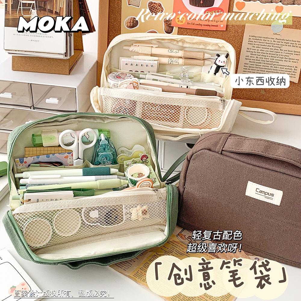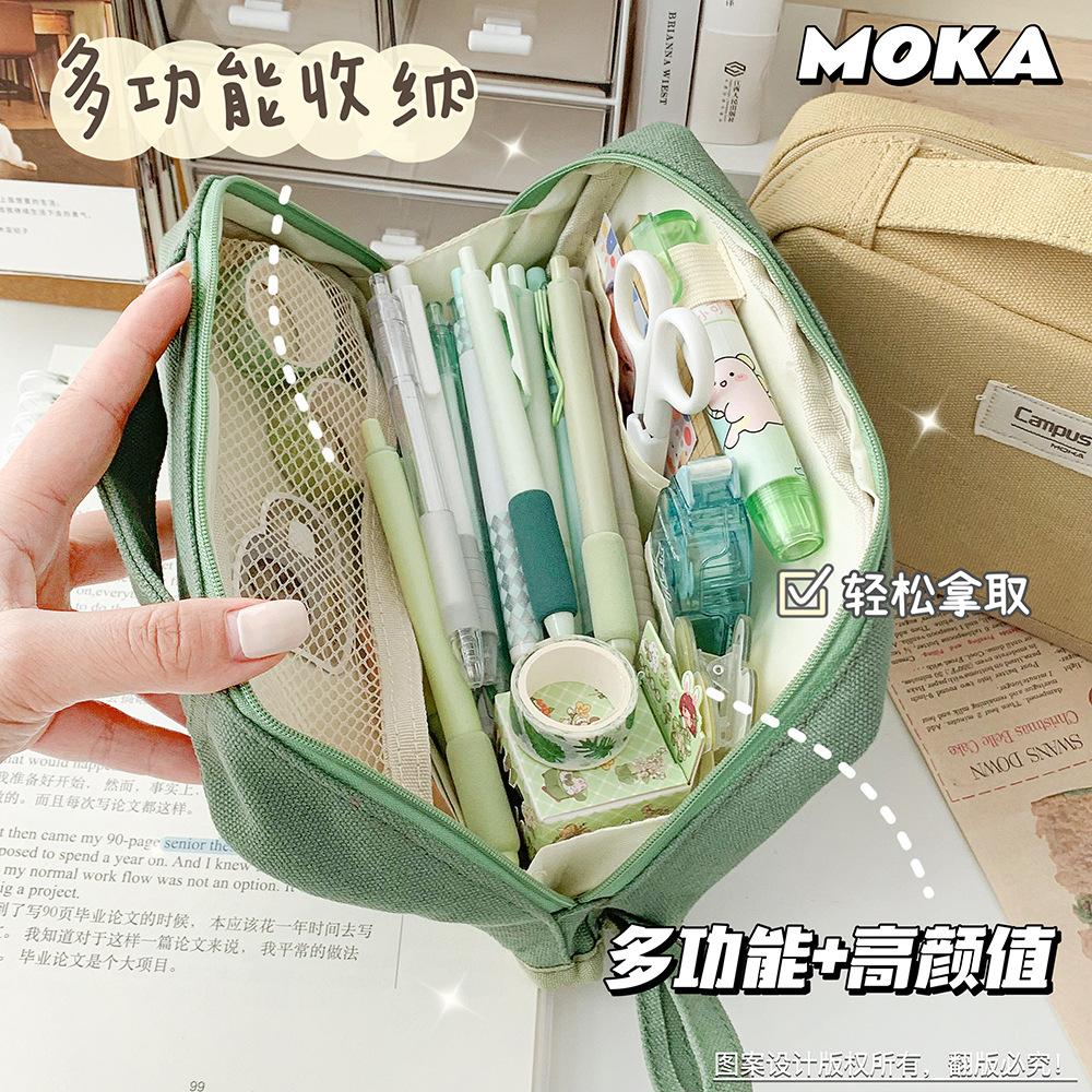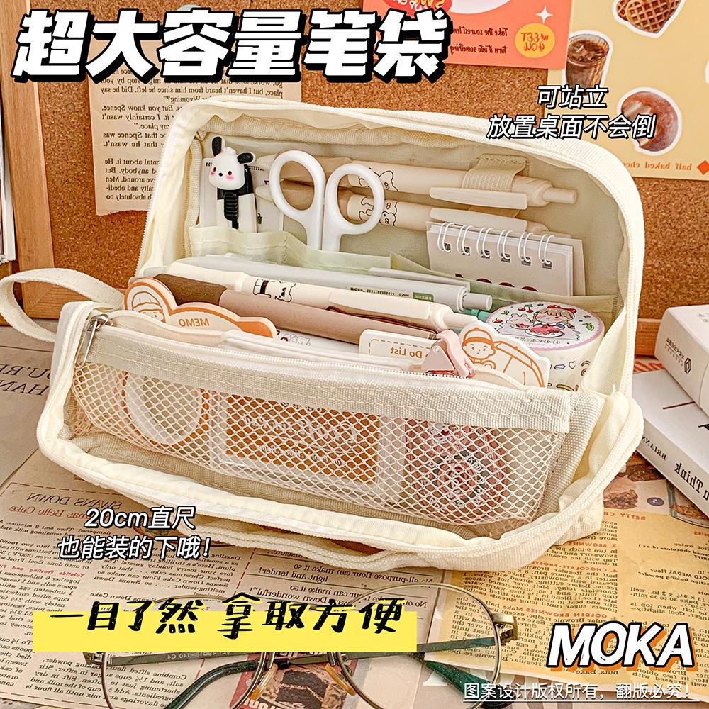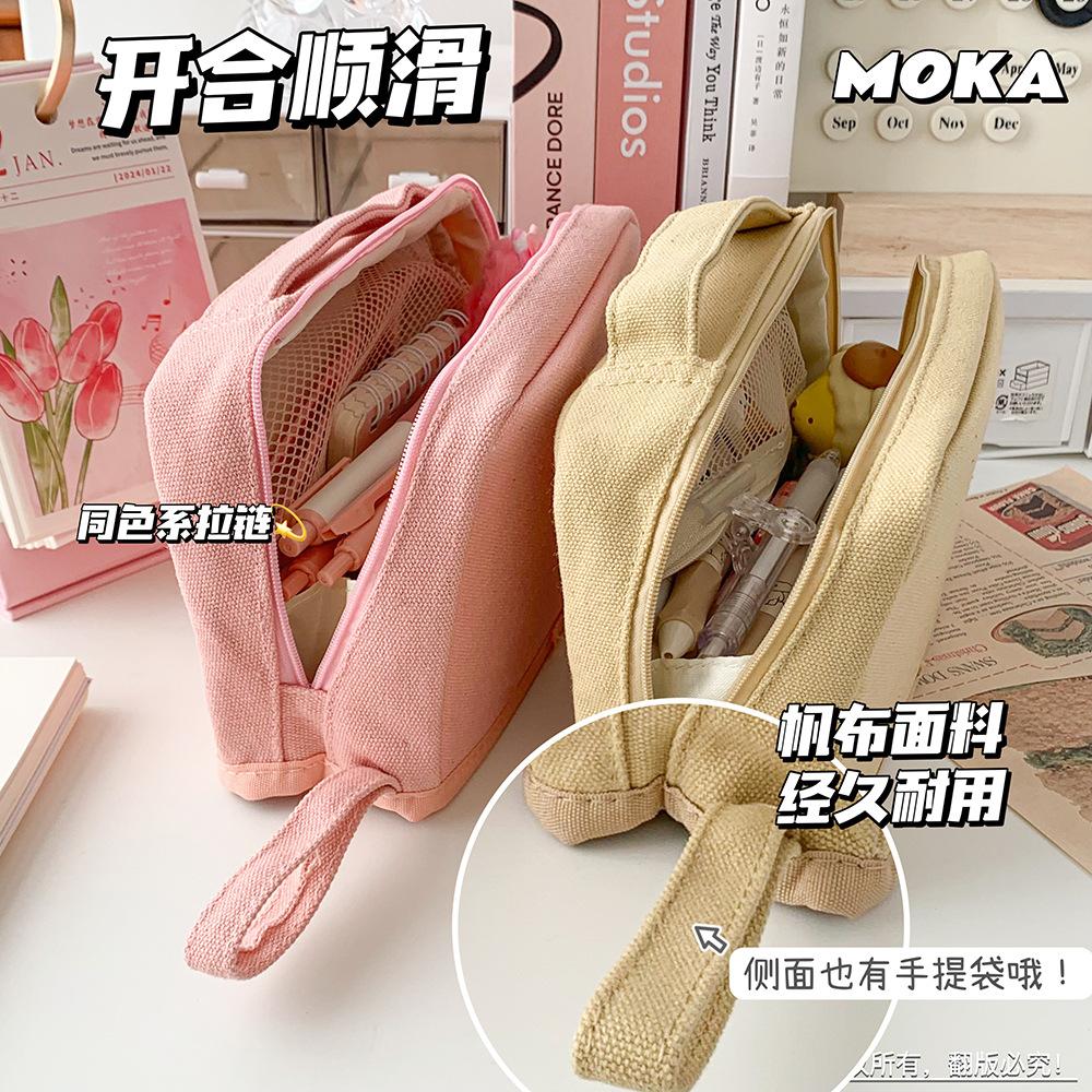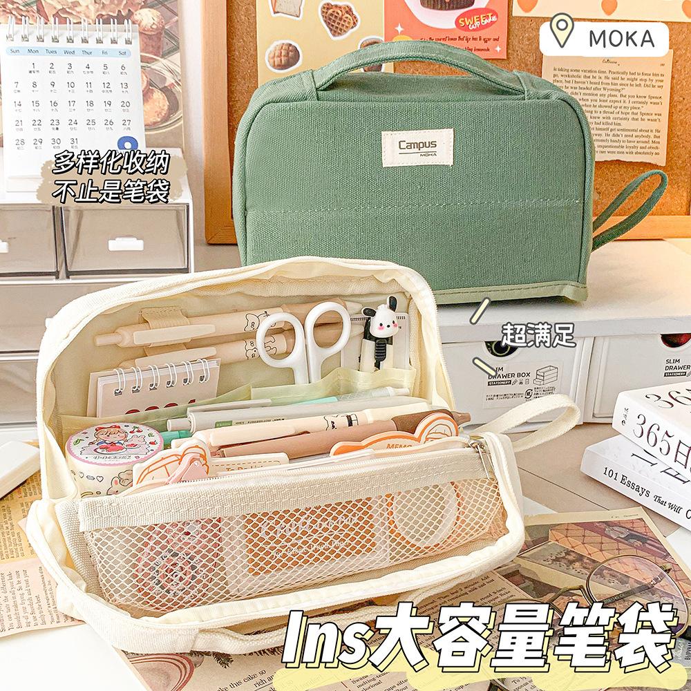 Estuche de lona con tapa vertical para lápices, bolsa de papelería de gran capacidad para niñas, bolsa de almacenamiento multifuncional para niños, bolsa de papelería estilo ins