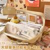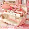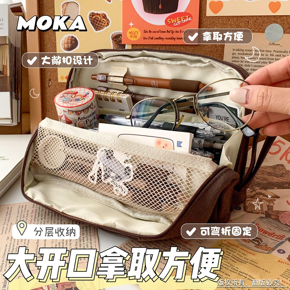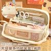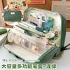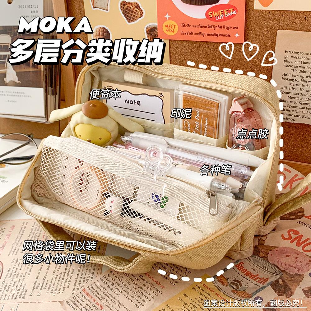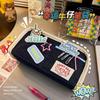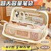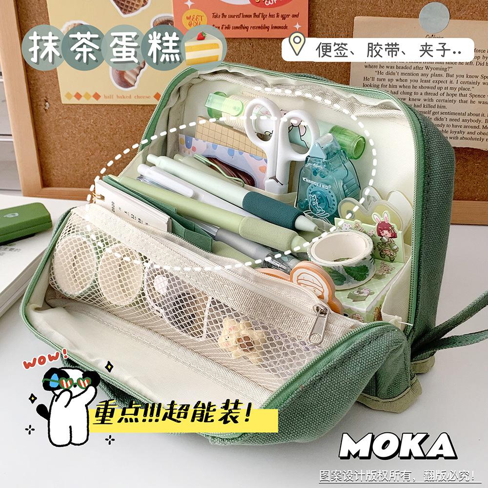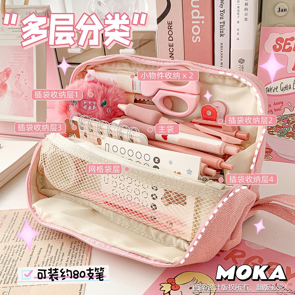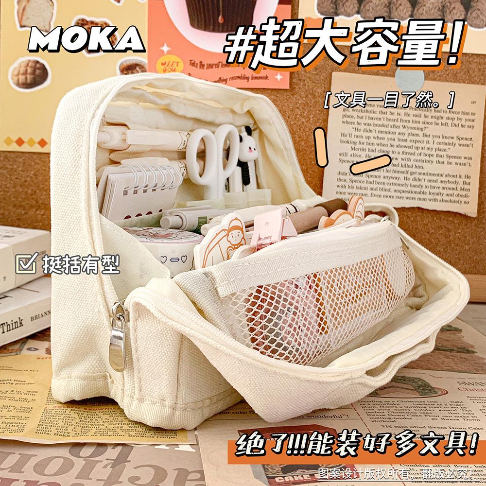 Estuche de lona con tapa vertical para lápices, bolsa de papelería de gran capacidad para niñas, bolsa de almacenamiento multifuncional para niños, bolsa de papelería estilo ins